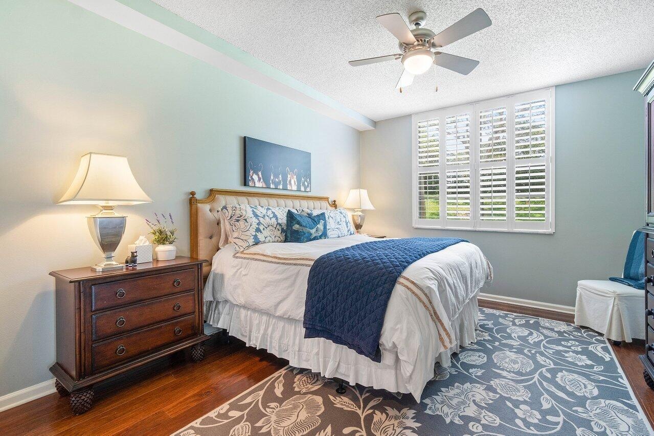 NOT AVAILABLE JANUARY/FEBRUARY.Perfectly updated and private ground floor condo, with one garage and two driveways attached to breeze way across from unit entrance. Both bathrooms have been recently renovated.