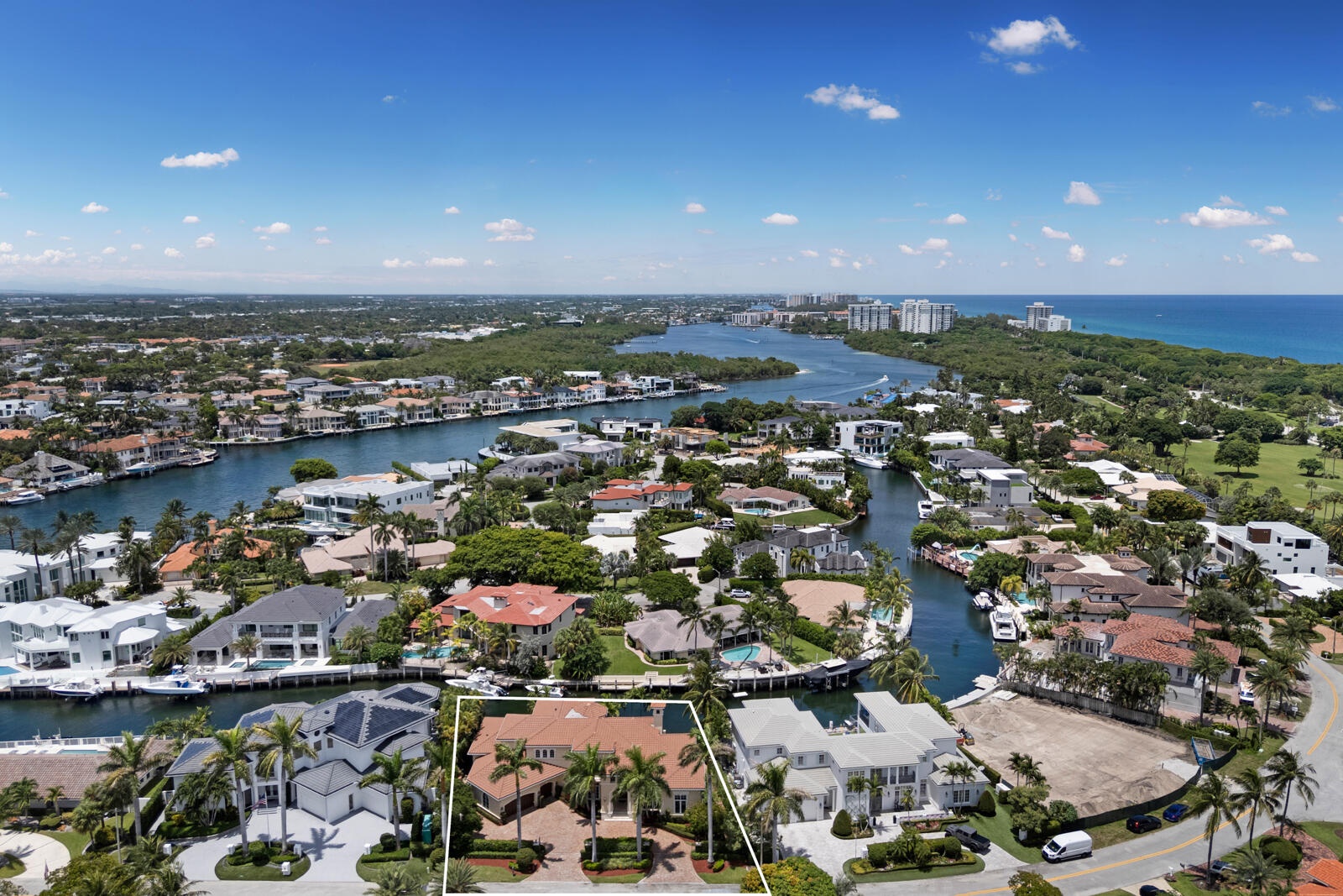 A Yachtsman's Paradise! Experience the epitome of waterfront luxury with this highly coveted, meticulously maintained 6-bedroom, 7-bath traditional estate. Designed by renowned architect Randall E. Stofft, the residence is hurricane-protected with original impact glass throughout. Offering 122 +/- feet of deep-water frontage, this rare property is just minutes from Lake Boca, The Boca Raton, and The Boca Inlet. Set on a seldom-available premium lot in a boater's dream location, this estate presents an extraordinary opportunity--whether you envision a thoughtful renovation to make it your own or a 2025 new-build spectacular masterpiece.