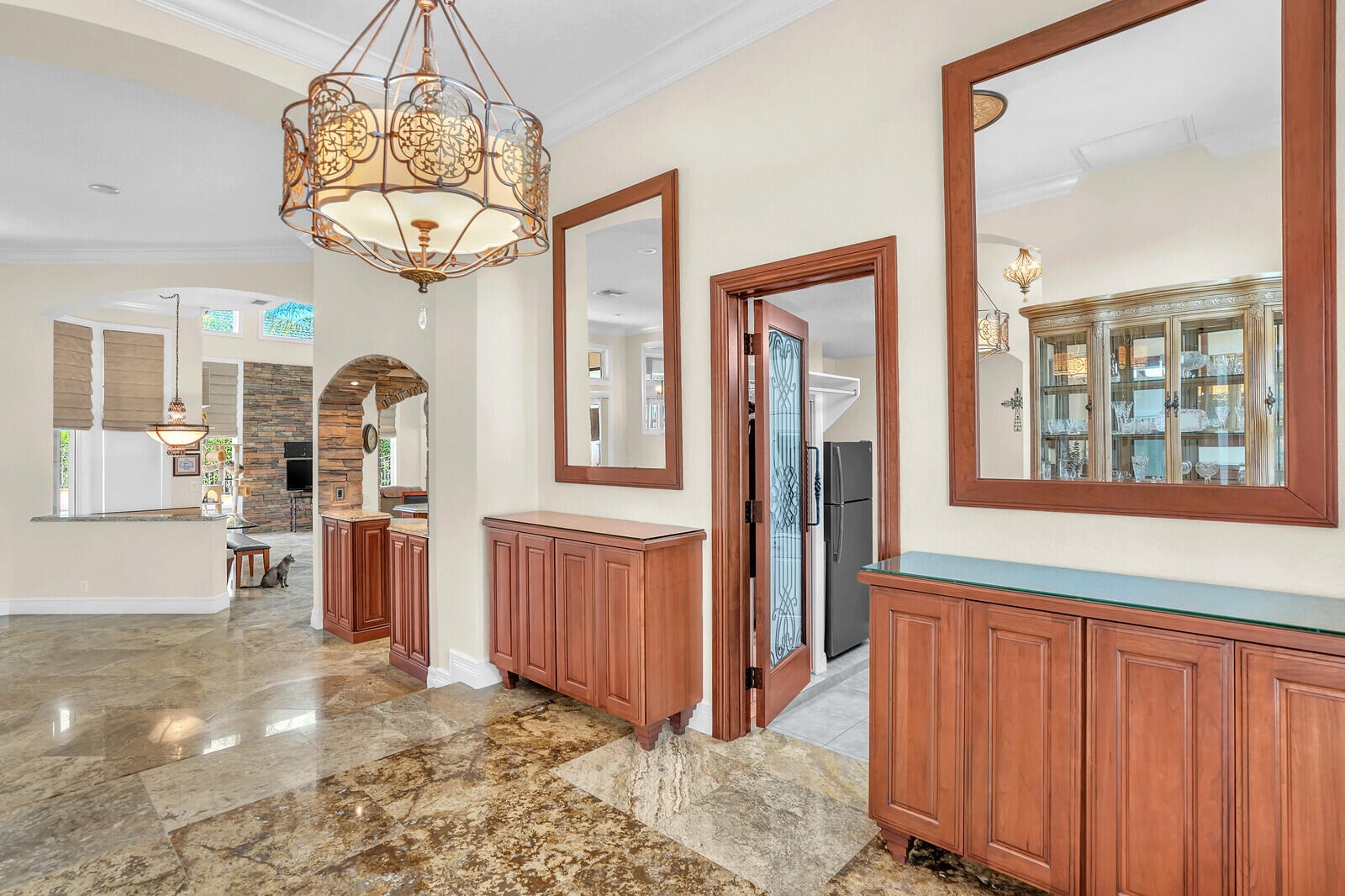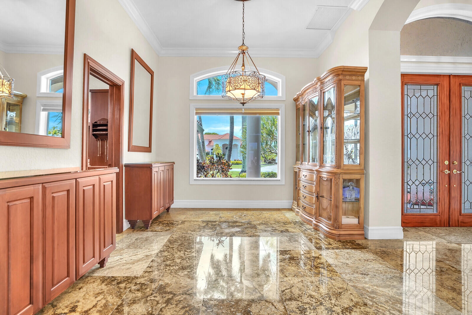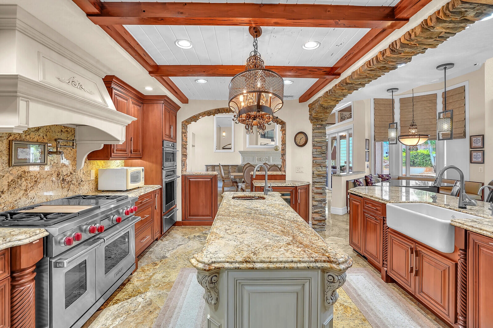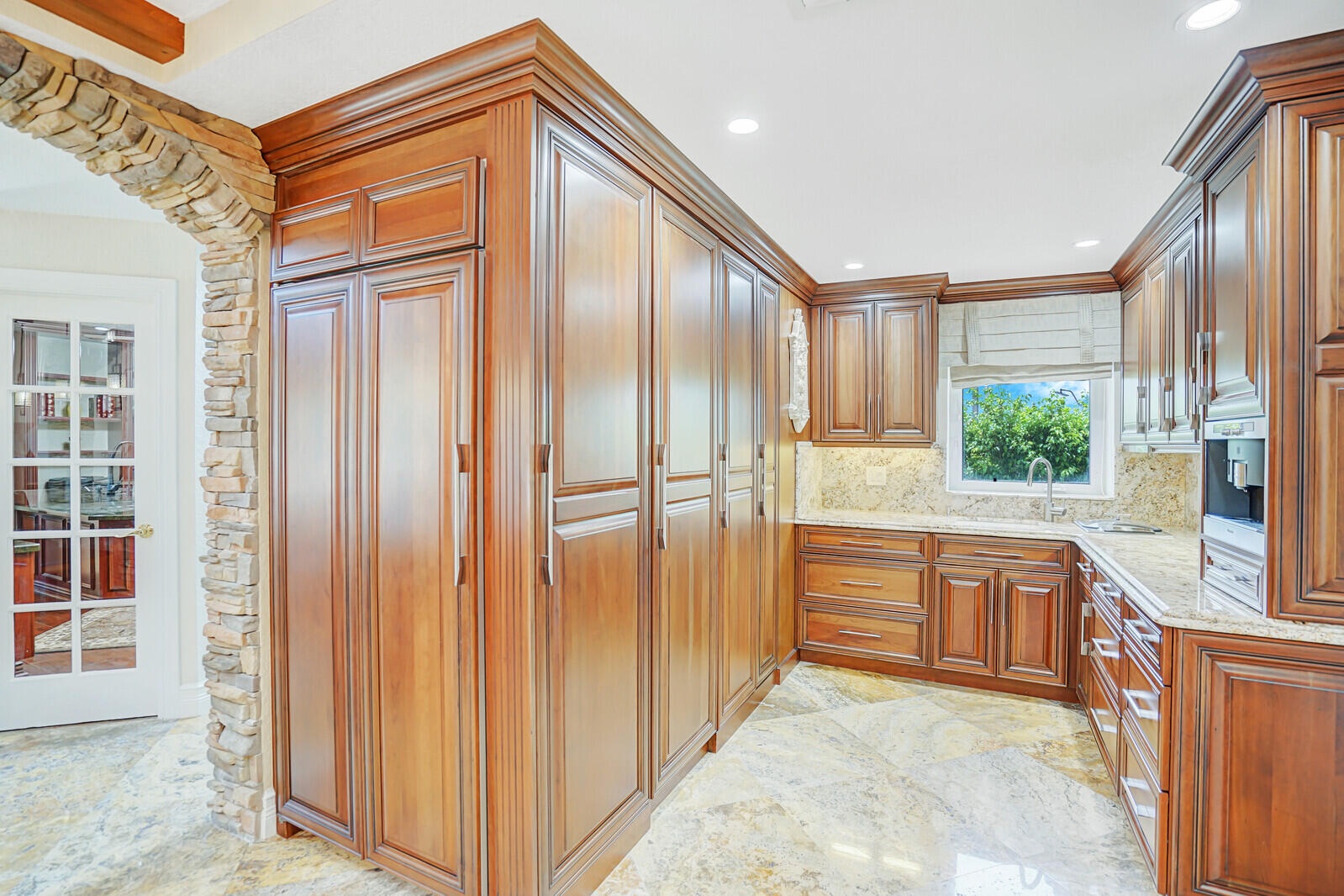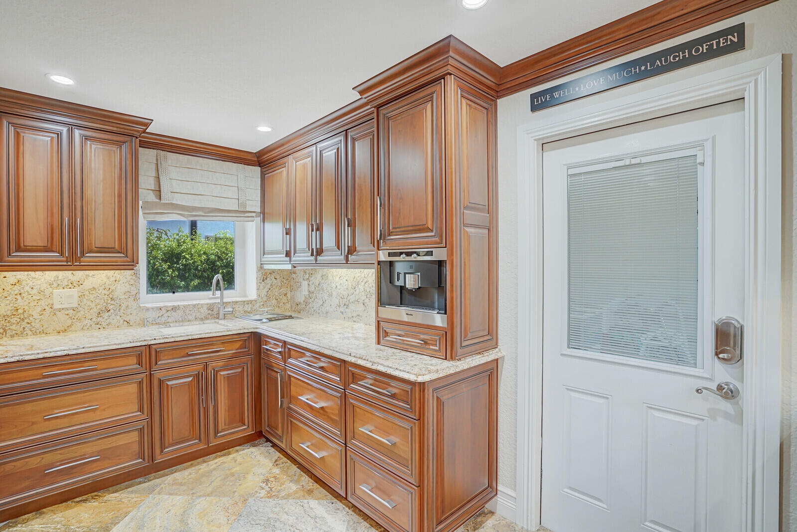 Located in the prestigious Boca Isles South community, this stunning 5BR/3BA Palm Beacher model offers the perfect blend of elegance, craftsmanship, and resort-style living. From the moment you enter, gleaming marble floors set the tone for a home that has been thoughtfully upgraded throughout. The chef's gourmet kitchen is a true masterpiece, featuring a professional Wolf gas oven, GE Avantium wall oven, Monogram appliances, built-in Sub-Zero refrigerator and freezer, U-Line beverage fridge, massive pantry, pot filler and three sinks each with its own garbage disposal. A dedicated coffee station with built-in Miele espresso machine, steamer, spice storage, warming tray, and a vented hood that eliminates cooking odors complete this dream culinary space. The spacious living areas flow