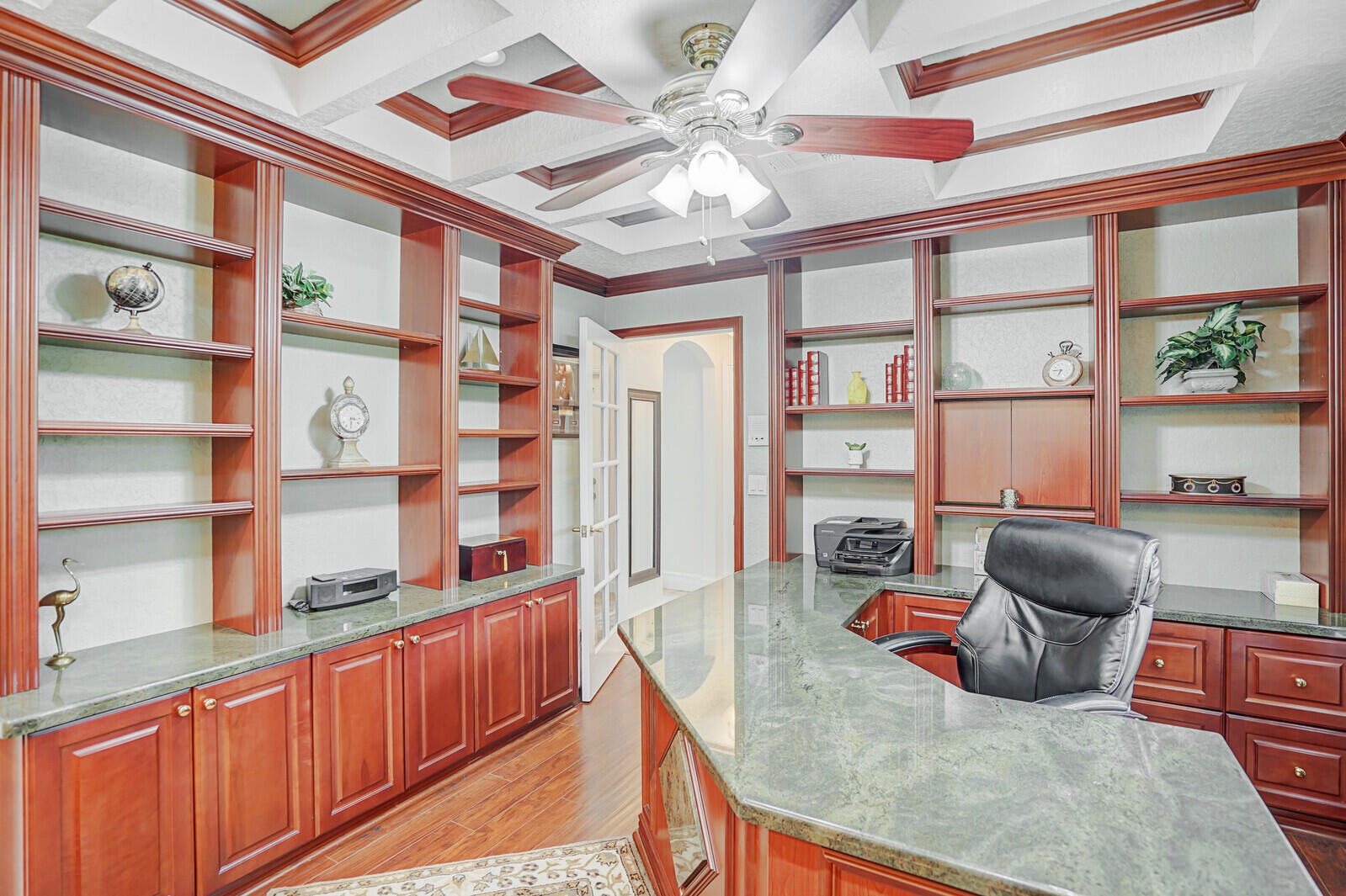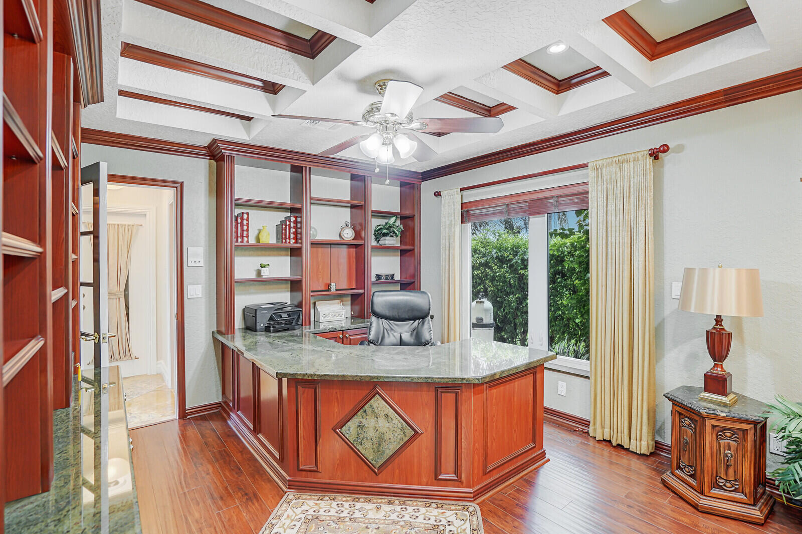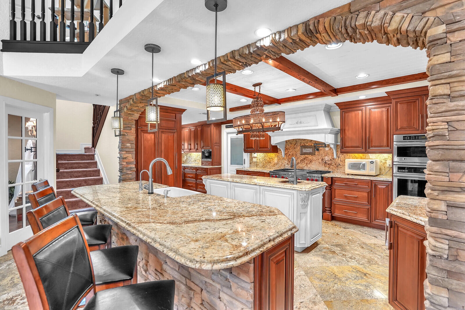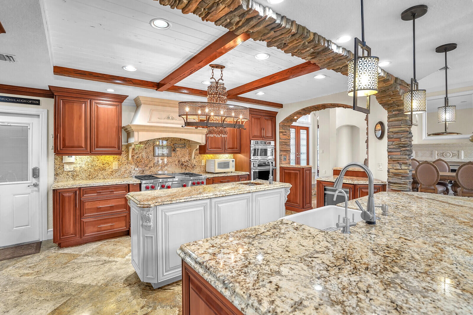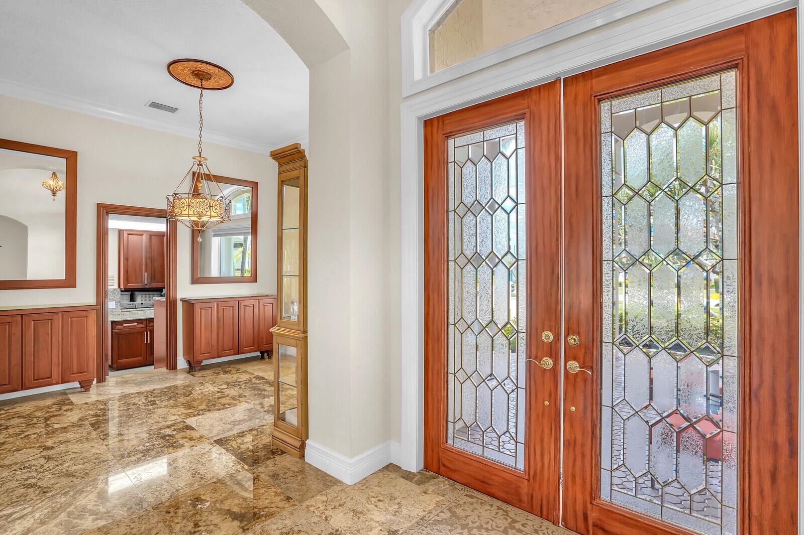 Located in the prestigious Boca Isles South community, this stunning 5BR/3BA Palm Beacher model offers the perfect blend of elegance, craftsmanship, and resort-style living. From the moment you enter, gleaming marble floors set the tone for a home that has been thoughtfully upgraded throughout. The chef's gourmet kitchen is a true masterpiece, featuring a professional Wolf gas oven, GE Avantium wall oven, Monogram appliances, built-in Sub-Zero refrigerator and freezer, U-Line beverage fridge, massive pantry, pot filler and three sinks each with its own garbage disposal. A dedicated coffee station with built-in Miele espresso machine, steamer, spice storage, warming tray, and a vented hood that eliminates cooking odors complete this dream culinary space. The spacious living areas flow