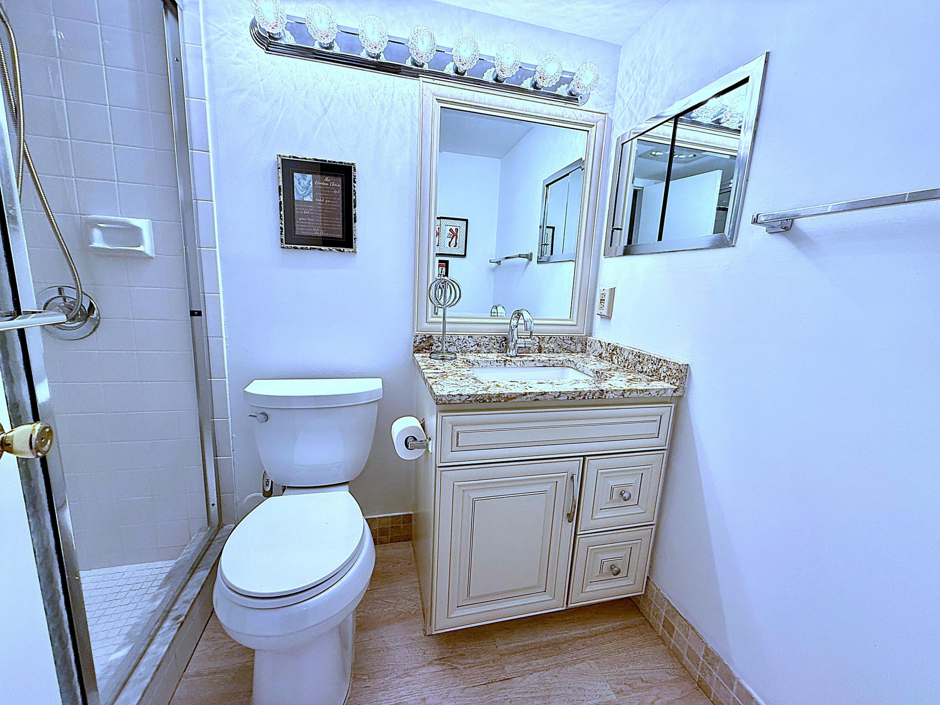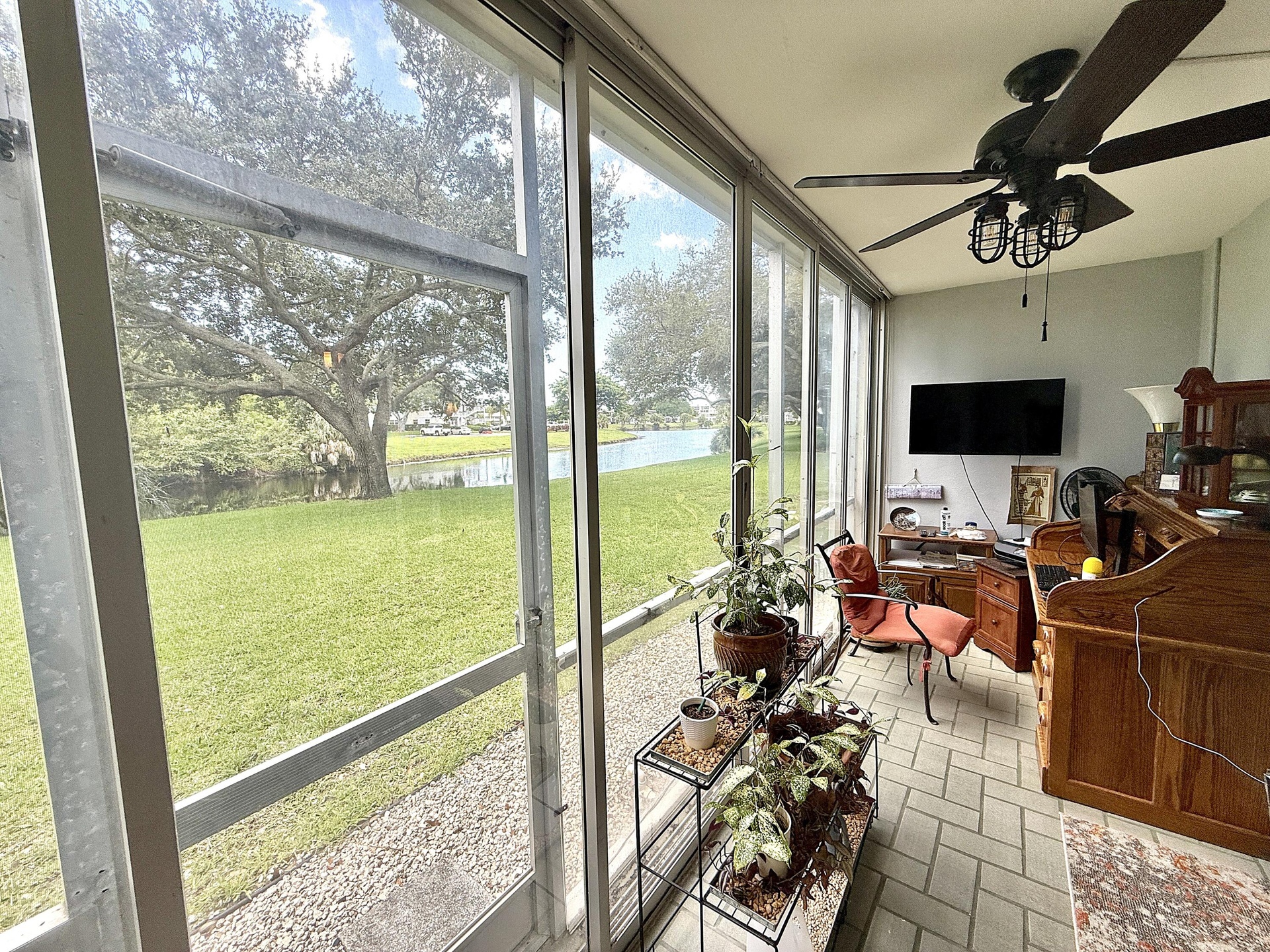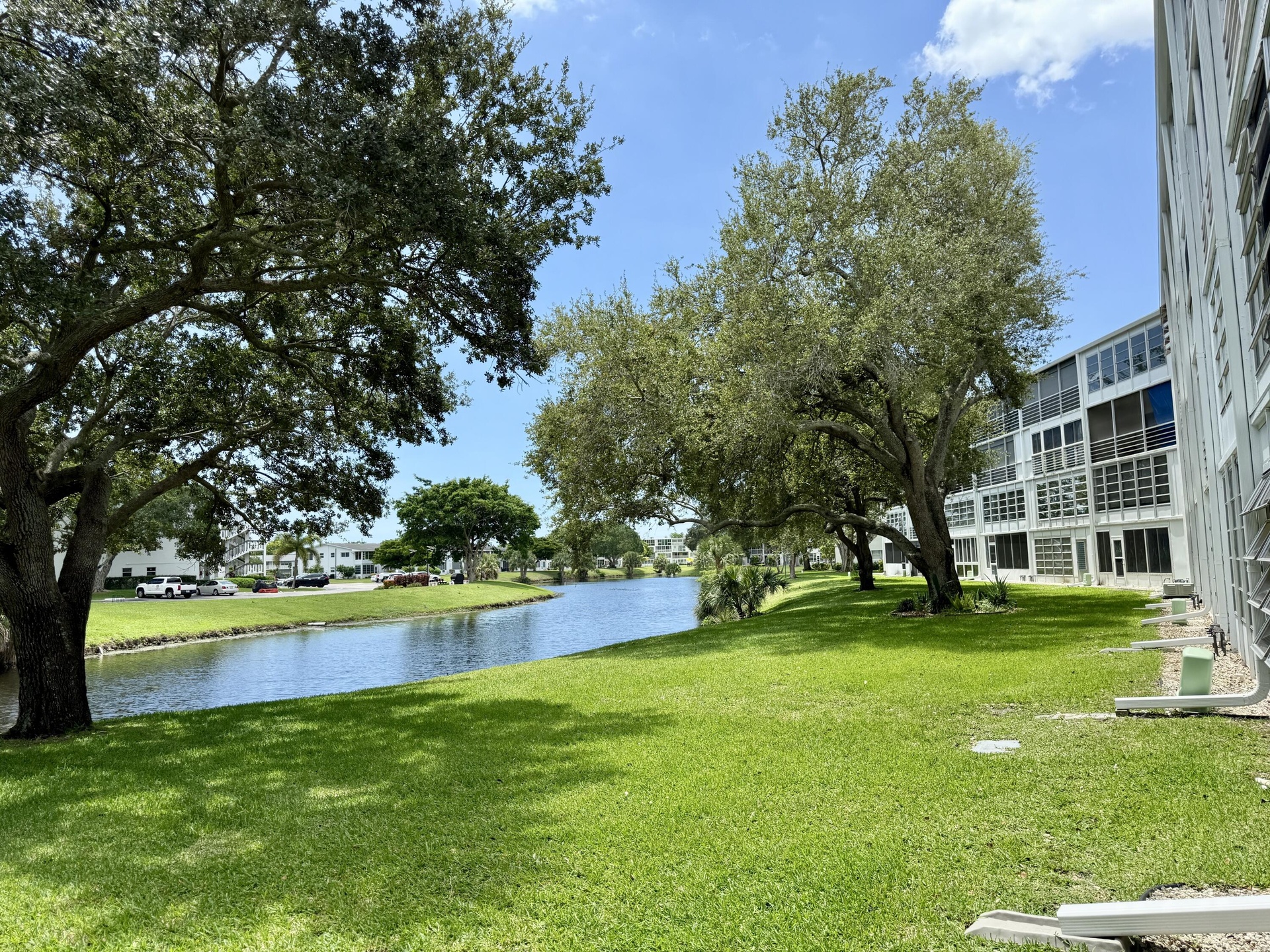 First Floor Lake View from enclosed titled patio. . Partially Furnished or Unfurnished 1 BR/1.5 Baths. Lovely renovated Galley Kitchen with high hat lighting, Granite Counters, Title Backsplash, SS Farm Sink and SS Appliances. Title & Laminate Flooring. Updated baths and walk-in shower in main bathroom. Stepts from the Newport Community pool+tennis. Clubhouse has indoor+outdoor pools, cafe, 1600 seat theater, clubs, tennis, billiards, pickleball, volleyball, ping pong, bocce, shuffleboard, fitness center, hiking+bike trails, putting green. Close to beaches, entertainment, dining, shopping. 55+ age