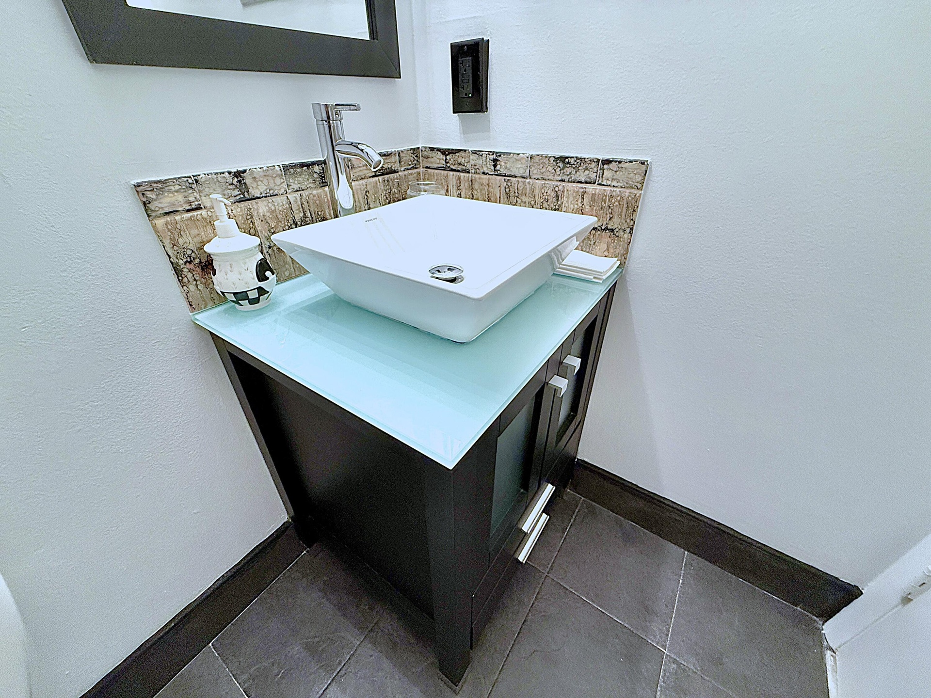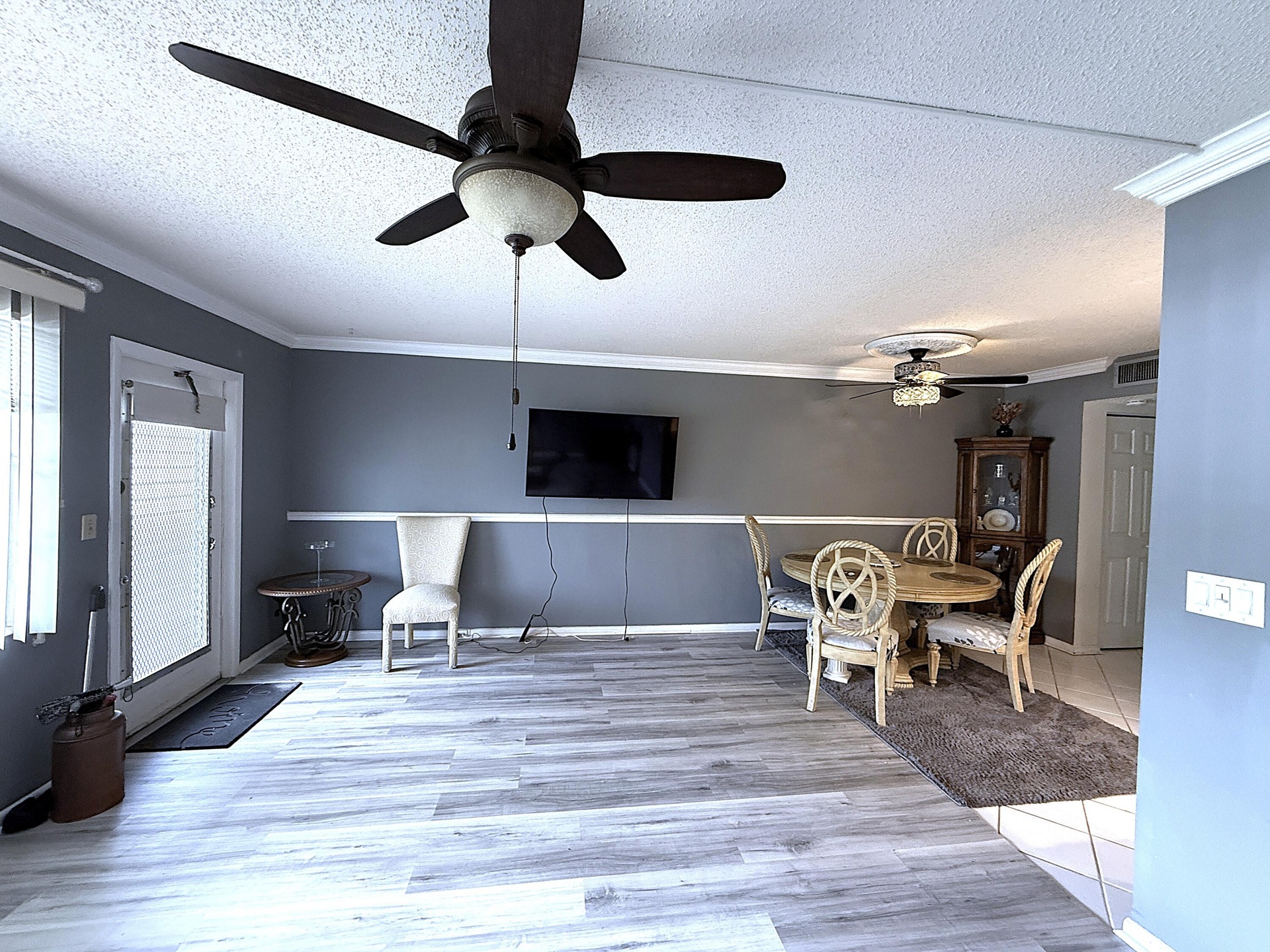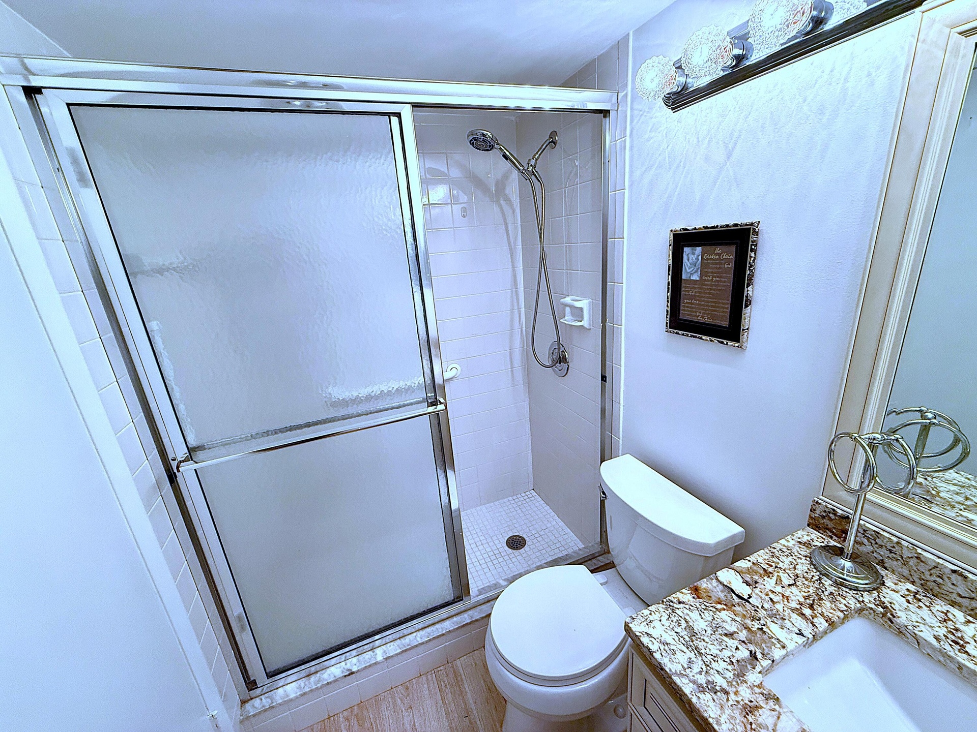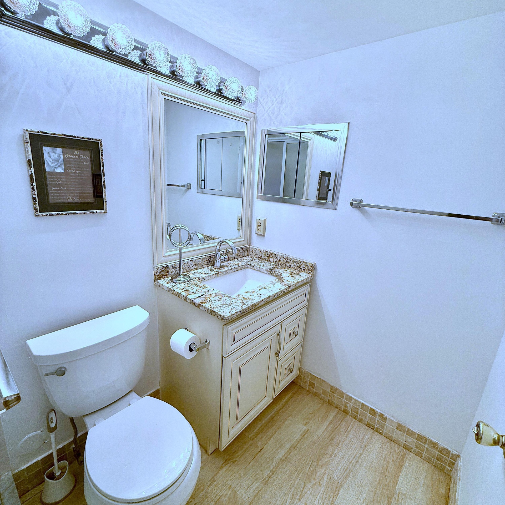First Floor Lake View from enclosed titled patio. . Partially Furnished or Unfurnished 1 BR/1.5 Baths. Lovely renovated Galley Kitchen with high hat lighting, Granite Counters, Title Backsplash, SS Farm Sink and SS Appliances. Title & Laminate Flooring. Updated baths and walk-in shower in main bathroom. Stepts from the Newport Community pool+tennis. Clubhouse has indoor+outdoor pools, cafe, 1600 seat theater, clubs, tennis, billiards, pickleball, volleyball, ping pong, bocce, shuffleboard, fitness center, hiking+bike trails, putting green. Close to beaches, entertainment, dining, shopping. 55+ age