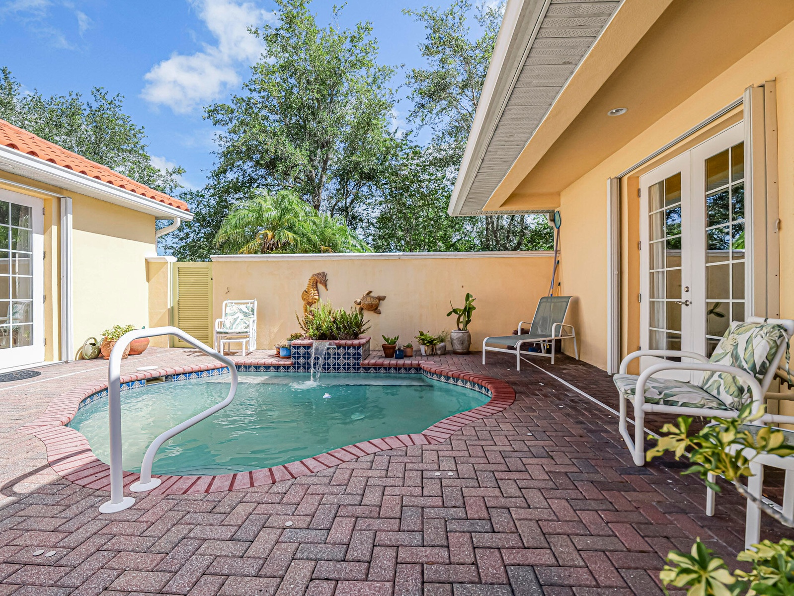 PRICED TO SELL!! Exquisite Mediterranean courtyard pool home in a premier gated community of just 41 homes. Features a grand 24'x23' living room with tray ceilings, 20'x20' Mediterranean tile, and a private cabana suite with full bath. Enjoy the courtyard pool, built-in BBQ, plantation & accordion shutters, home re-piped in 2024. Elegant, spacious, and perfect for indoor-outdoor living. Low HOA and resort-style serenity await!