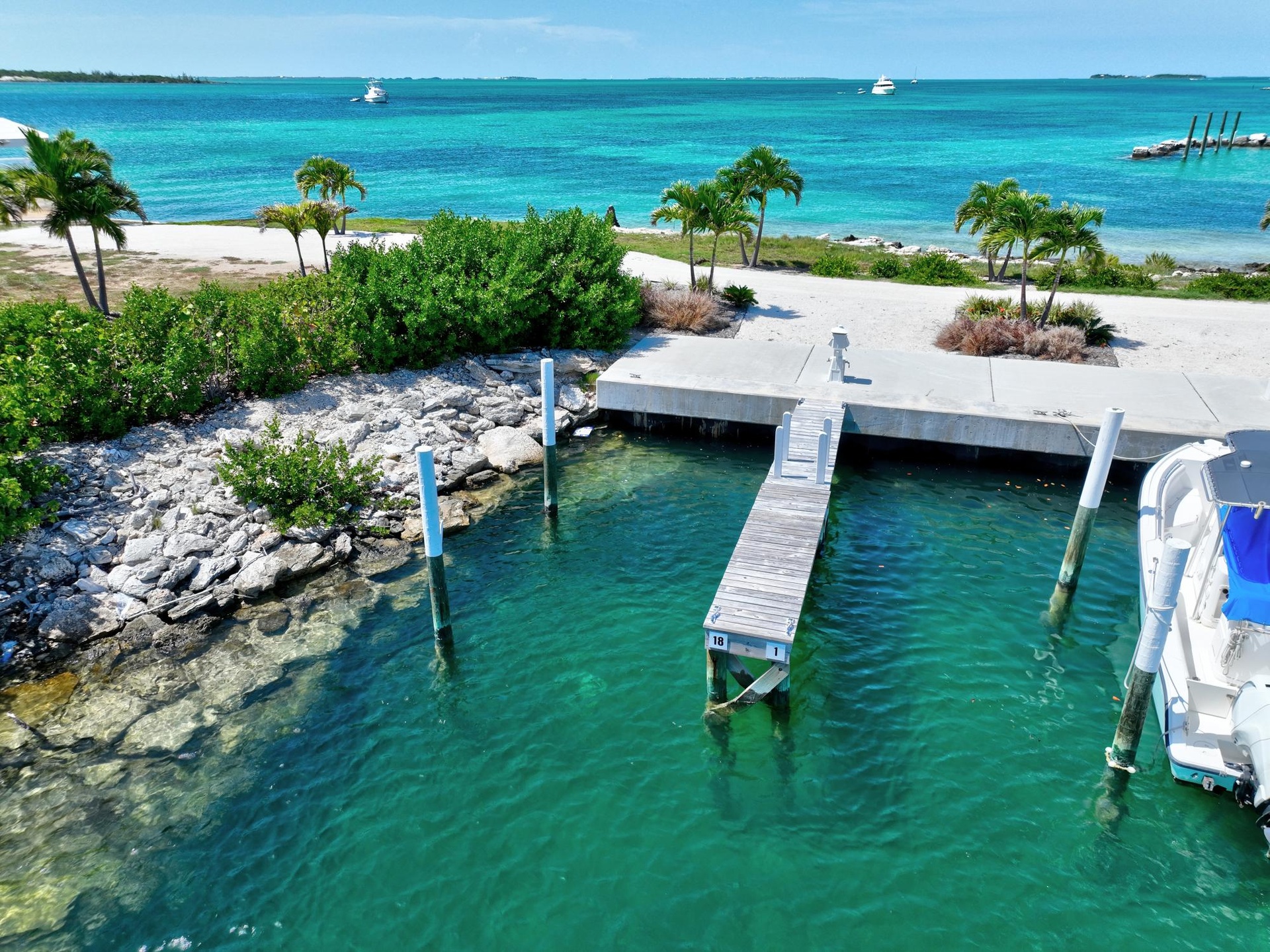 Marnie's is a private residential community comprised of forty-one spacious parcels of land. Located on the southern end of Elbow Cay, each of the approximately half-acre staggered lots offers calming views of the Sea of Abaco, beach access, and lush vegetation. Paved roads, underground utilities, and a private slip in a protected marina round out the amenities of these esteemed lots, which are just a short golf cart ride away from some of the island's most notable bars and restaurants. This particular property includes a pool and separate pool cottage, which have not been repaired or renovated since Hurricane Dorian—offering a unique opportunity for the new owner to restore or reimagine these spaces. The lot also comes with a private boat slip (Slip 18) providing convenient access to the water and enhancing the lifestyle offered by this exceptional coastal retreat.