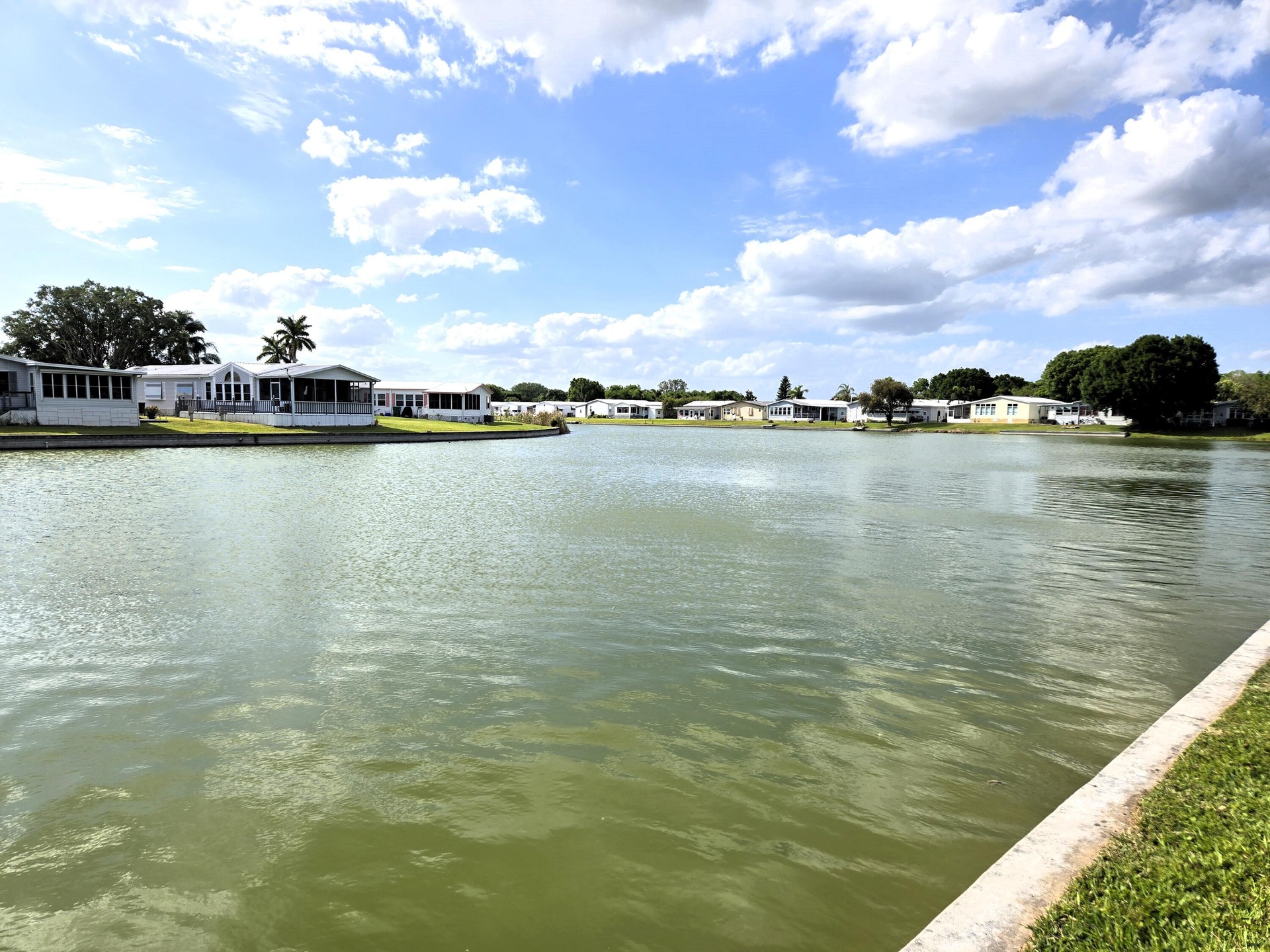 SEMINOLE COVE - WATERFRONT - DWMH with 1,296 sf under air/1,872 sf total lvg. this 2 bdrm/2ba home offers relaxing views of the lake. Updated kitchen with tons of storage. Closet pantry, Breakfast area/bar. New flooring in living room, bedrooms & den. Impact resistant windows. Florida room overlooks lake and includes a window for the ''furry'' kids to watch the ducks play in the water. Indoor laundry closet. Workshop. Covered carport with enough room for the boat. Active community with plenty of activities.