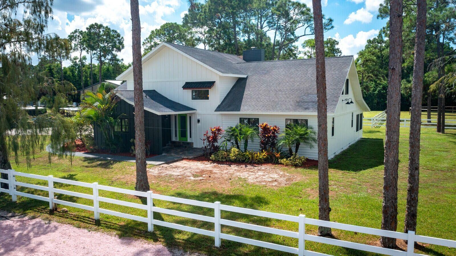 Great location, paved road, turn key 4+ bdrm, 2 story home & 2 barns offered for Seasonal, annual & off season rental. Available now for 2026 season, house has been tastefully furnished, updated with impact windows and sliders, vinyl flooring downstairs, marble bathrooms. 250 x 125' irrigated arena, 13 stalls- 2 barns, small barn has 5 stalls behind the home. 8 stall CBS barn with riders lounge/grooms quarters & full bath. Tack room/laundry, feed room & additional 1/2 bath. This home & 13 Stalls is just minutes to Wellington Int'l Horse Show & Polo venues. Tenant must provides equine liability and renters insurance, manure removal & pays utilities. All measurements are estimations and may be subject to error.