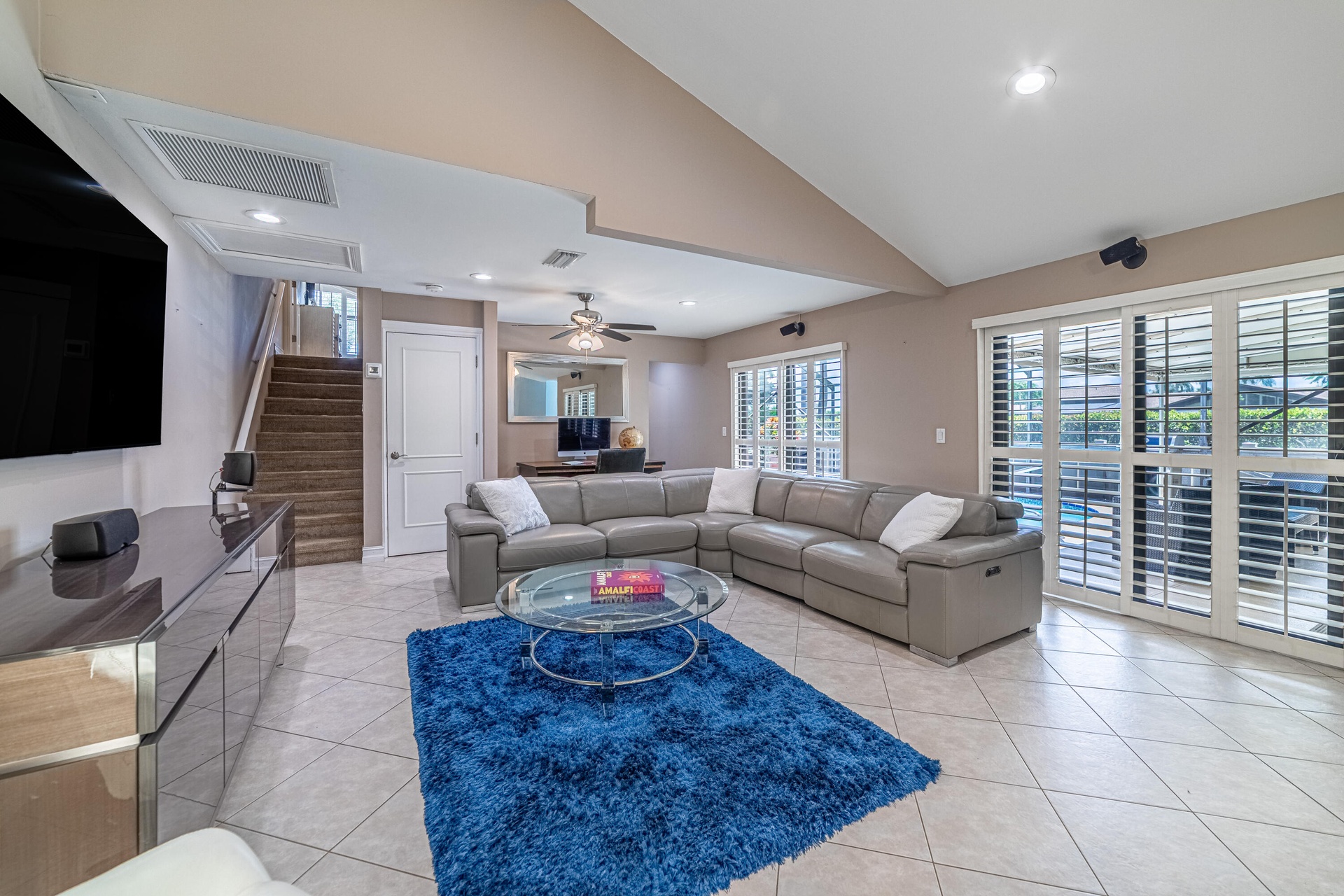 GORGEOUS LAKEFRONT VIEWS AND TOTAL PRIVACY.NEW ROOF, IMPACT SLIDERS AND DOORS, POOL WITH NEW MARCITE AND TILE Charming 3-bedroom, 3-bathroom townhouse with pool in the highly desirable Boca Gardens community and one of the most desired ''Azalea'' models. Huge interior living space plus an additional 800 sq. ft. of private, screened-in outdoor living area, this home offers a well-laid-out floor plan perfect for everyday living and entertaining.The open concept showcases beautiful, easy-to-maintain tile flooring throughout the main living areas downstairs and laminate in the 3 bedrooms with a thoughtfully designed kitchen and a comfortable flow throughout.Each bedroom features its own en-suite bathroom for added privac
