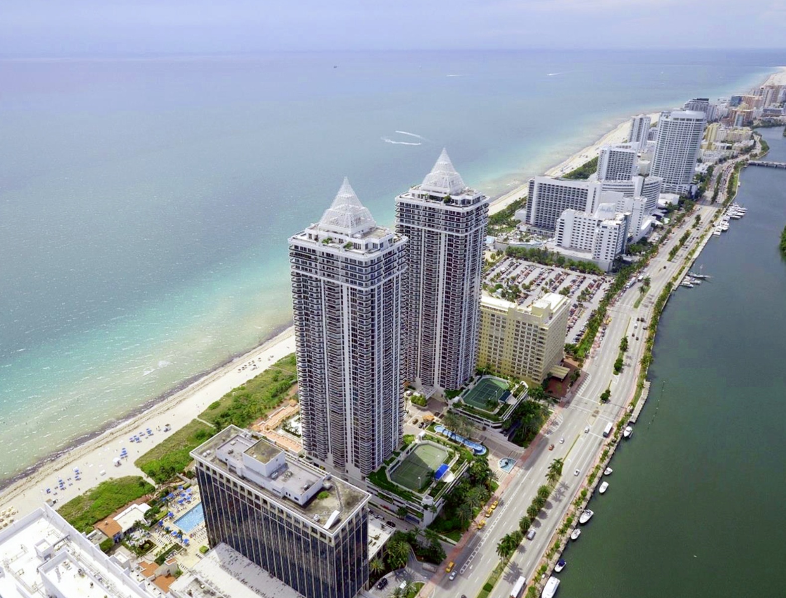 The Green Diamond is more than a building; it is a Miami Beach landmark. Together with its sister tower, the Blue Diamond, it stands as one of the tallest and most prestigious oceanfront addresses in all of Miami-Dade county. Designed by renowned architect Robert Swedroe, the twin 44-story towers boast 500 feet of pristine sandy beaches, a private marina, 28 poolside cabanas, and a 16,000 sq. ft. clubhouse and spa. Residents enjoy resort-style amenities including a heated oceanfront pool, state-of-the-art fitness center, tennis courts, sauna, steam rooms, and a billiards lounge creating an atmosphere where every day feels like a five-star vacation.