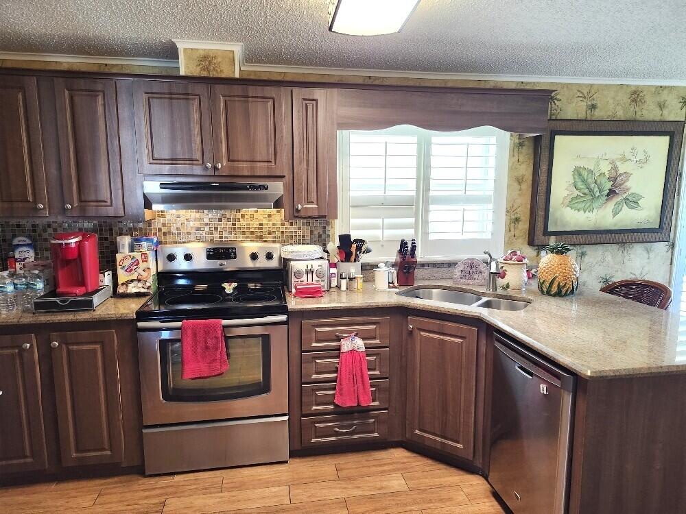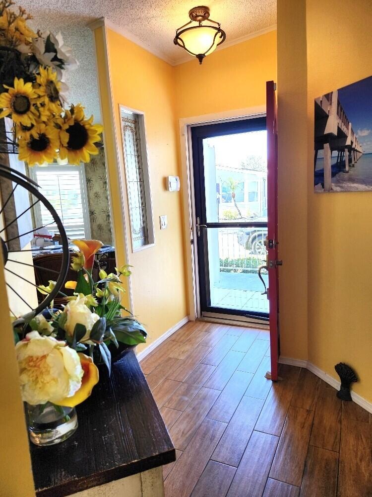 DescriptionON LARGE CORNER LOTThis beautiful home located Boynton Beach with its own sprinkler system. Tile floors, eat in kitchen, granite counter tops and stainless appliances. PLUS Accordion hurricane shutters++storage room.two bedroom/two bath The living room is large that can become a living dinning area. There is a enclosed lanai with a separate entrance in the side of the home. There is a double car parking, Double sink vanity in the large master bedroom.