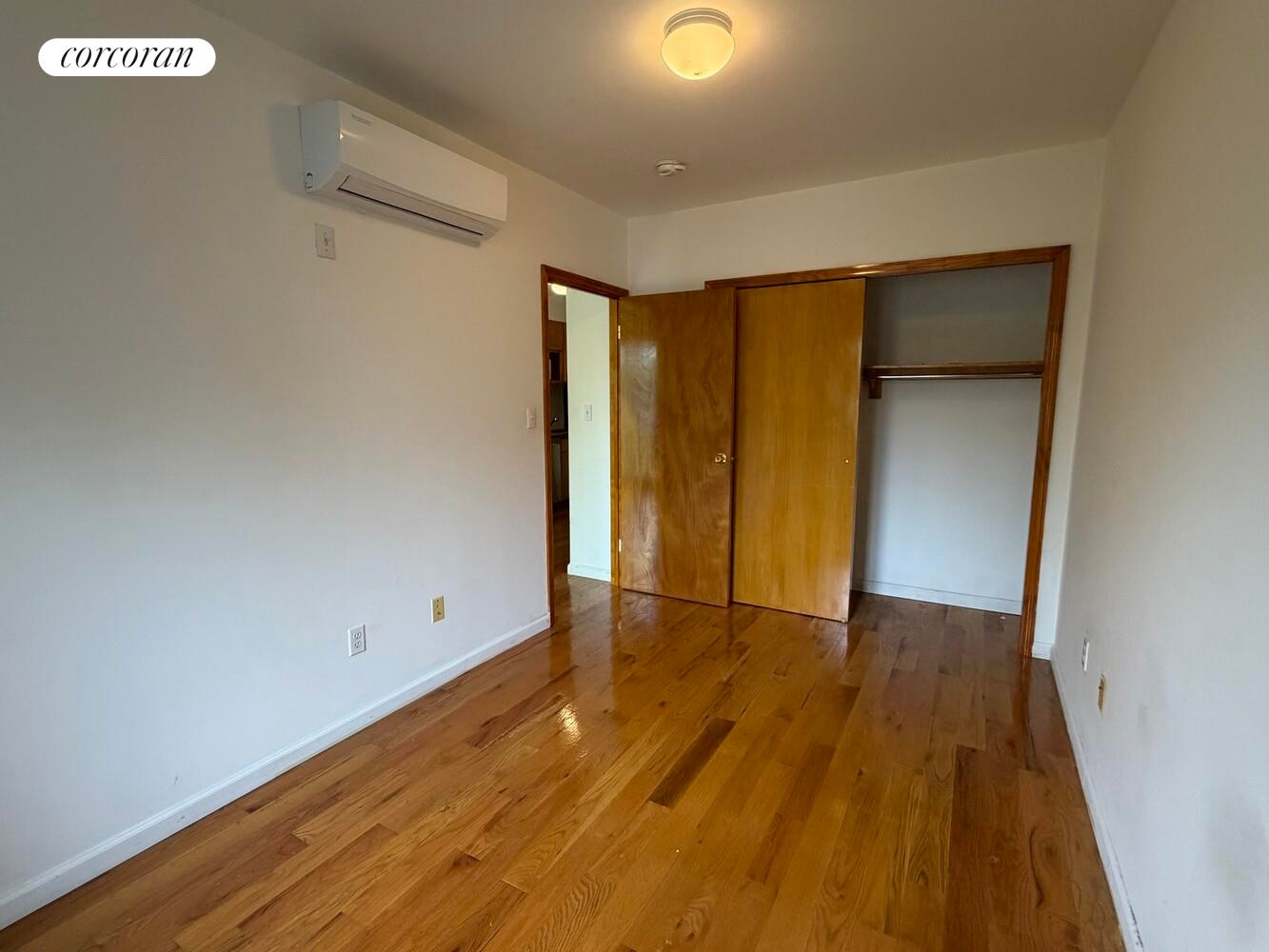 The oversized bedroom easily accommodates any bed size with room to spare for additional furniture. A generous wall-to-wall closet provides ample storage, helping you keep your space tidy and organized.