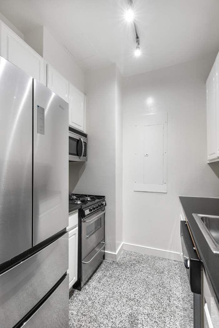 Step into this dramatic, loft-like studio where soaring 13-foot ceilings and oversized windows fill the living and sleeping space with abundant natural light. Thoughtfully designed, the residence offers exceptional closet storage, a timeless marble bathroom, and an updated kitchen featuring black granite countertops and crisp white cabinetry— perfectly suited as a primary home or a convenient pied-à-terre in the prime Upper East.