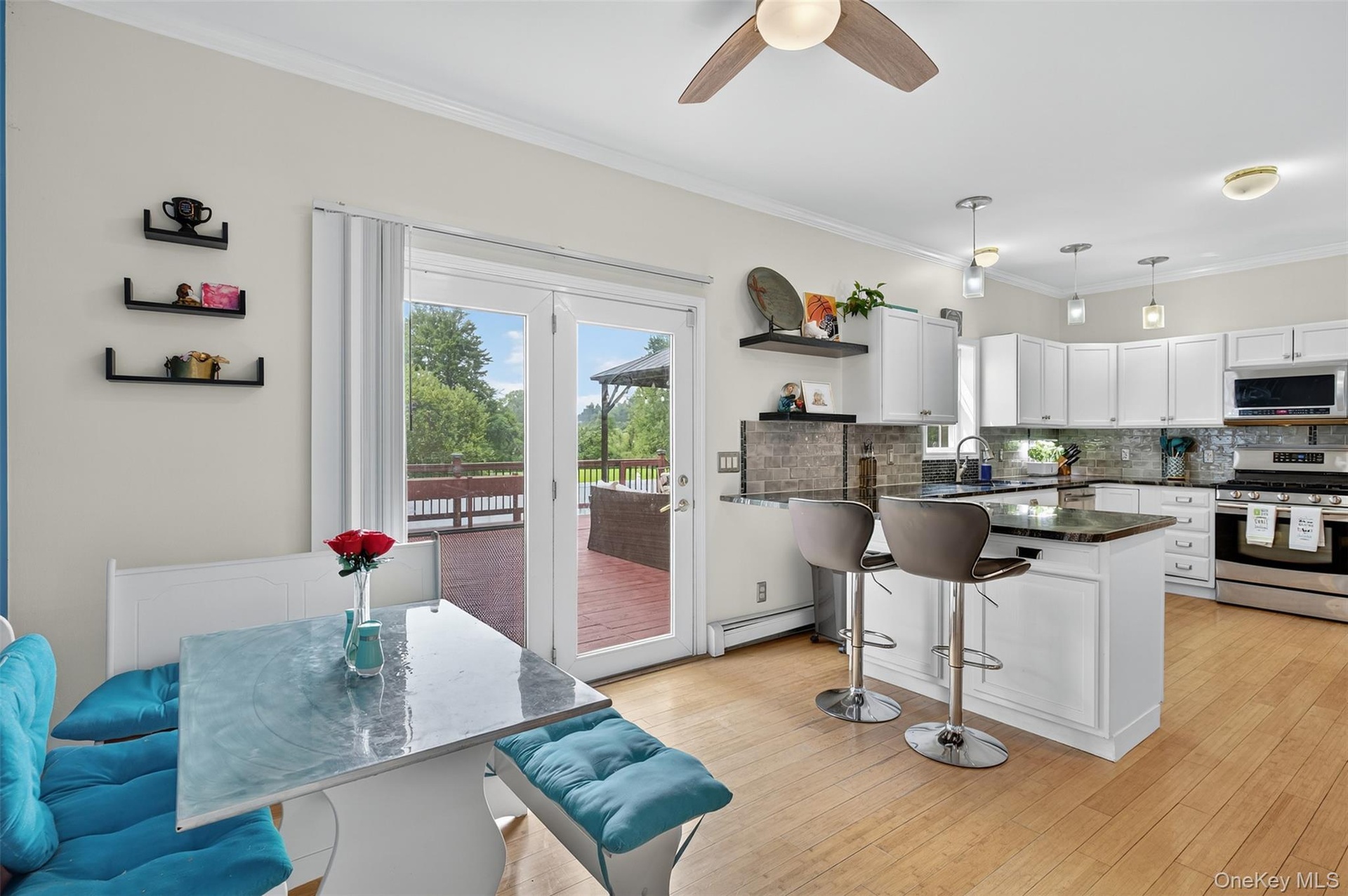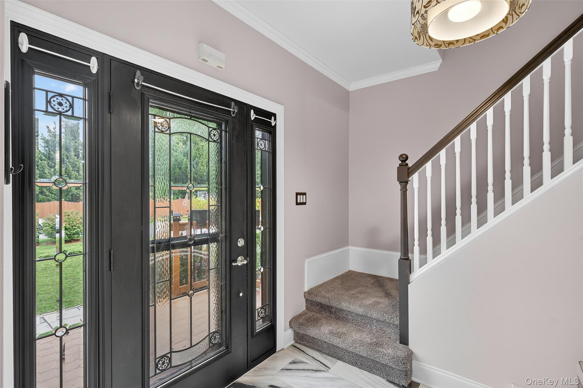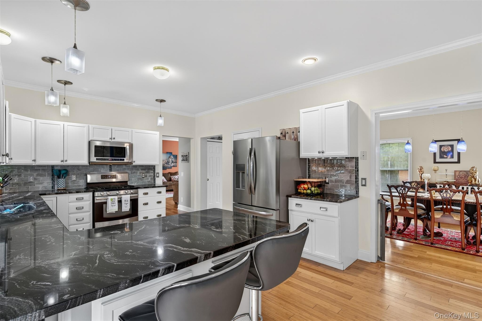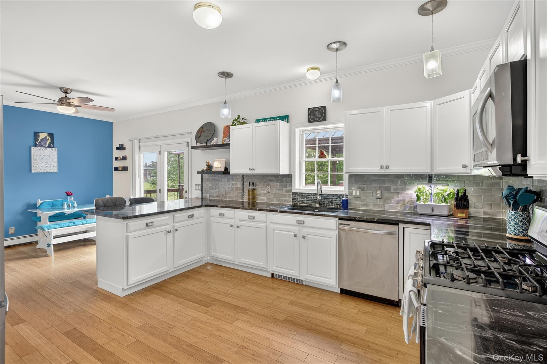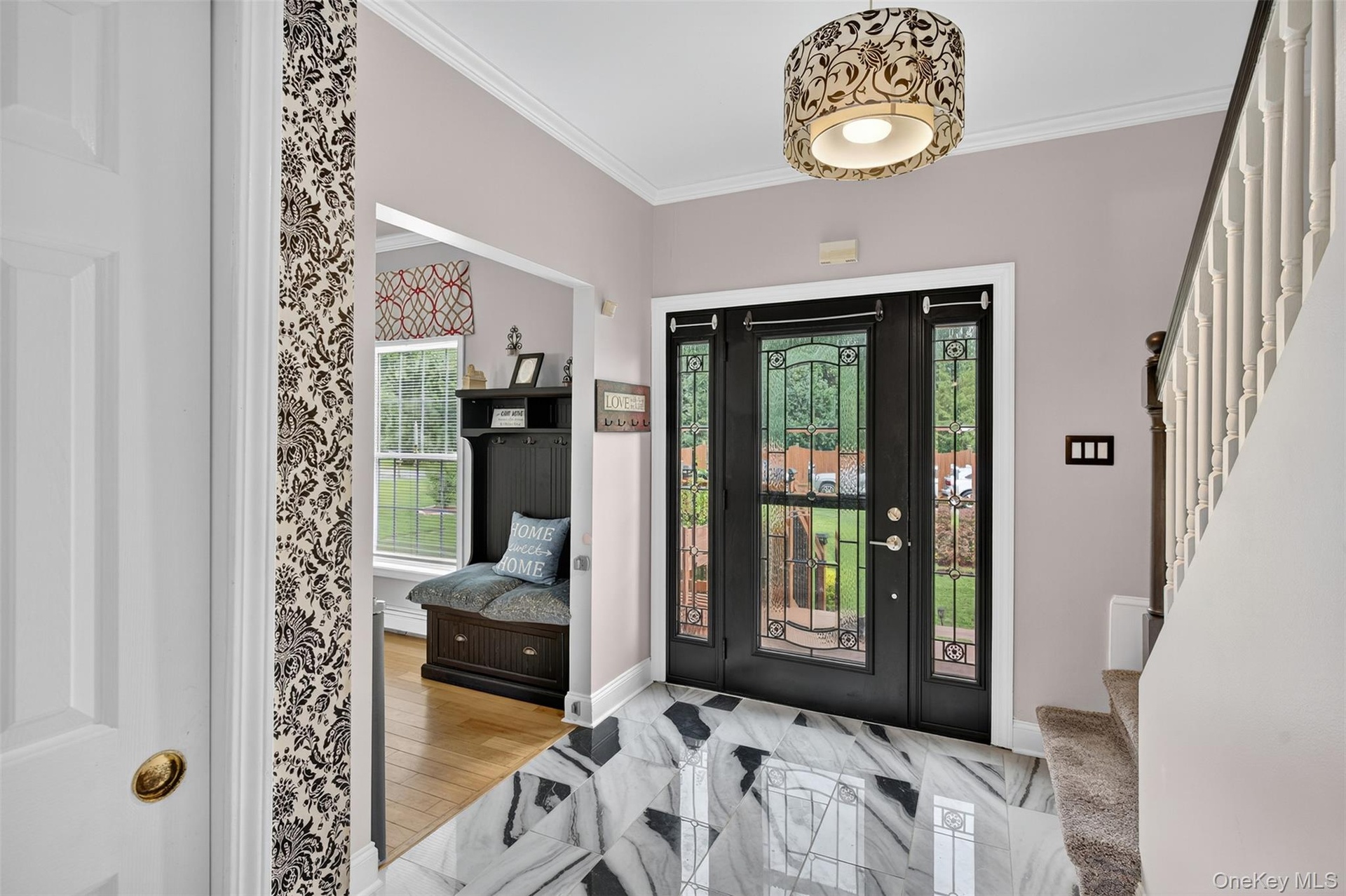 Step into timeless charm with this elegant center hall colonial. From the inviting front porch to the generous entryway, every detail welcomes you with warmth and sophistication. The spacious open foyer unveils 2,484 sq ft of beautifully appointed living space, where rich hardwood floors and a thoughtfully designed layout set the stage. Perfect for hosting, the formal dining and living room offer refined spaces for memorable gatherings. At the heart of the home, an expansive open-concept kitchen features sleek quartz countertops, subway tile backsplash, stainless steel appliances, a breakfast bar, and ample room for casual dining. A seamless indoor-outdoor experience unfolds through french doors that lead to a generous deck, ideal for summer evenings and weekend entertaining. A convenient half bath completes the main level. Upstairs, the primary suite is your private retreat, boasting a walk-in closet, dedicated dressing room, and a spa-inspired ensuite with a soaking tub and separate shower. Three additional bedrooms and a full hall bath ensure plenty of space for family and guests. Laundry is thoughtfully positioned on the second floor, just where you need it. A thoughtfully designed extra room offers endless possibilities to create a serene studio, a vibrant playroom, or a personalized workspace. The fully finished lower level expands your options even further, ready for a gym, game room, or secondary family room. Additional features include a two-car garage and beautifully landscaped yard featuring lush gardens, mature trees, and a serene koi pond. Enjoy peace of mind with a range of thoughtful upgrades, including: new roof, modernized kitchen featuring sleek and contemporary finishes, fresh interior paint throughout for a bright, inviting atmosphere, split-units offering both heating and cooling, blacktop driveway for easy maintenance and curb appeal, durable epoxy flooring in the garage and lower level for a clean and modern look, fully fenced backyard offering privacy and storage shed for tools, equipment, or seasonal items. Ideally situated just minutes from the vibrant communities of Saugerties and Woodstock, this home places you at the heart of the Hudson Valley's charm. Discover a variety of nearby attractions, including historic sites, art galleries, local eateries, farmers markets, parks, and unique shops. Nature lovers will appreciate the tranquility of Falling Water Preserve, where cascading waterfalls and wooded trails line the Hudson River, and the Esopus Bend Nature Preserve, offering scenic hiking paths perfect for outdoor adventures. Only 2 hours from Metro NY, this move-in ready gem blends classic style with modern comfort, offering a peaceful sanctuary to call your own.