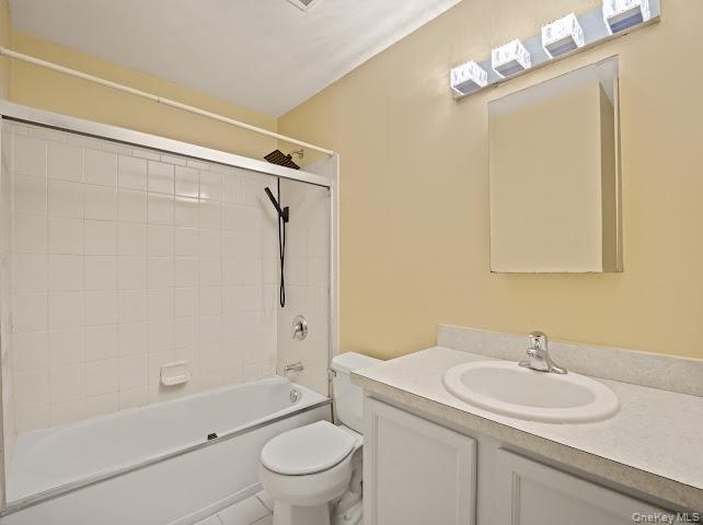 - Full bath featuring shower combination, vanity, and tile patterned floors