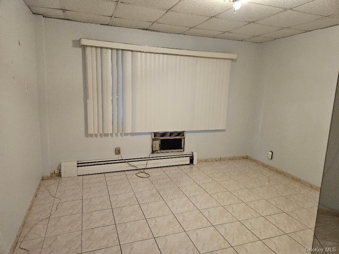 - Spare room with a baseboard heating unit, light tile patterned floors, and a paneled ceiling