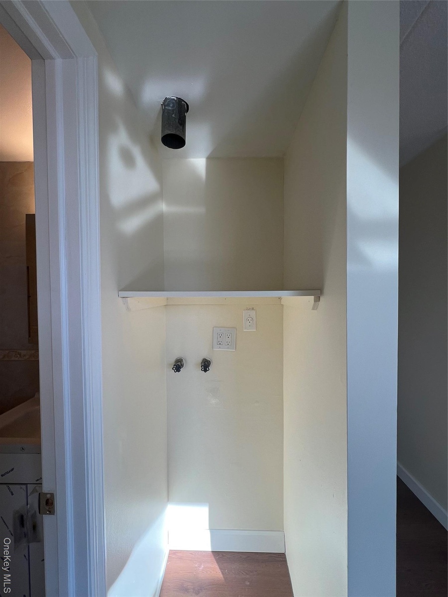 - Laundry area with hookup for a washing machine and dark wood-style floors