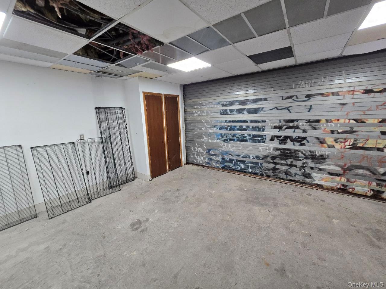 - Unfurnished room featuring unfinished concrete flooring and a drop ceiling