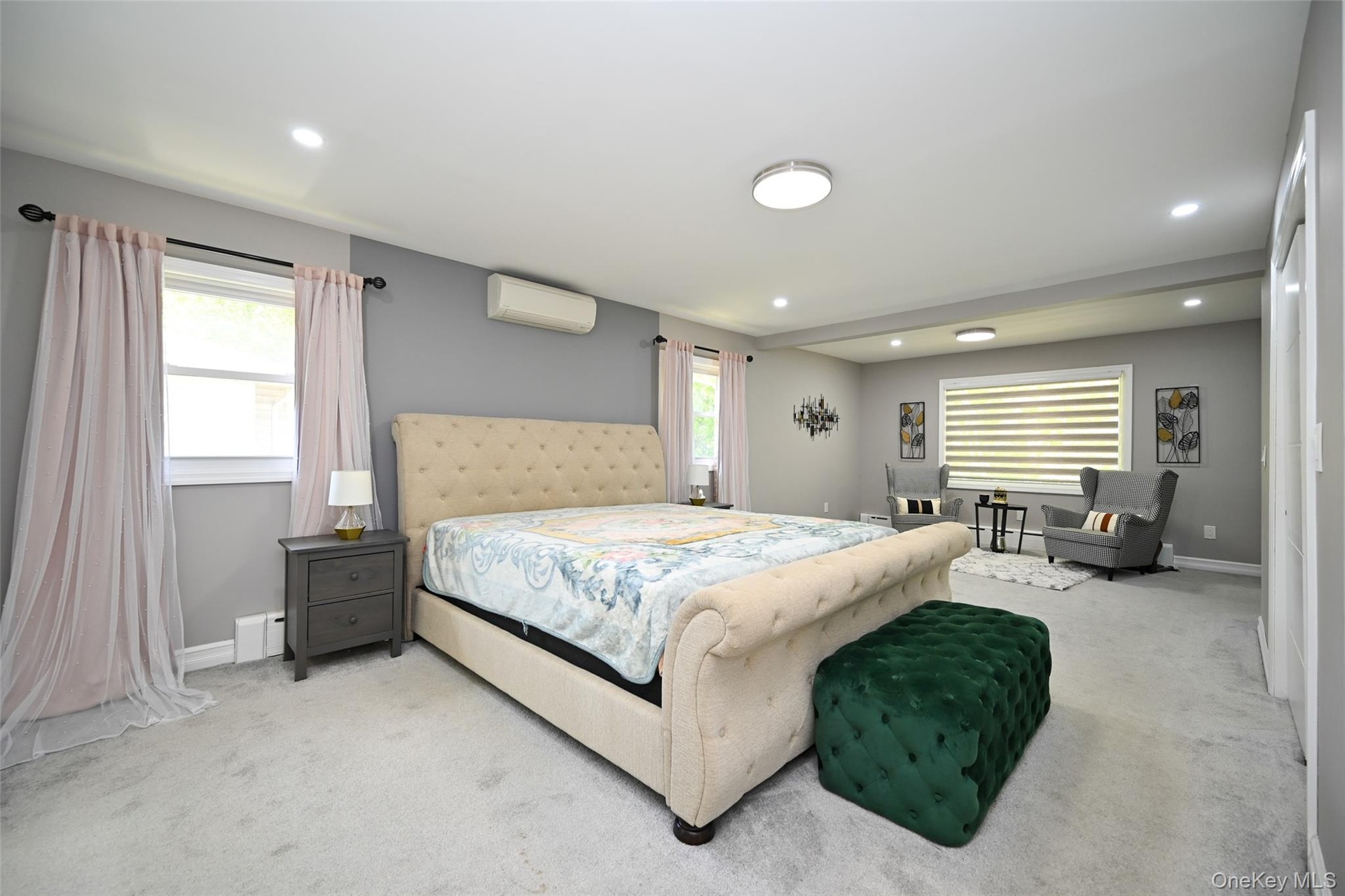 - Bedroom with carpet flooring, recessed lighting, and a wall unit AC