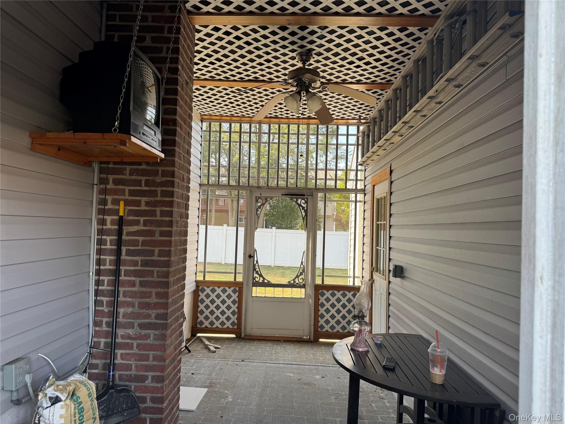 - Unfurnished sunroom featuring plenty of natural light and a ceiling fan