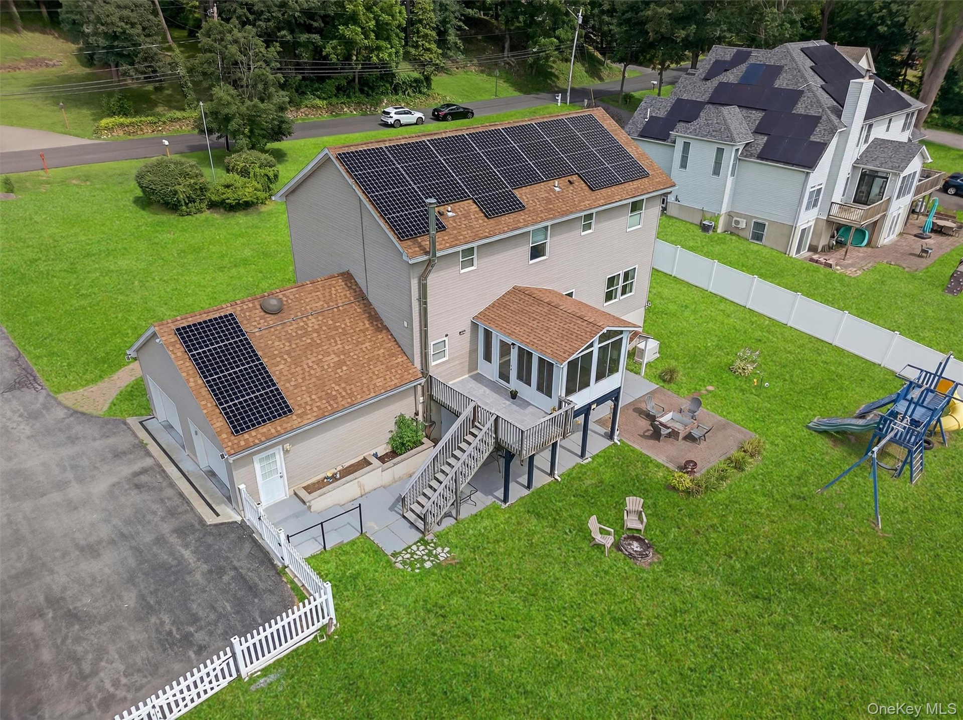 RARE FIND! Welcome to this beautifully maintained Center Hall Colonial perfectly set on one acre, featuring a Legal Accessory Apartment ideal for family, guests, or rental income! Experience an open floor plan with a 2-story entry, 9 ft ceilings on the Main Level, with an inviting living room, family room, formal dining room with crown molding, hardwood flooring, and recessed lighting. Enjoy cooking in the sleek, modern kitchen complemented by granite counters with a breakfast bar, stainless steel appliances, and a pantry. The charming 12x14 glass sunroom addition boasts vaulted ceilings and features an 18K BYU mini-split for year-round comfort. Retreat to the large master bedroom with a spa-like bathroom featuring a walk-in shower, jacuzzi tub, and double sinks, a walk-in closet, and gleaming hardwood flooring. Three additional bedrooms and a full bath on the 2nd level. The versatile lower level includes a workout room, storage, and a full bath with a second washer/dryer and backyard access, while the first-rate accessory apartment is filled with natural light, offering a living room, spacious bedroom, a gorgeous kitchen with stainless steel appliances and stone counters, and a full bath with private entrance. Step outside to a picture-perfect backyard featuring a partially covered stone patio, vinyl fencing, breathtaking mountain views, a fire pit, and an above-ground pool with a new liner and deck—perfect for entertaining. This home boasts upgrades like a 24K whole-house generator, a Peerless boiler, a new sunroom, updated electric, a new well pump, and owned solar panels, saving a lot of money on electricity bills. The home has lots of closets, along with central air and a huge 2-car garage with above storage space. Situated in a commuter-friendly location close to shopping, restaurants, schools, and all the recreational activities the Hudson Valley has to offer. This home is a true gem, offering comfort, convenience, and a beautiful setting!