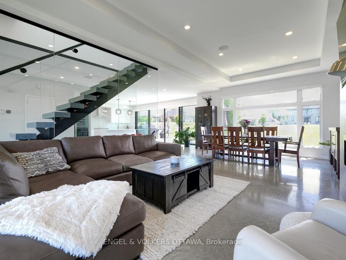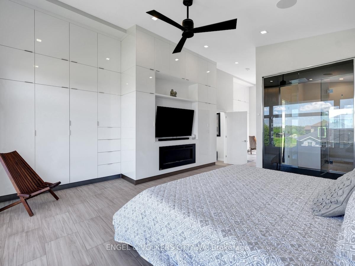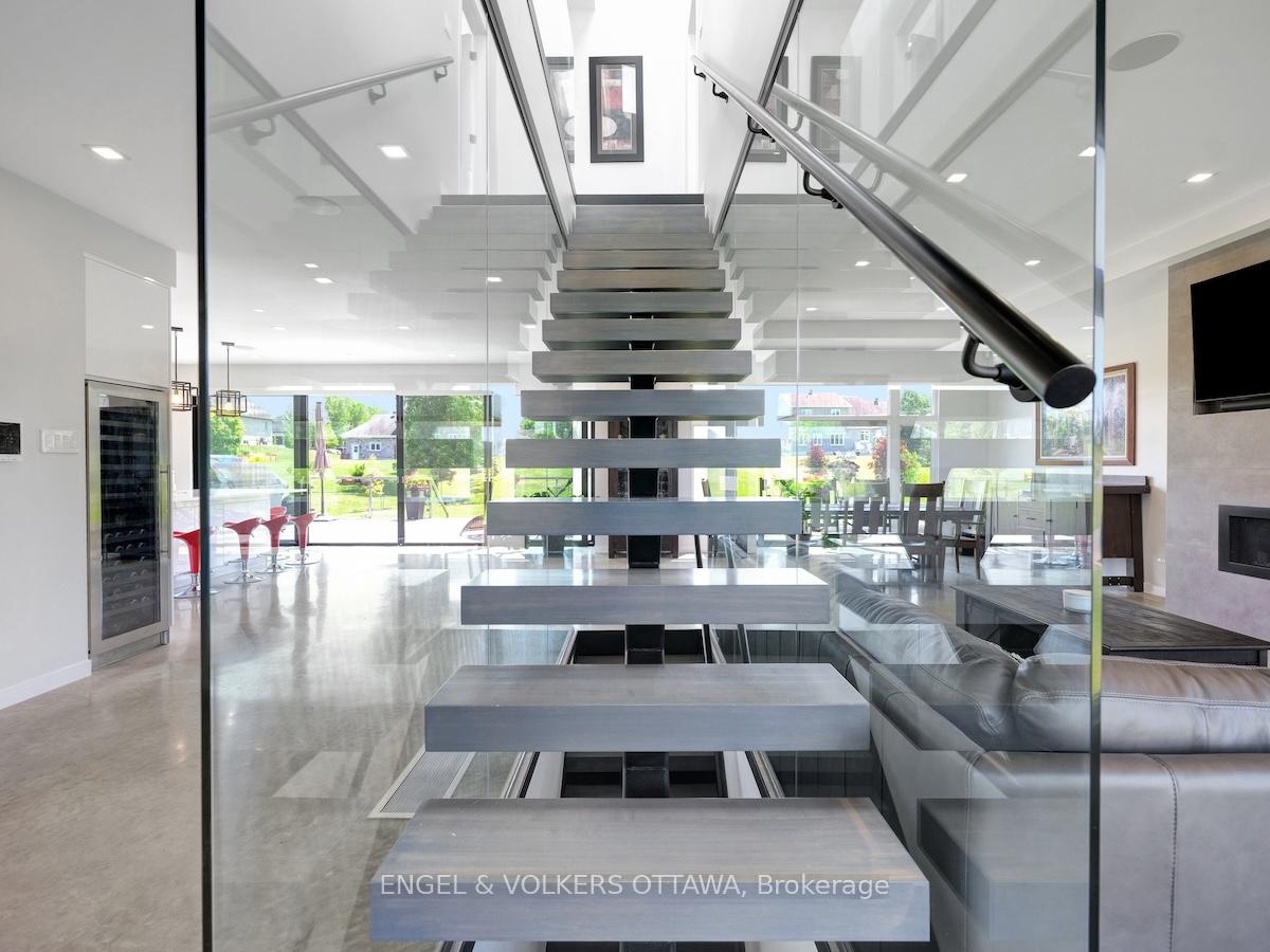 Welcome to this exceptional custom-built, automated home, crafted with precision and modern elegance. A striking centrepiece of this property is the stunning centre staircase with glass walls, complemented by sleek concrete floors and a beautiful natural gas fireplace that adds both warmth and style to the open-concept living space.This home is flooded with natural light, thanks to its southern exposure, floor-toceiling windows, and two oversized 5-foot patio doors. These doors open up to an expansive composite deck, offering the perfect space for entertaining or simply enjoying the outdoors.The gourmet kitchen is a true delight, featuring high-end stainless steel appliances, quartz countertops, and a spacious centre island with a built-in sink. Elegant pendant lighting adds extra flair, while the wine fridge, which holds 140+ bottles, ensures youre always ready to entertain in style.The cozy living room, complete with a fireplace, offers a perfect retreat, while the adjacent dining area comfortably accommodates a large table. The homes cutting-edge Control 4 automation system lets you easily adjust lighting and music, with compatibility for Apple, Google, Spotify, and more. *Ipad required. Lutron switches and pot lights throughout create the ideal ambiance.The primary suite is a luxurious escape, offering a spa-like ensuite with dual rain showers, massaging jets, a separate soaker tub, and double sinks. The expansive walk-in closet and beauty station complete the indulgent retreat. Second bedroom feature a large closet and ensuite bathrooms, while two additional bedrooms offers ample storage and natural light.The upstairs laundry featuring retractable doors and a nat gas dryer. The large, sun-filled basement provides possibilities for a gym, office, or rec room.The fully insulated two-door garage a natural gas heater and high enough for a car lift, while the driveway offers parking for six vehicles. Irrigation system for lawn