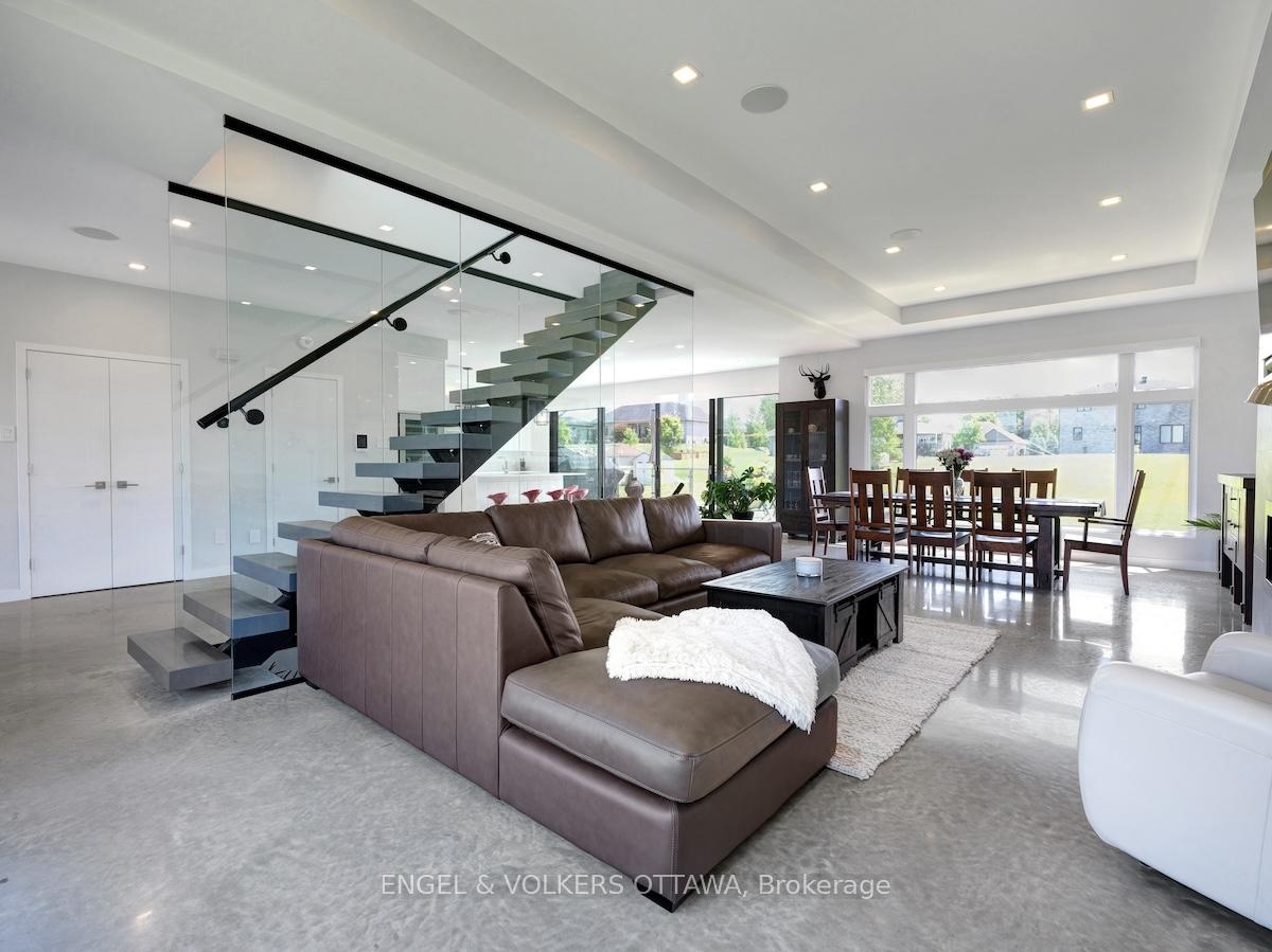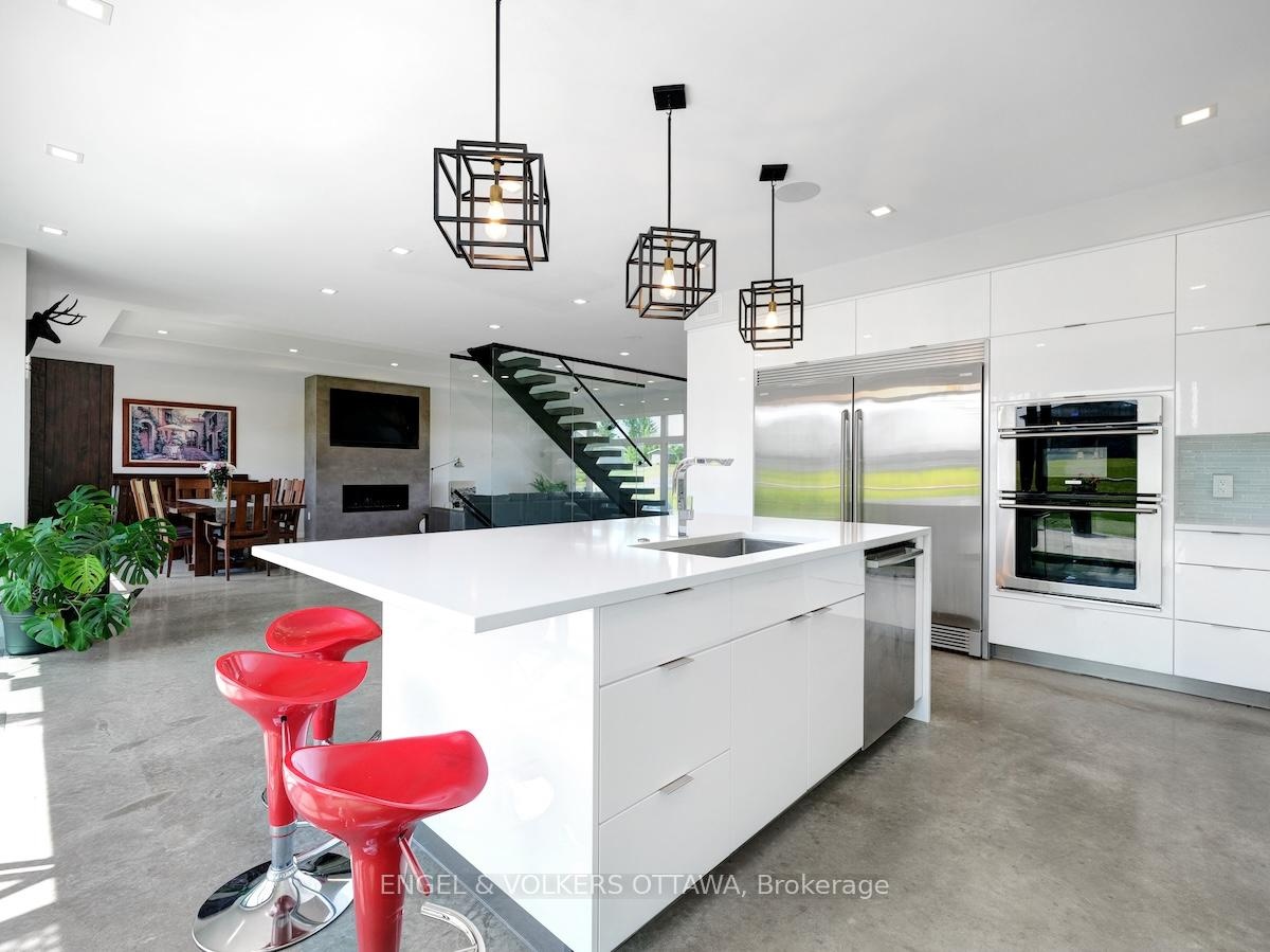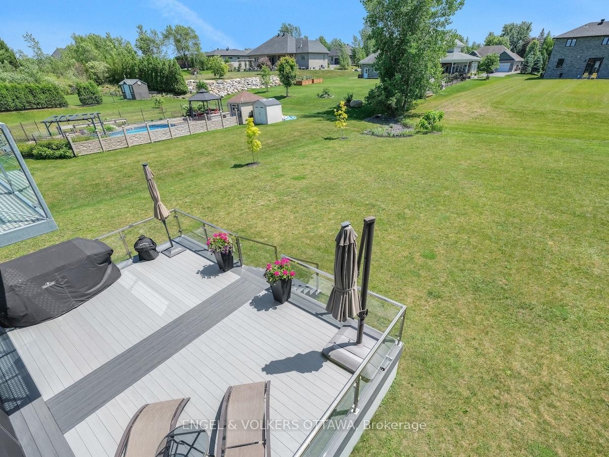 Welcome to this exceptional custom-built, automated home, crafted with precision and modern elegance. A striking centrepiece of this property is the stunning centre staircase with glass walls, complemented by sleek concrete floors and a beautiful natural gas fireplace that adds both warmth and style to the open-concept living space.This home is flooded with natural light, thanks to its southern exposure, floor-toceiling windows, and two oversized 5-foot patio doors. These doors open up to an expansive composite deck, offering the perfect space for entertaining or simply enjoying the outdoors.The gourmet kitchen is a true delight, featuring high-end stainless steel appliances, quartz countertops, and a spacious centre island with a built-in sink. Elegant pendant lighting adds extra flair, while the wine fridge, which holds 140+ bottles, ensures youre always ready to entertain in style.The cozy living room, complete with a fireplace, offers a perfect retreat, while the adjacent dining area comfortably accommodates a large table. The homes cutting-edge Control 4 automation system lets you easily adjust lighting and music, with compatibility for Apple, Google, Spotify, and more. *Ipad required. Lutron switches and pot lights throughout create the ideal ambiance.The primary suite is a luxurious escape, offering a spa-like ensuite with dual rain showers, massaging jets, a separate soaker tub, and double sinks. The expansive walk-in closet and beauty station complete the indulgent retreat. Second bedroom feature a large closet and ensuite bathrooms, while two additional bedrooms offers ample storage and natural light.The upstairs laundry featuring retractable doors and a nat gas dryer. The large, sun-filled basement provides possibilities for a gym, office, or rec room.The fully insulated two-door garage a natural gas heater and high enough for a car lift, while the driveway offers parking for six vehicles. Irrigation system for lawn