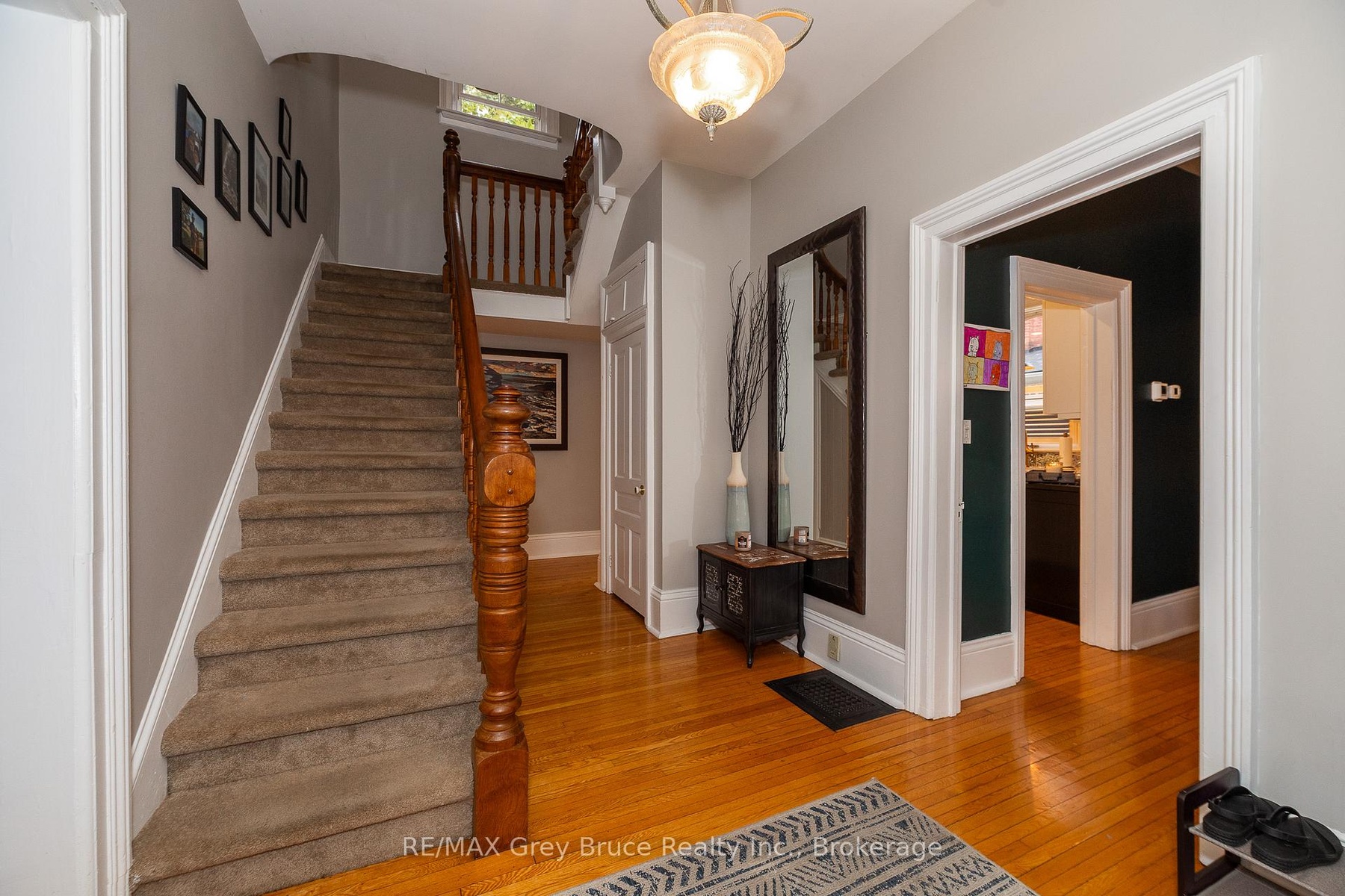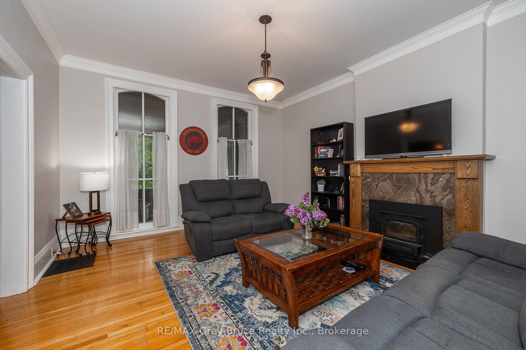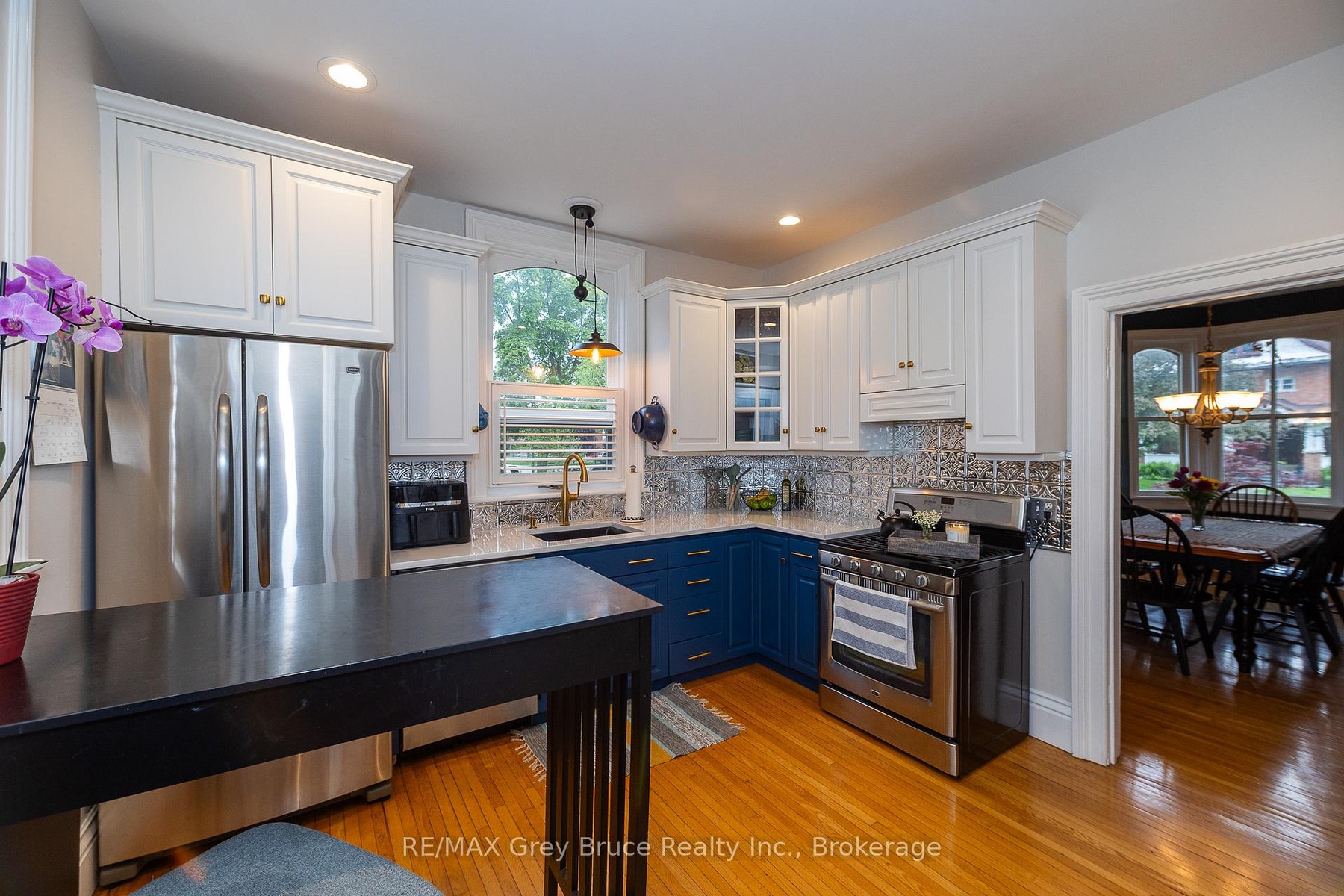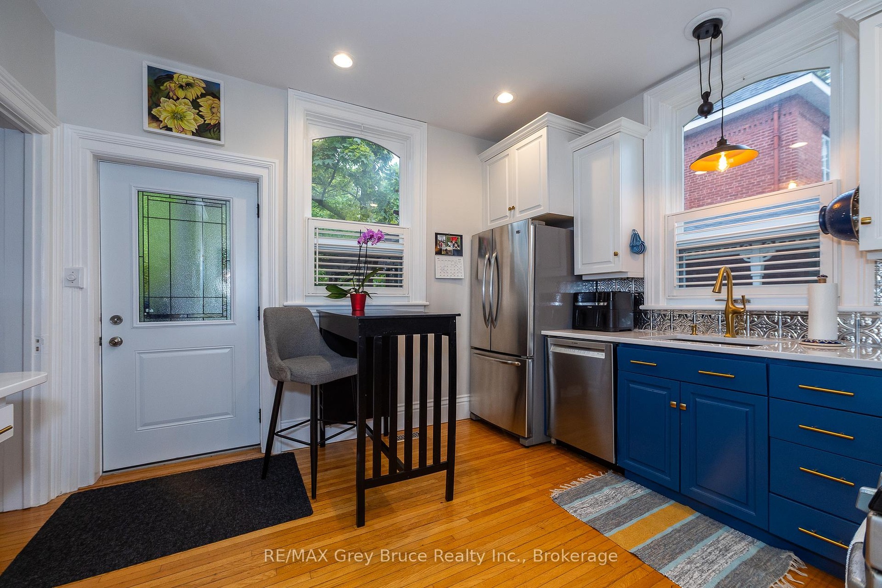 DescriptionHistoric elegance meets modern comfort in this beautifully renovated 1890s red-brick home on one of Owen Sounds most prestigious streets. Set among notable landmarks such as the former U.S. Consulate, Billy Bishop House, and James Harrison House, this property is just a short walk to the Mill Dam, Farmers Market, Library, and the vibrant River District. Inside, youll find rich hardwood floors, soaring ceilings, oversized windows, and a sun-filled living room overlooking the charming front verandah. The custom kitchen features quartz countertops and generous cabinetry, opening to a formal dining room perfect for gatherings. Upstairs offers three spacious bedrooms, a large family bathroom with laundry, and a stunning third-floor primary suite with skylights, a sitting area, and spa-style ensuite. Heated floors in both full bathrooms and the cozy back family room add year-round comfort. Outside, the fully fenced backyard is a private retreat with mature landscaping, waterfalls, pond, stone patio, and expansive deck for entertaining. Additional features include natural gas heating, central air, a separate exterior basement entrance, and a large 52 x 186.6 lot. This one-of-a-kind property combines charm, character, and an unbeatable location in the heart of Owen Sound.Virtual Tour: https://youtu.be/HSHdsM_zd_0Amenities- Central Vacuum