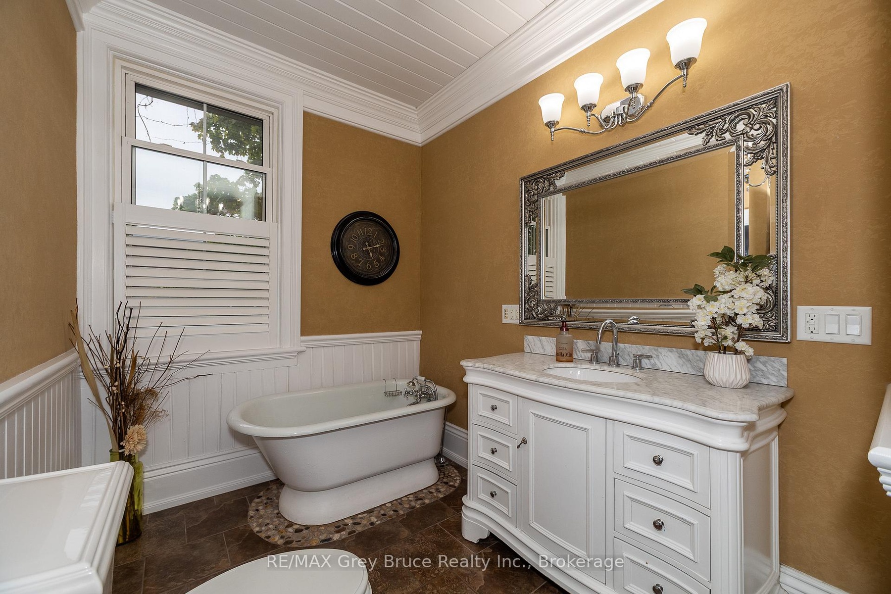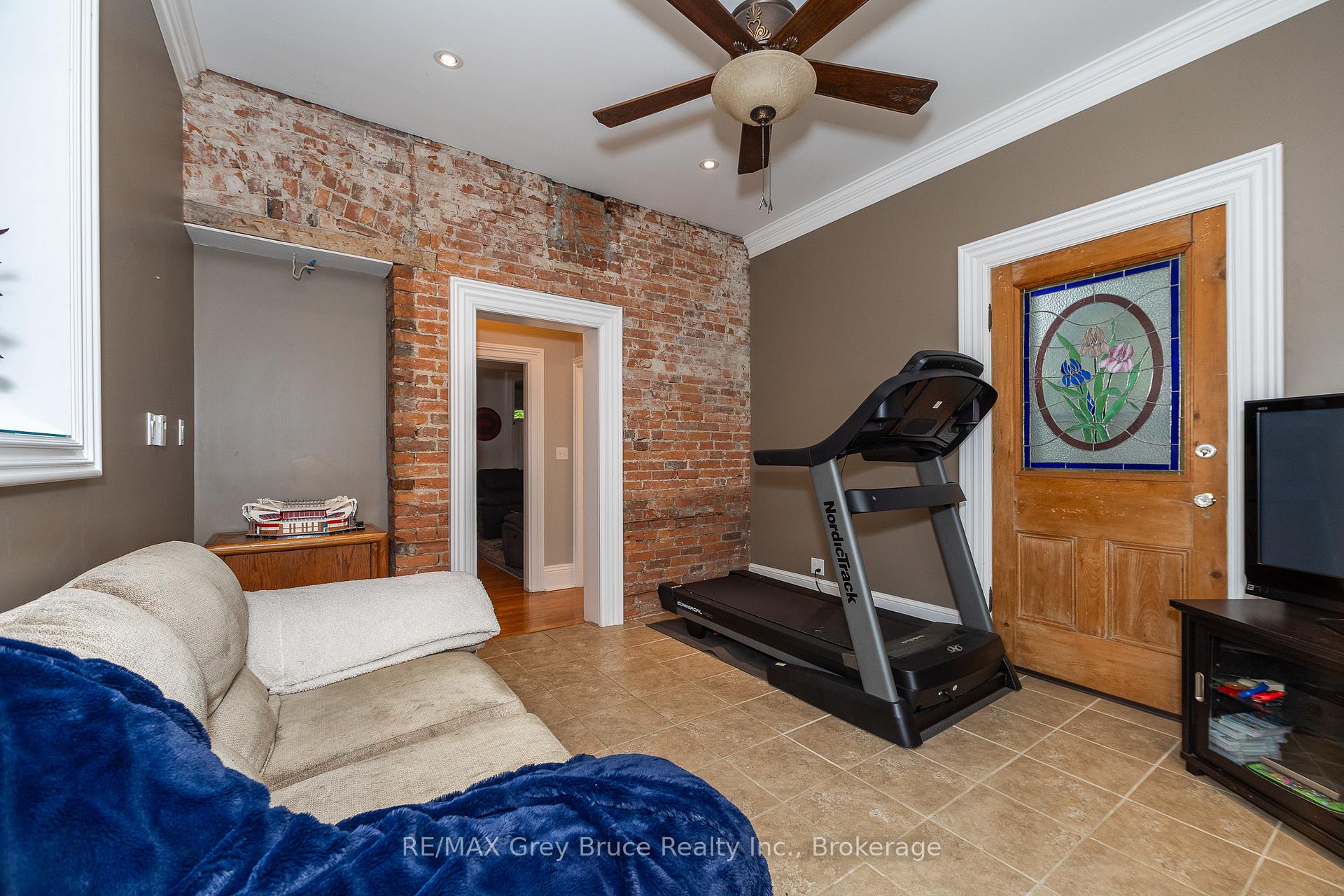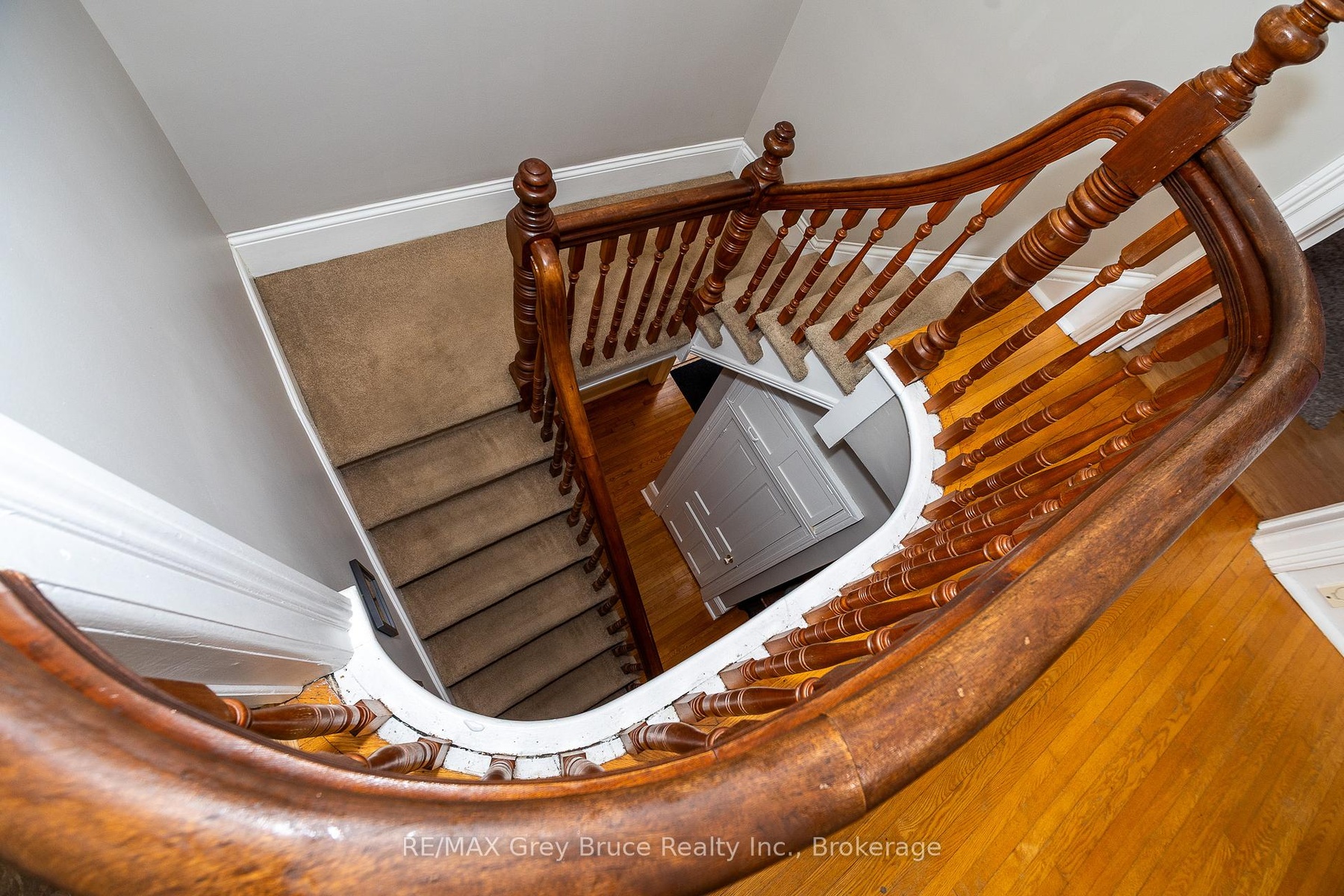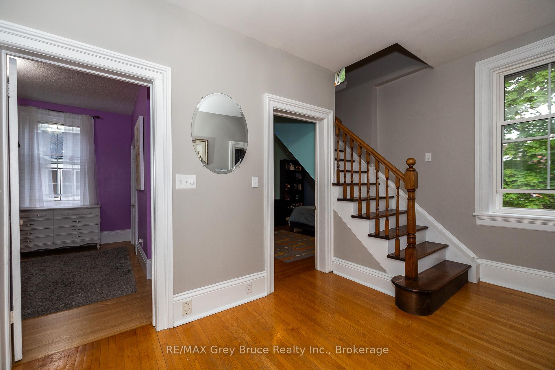 DescriptionHistoric elegance meets modern comfort in this beautifully renovated 1890s red-brick home on one of Owen Sounds most prestigious streets. Set among notable landmarks such as the former U.S. Consulate, Billy Bishop House, and James Harrison House, this property is just a short walk to the Mill Dam, Farmers Market, Library, and the vibrant River District. Inside, youll find rich hardwood floors, soaring ceilings, oversized windows, and a sun-filled living room overlooking the charming front verandah. The custom kitchen features quartz countertops and generous cabinetry, opening to a formal dining room perfect for gatherings. Upstairs offers three spacious bedrooms, a large family bathroom with laundry, and a stunning third-floor primary suite with skylights, a sitting area, and spa-style ensuite. Heated floors in both full bathrooms and the cozy back family room add year-round comfort. Outside, the fully fenced backyard is a private retreat with mature landscaping, waterfalls, pond, stone patio, and expansive deck for entertaining. Additional features include natural gas heating, central air, a separate exterior basement entrance, and a large 52 x 186.6 lot. This one-of-a-kind property combines charm, character, and an unbeatable location in the heart of Owen Sound.Virtual Tour: https://youtu.be/HSHdsM_zd_0Amenities- Central Vacuum