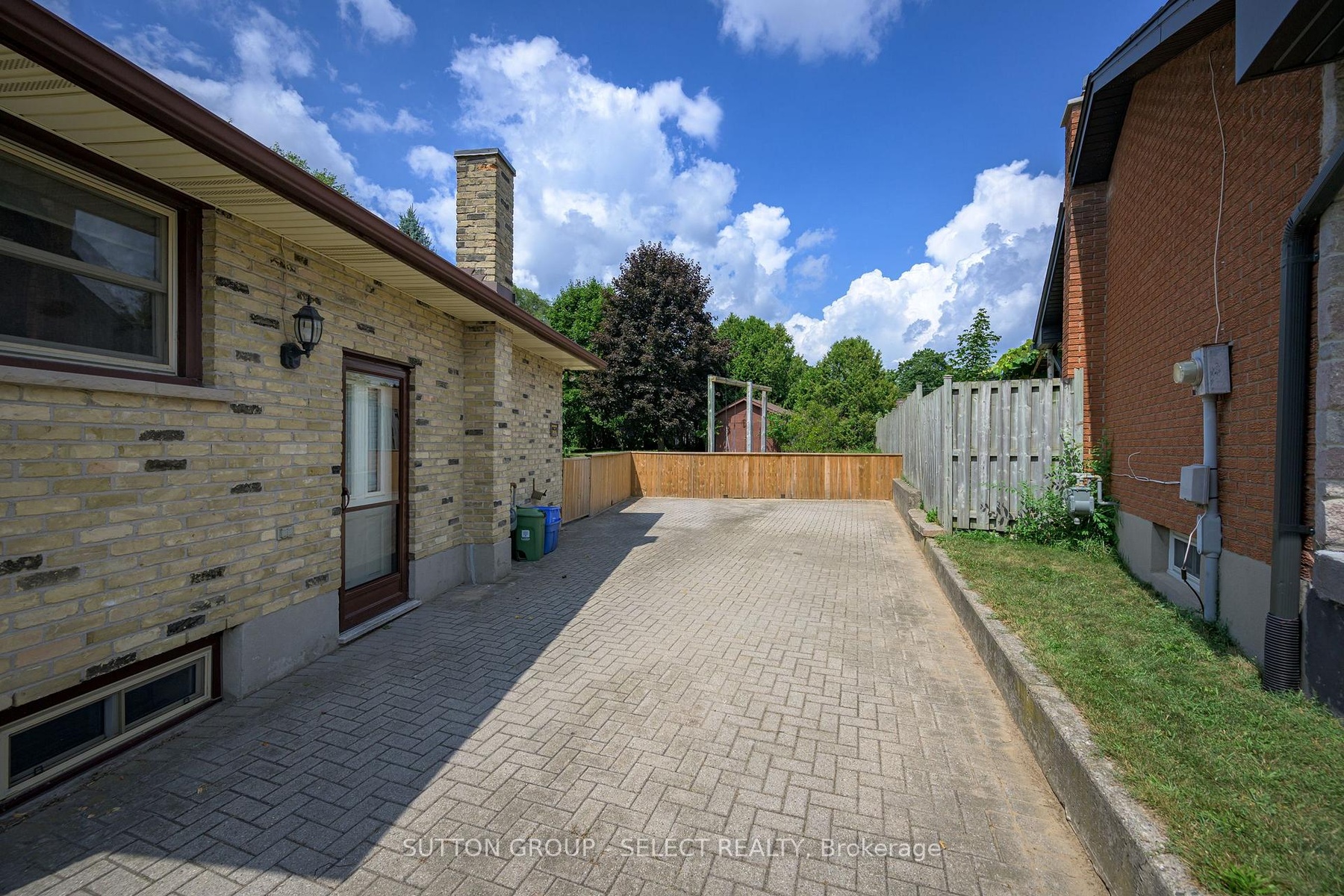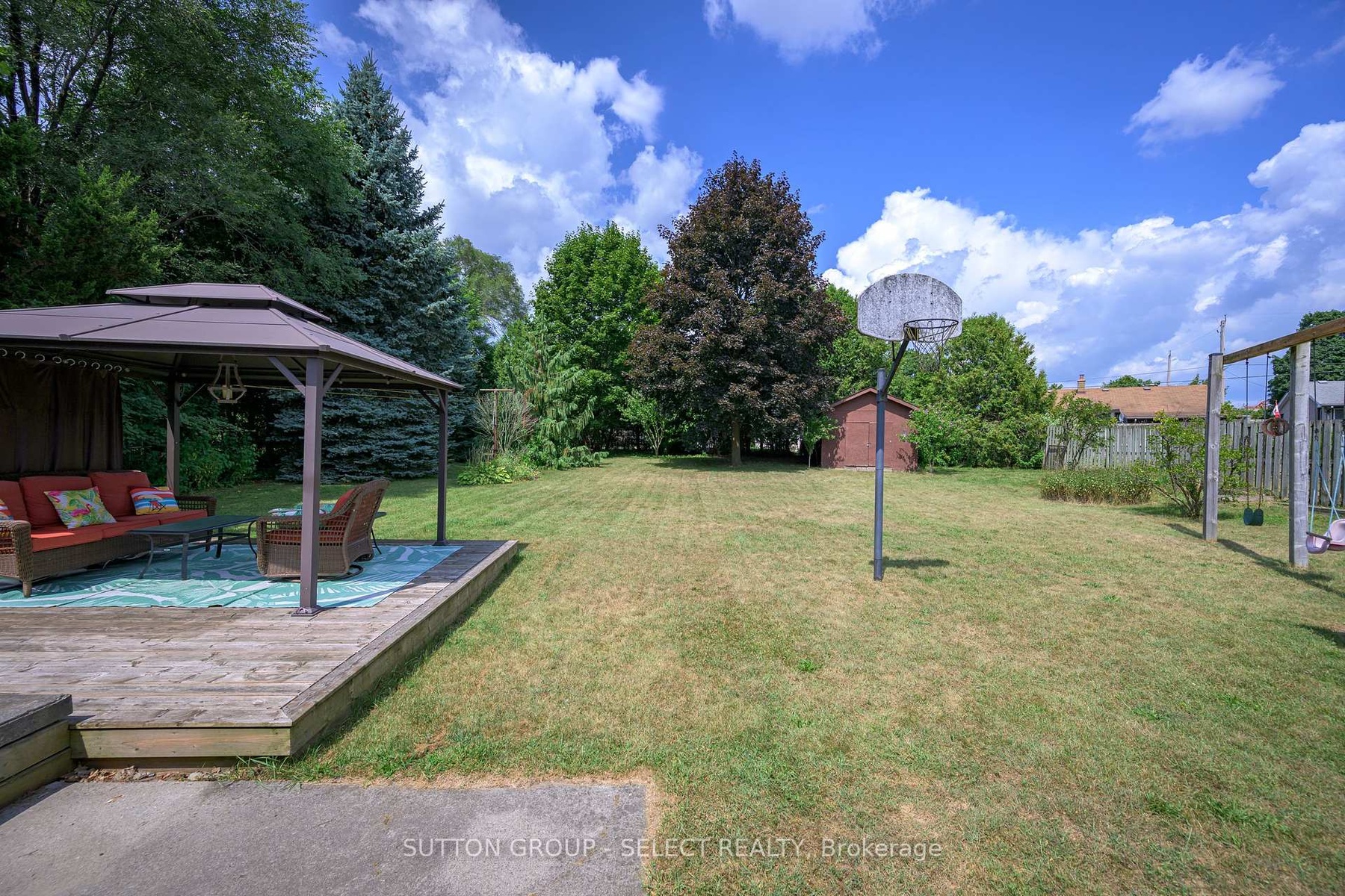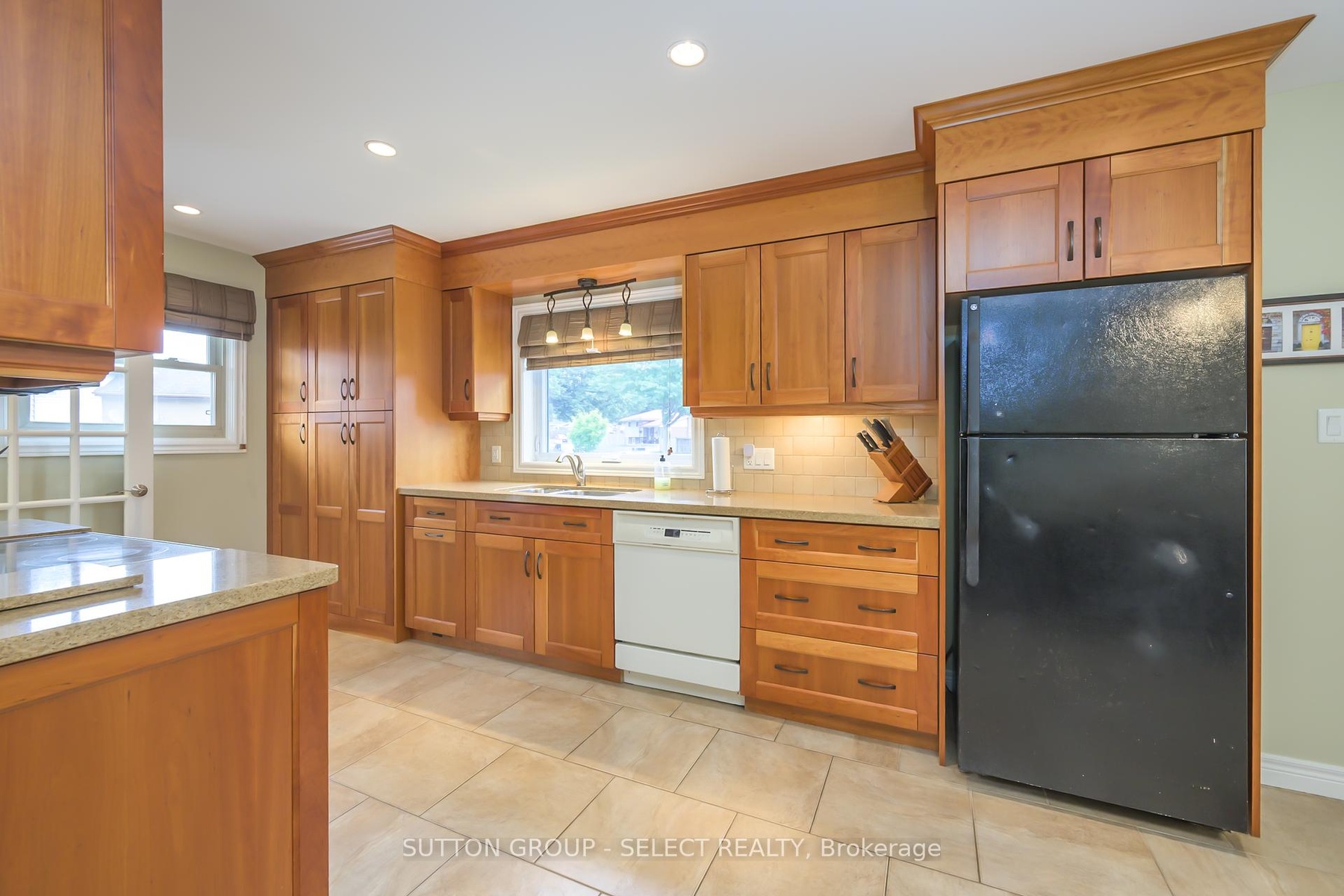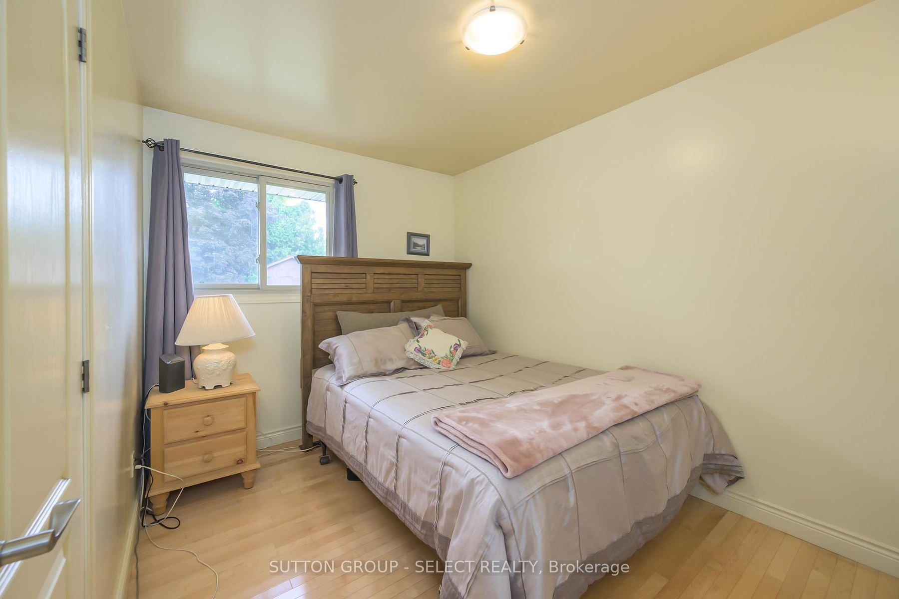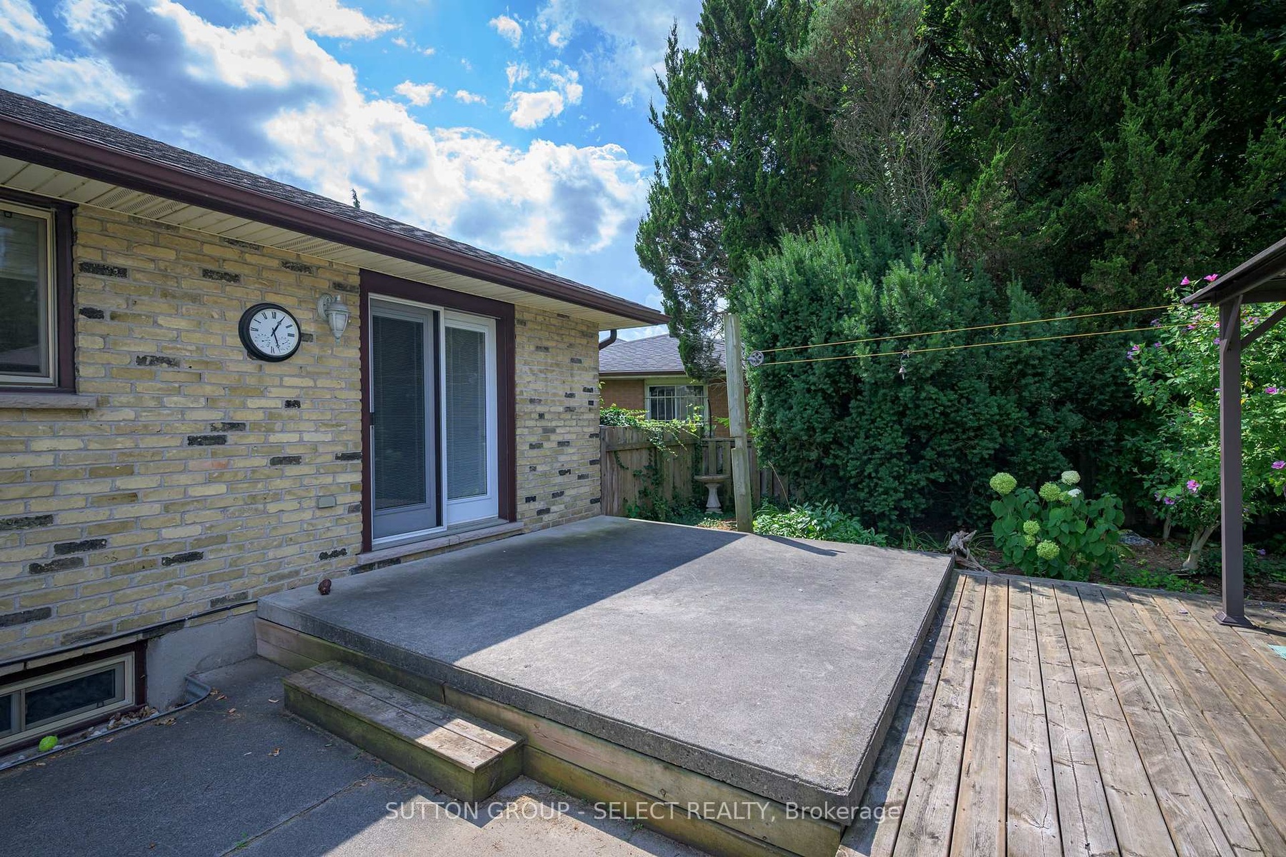 Welcome to this charming bungalow, loved by the same family for 38 years. Perfectly situated on a quiet, tree-lined street, the property boasts an expansive, pie-shaped lot, ample space for a pool, renovations or additional dwelling unit. This residence is a testament to solid construction and meticulous care. The heart of the home is a bright, updated eat-in kitchen (2010) featuring abundant granite countertops and ample storage. The efficient layout makes family meals and entertaining effortless in the adjacent dining area. Your living room features real hardwood floors, a classic bay window, and plenty of room to entertain. The hardwood flooring continue through main floor oversized principal bedroom (was 2 bedrooms, could be returned to) with a private walkout to the backyard, and second large bedroom. A full family bathroom completes the main floor. The convenient side entrance leads directly to the kitchen or the lower level allowing for potential separate living space. The basement offers excellent ceiling height and a flexible layout. Featuring a large family room and two bonus rooms (previously been used as bedrooms - no egress). With a large laundry room and plenty of storage, the level is ready to adapt to your needs. The incredible yard is fully fenced and landscaped, featuring a concrete patio, a deck, large shed and room for pool, additional dwelling unit, garage, or who knows what! The private drive of interlocking brick easily accommodates 5 cars. **Peace of mind comes with knowing the big-ticket items have been updated: * Roof: Fibreglass shingles (2019) * Attic Insulation: (2009) * Windows: Most windows (2003), kitchen window (2010) * Furnace: (2008) * Water Heater: Owned (2022)This home is more than a house; it's the foundation for your next chapter.