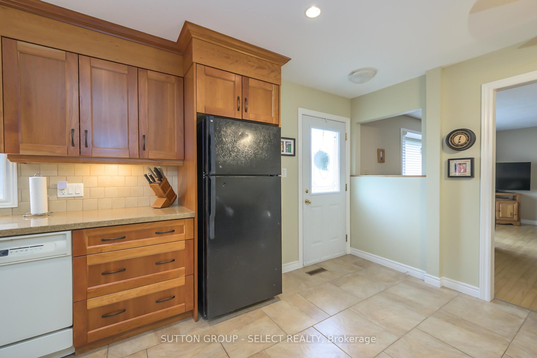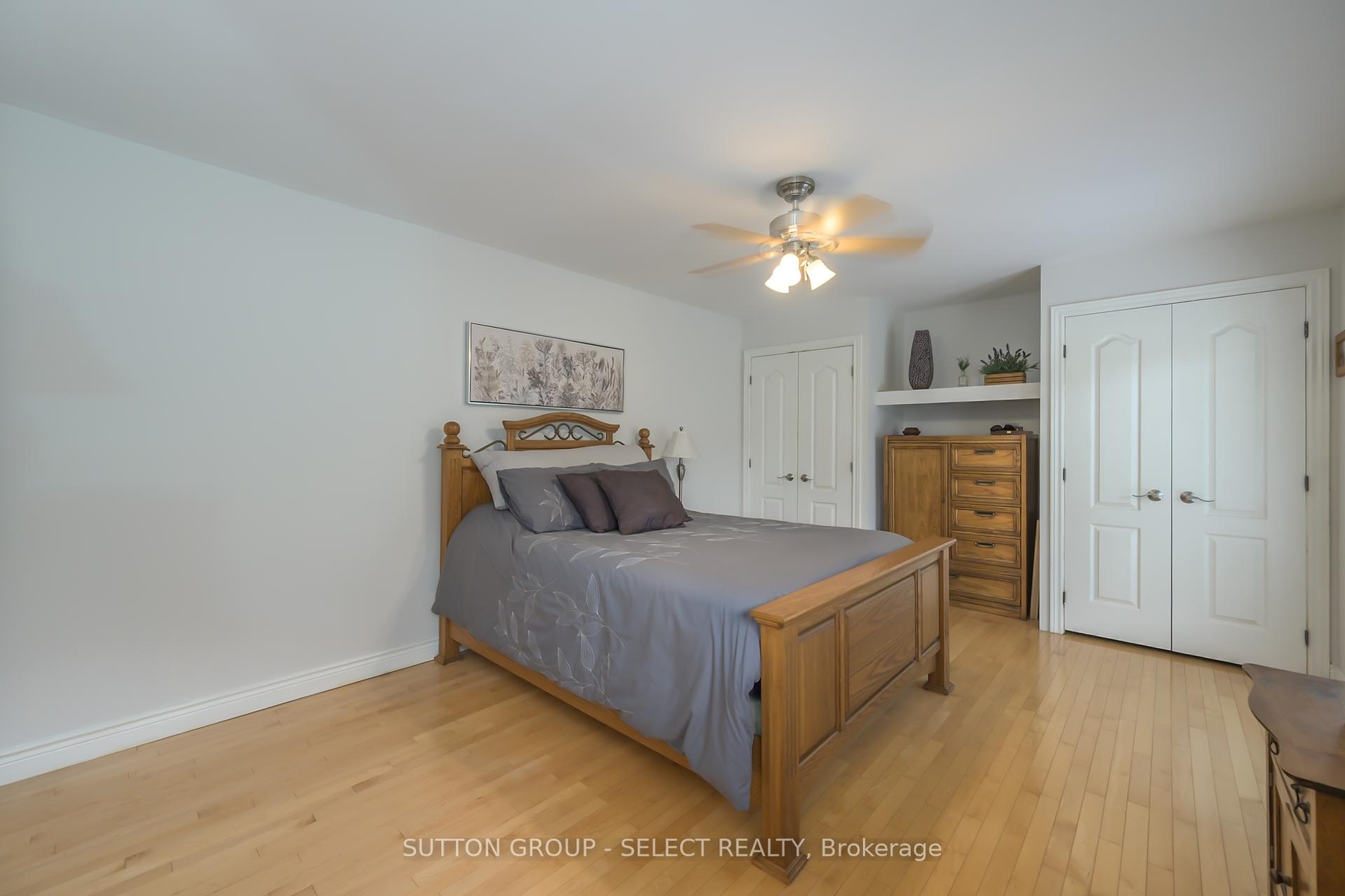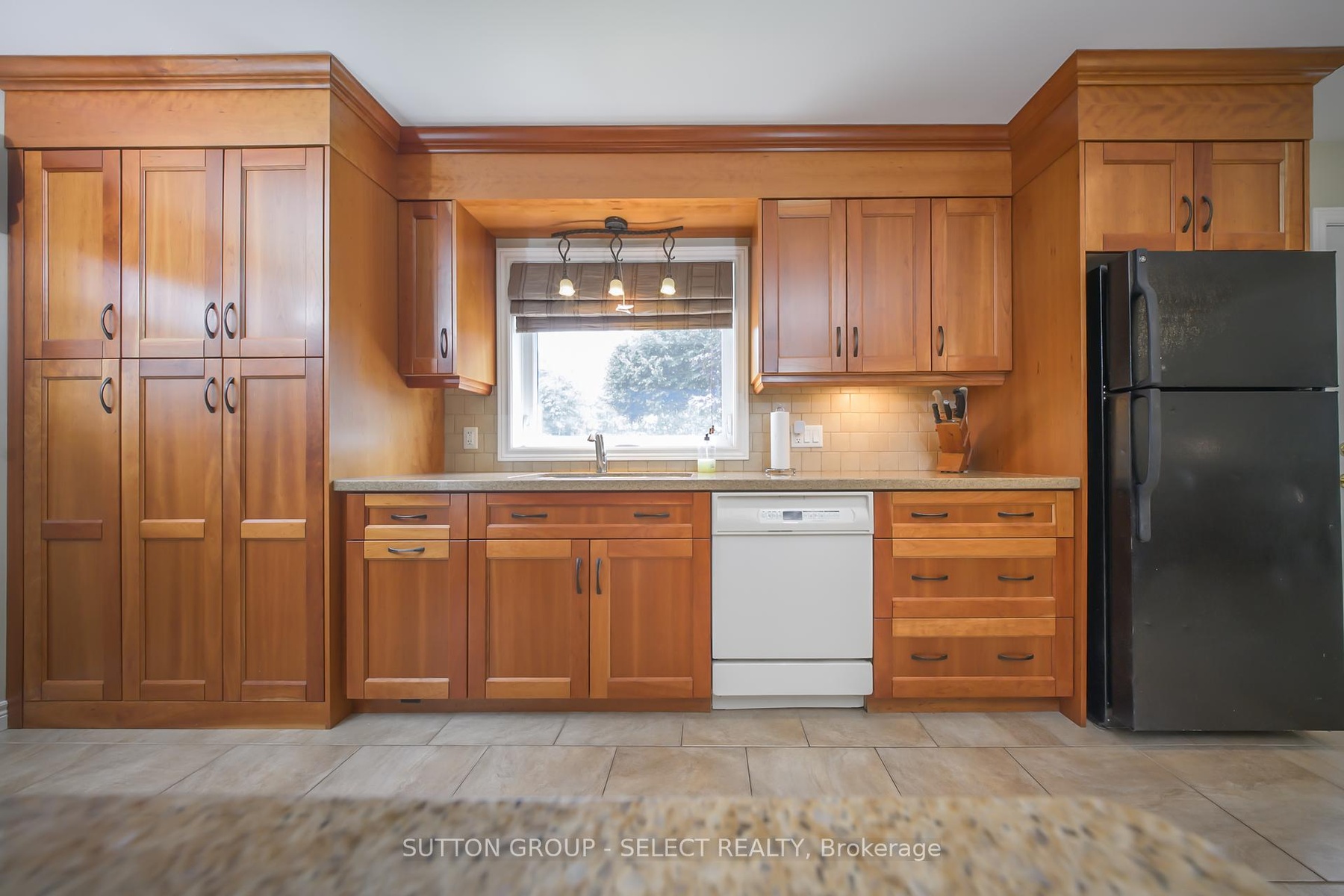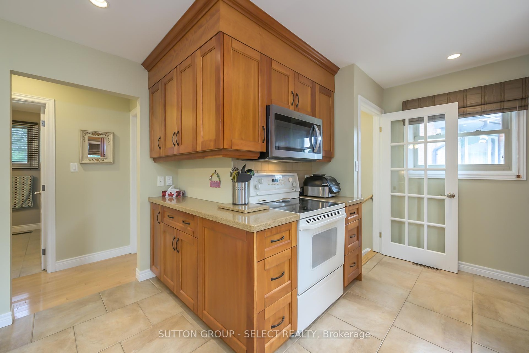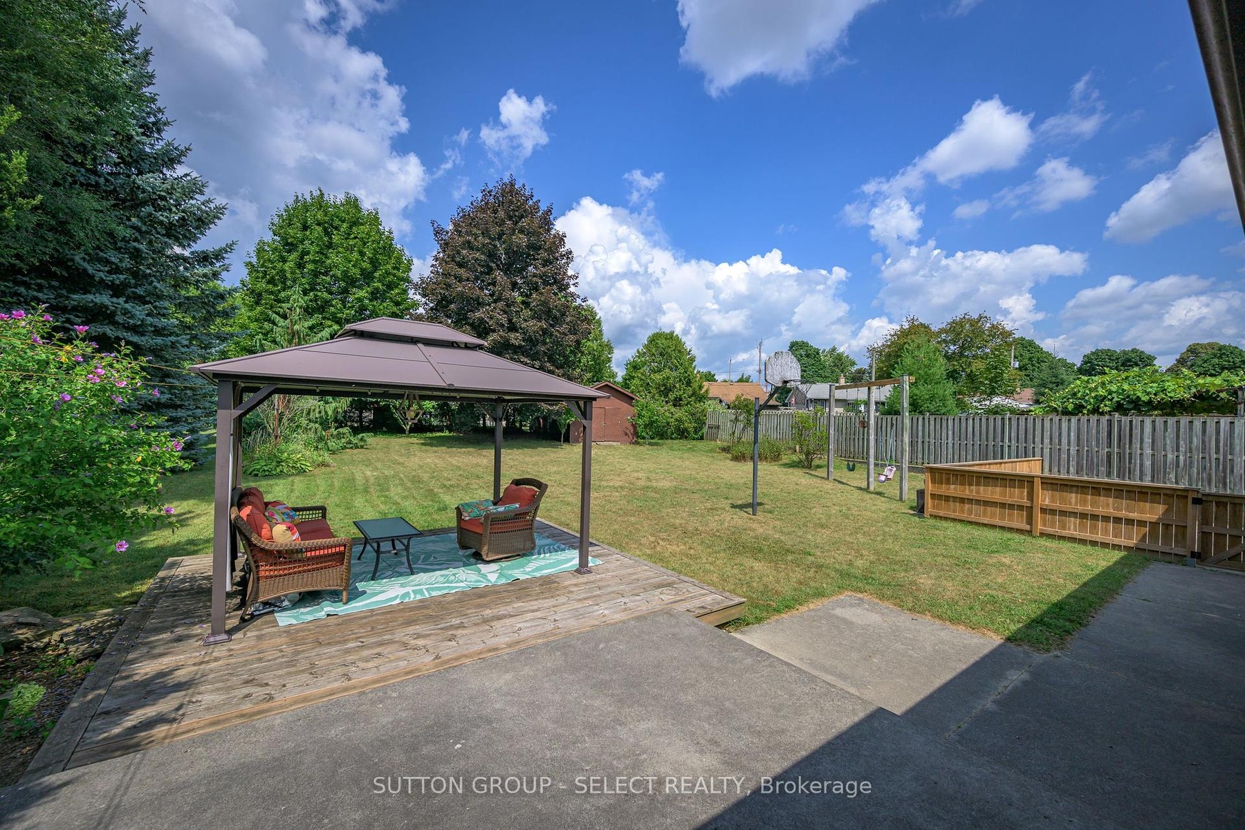 Welcome to this charming bungalow, loved by the same family for 38 years. Perfectly situated on a quiet, tree-lined street, the property boasts an expansive, pie-shaped lot, ample space for a pool, renovations or additional dwelling unit. This residence is a testament to solid construction and meticulous care. The heart of the home is a bright, updated eat-in kitchen (2010) featuring abundant granite countertops and ample storage. The efficient layout makes family meals and entertaining effortless in the adjacent dining area. Your living room features real hardwood floors, a classic bay window, and plenty of room to entertain. The hardwood flooring continue through main floor oversized principal bedroom (was 2 bedrooms, could be returned to) with a private walkout to the backyard, and second large bedroom. A full family bathroom completes the main floor. The convenient side entrance leads directly to the kitchen or the lower level allowing for potential separate living space. The basement offers excellent ceiling height and a flexible layout. Featuring a large family room and two bonus rooms (previously been used as bedrooms - no egress). With a large laundry room and plenty of storage, the level is ready to adapt to your needs. The incredible yard is fully fenced and landscaped, featuring a concrete patio, a deck, large shed and room for pool, additional dwelling unit, garage, or who knows what! The private drive of interlocking brick easily accommodates 5 cars. **Peace of mind comes with knowing the big-ticket items have been updated: * Roof: Fibreglass shingles (2019) * Attic Insulation: (2009) * Windows: Most windows (2003), kitchen window (2010) * Furnace: (2008) * Water Heater: Owned (2022)This home is more than a house; it's the foundation for your next chapter.