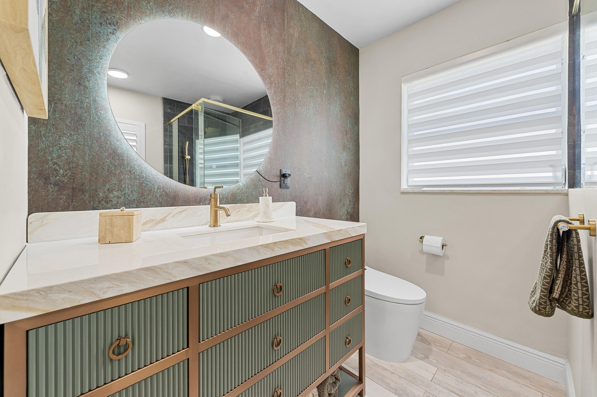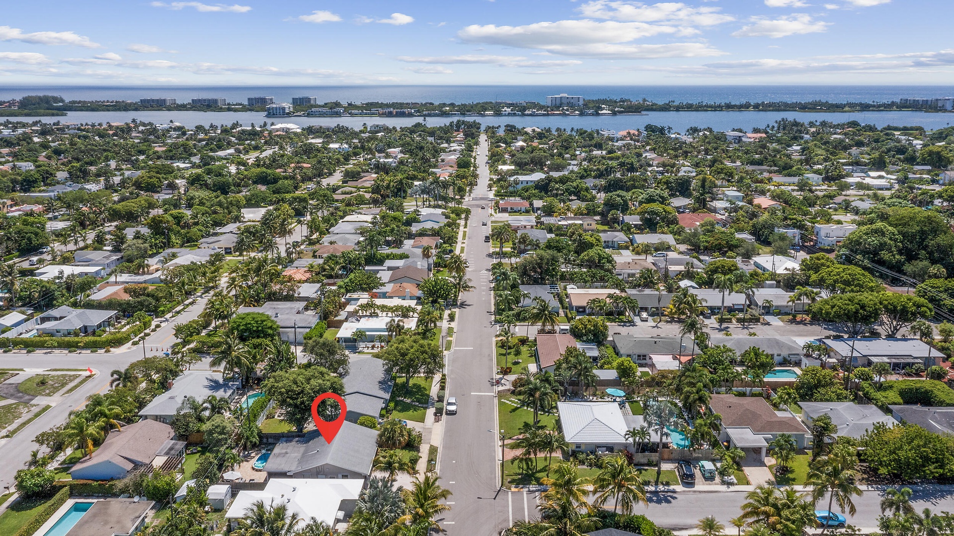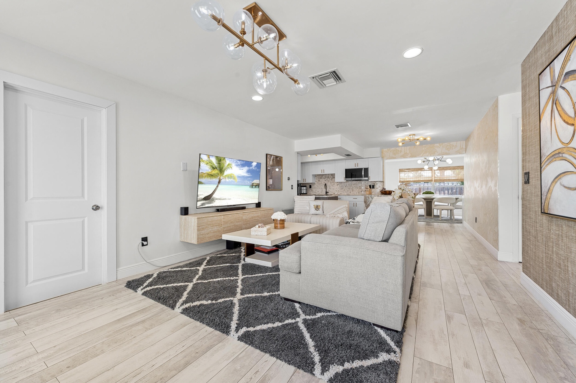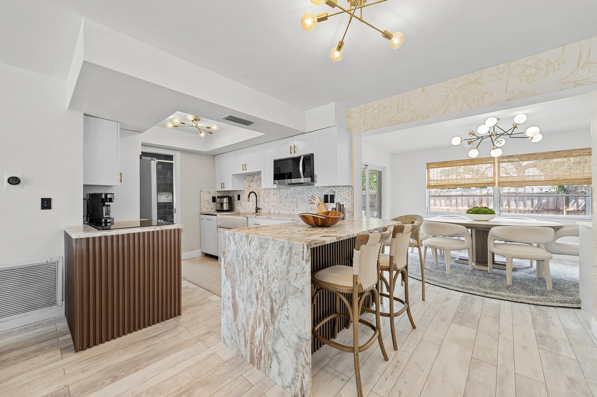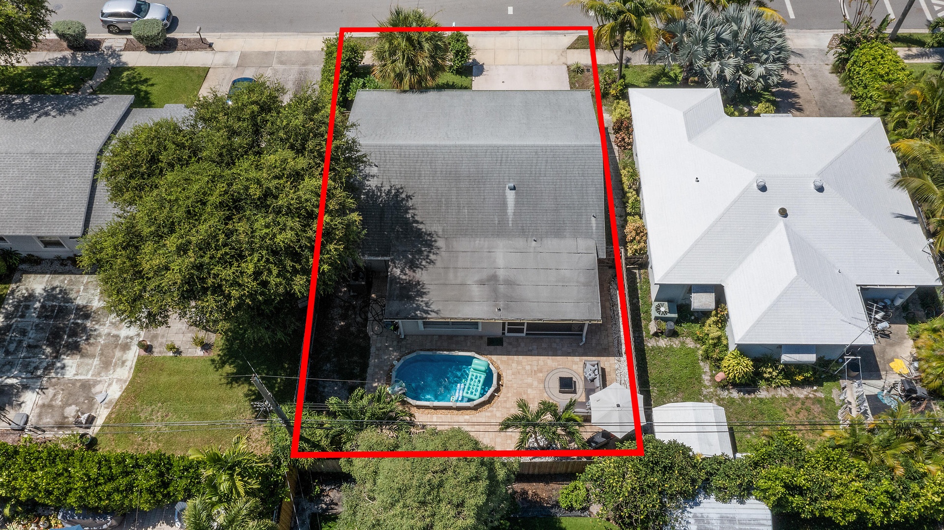 Modern coastal living in coveted College Park Historical District! Renovated Sunlit 2BR with open layout, waterproof LVP, and impact-rated windows/doors plus shutters. Sleek kitchen with natural stone counters, stainless appliances, and breakfast bar; dining area with custom bar and wine cooler. Bedrooms feature lit California closets and roller shades. Step out to a 160 sq ft covered lanai with electric and fan, a semi-inground vinyl pool, and a paved patio for effortless entertaining. Prime location, walking distance to the Intracoastal, minutes to the beach, parks and downtown. No HOA, Airbnb-friendly. Roof 2016, AC 2022, WH 2018. Furniture Negotiable