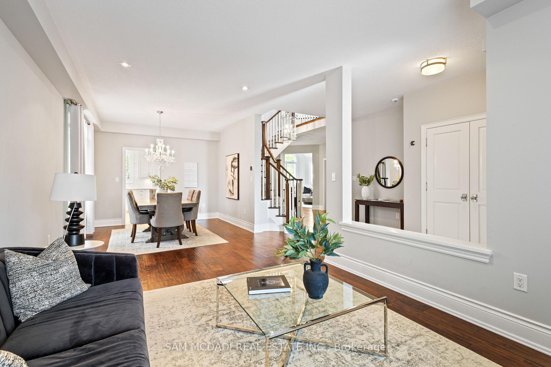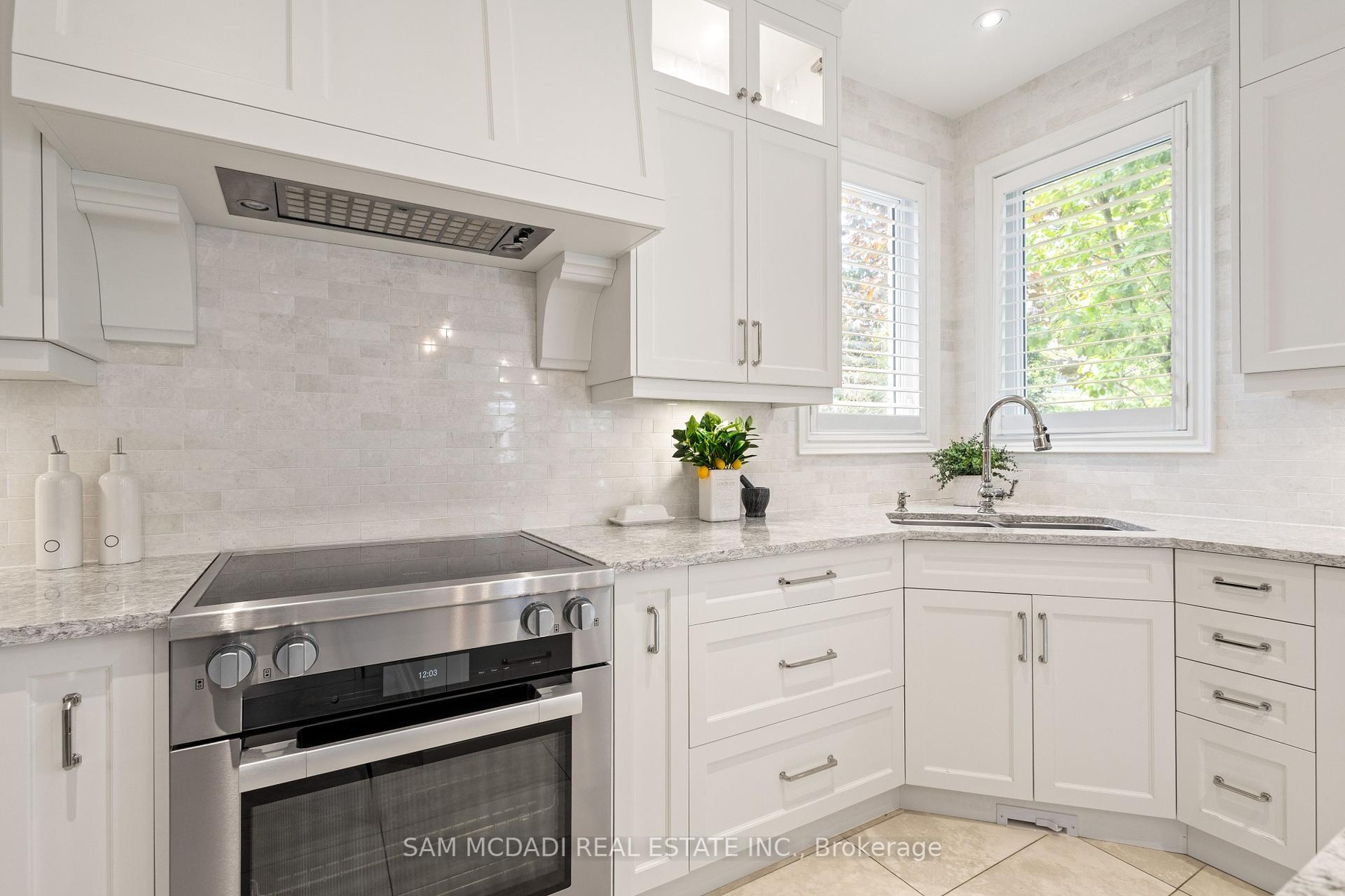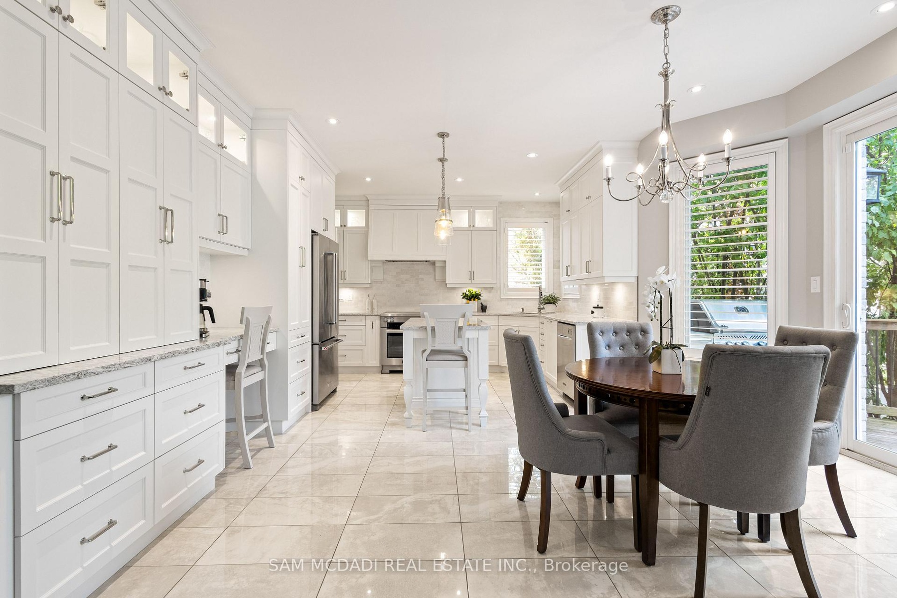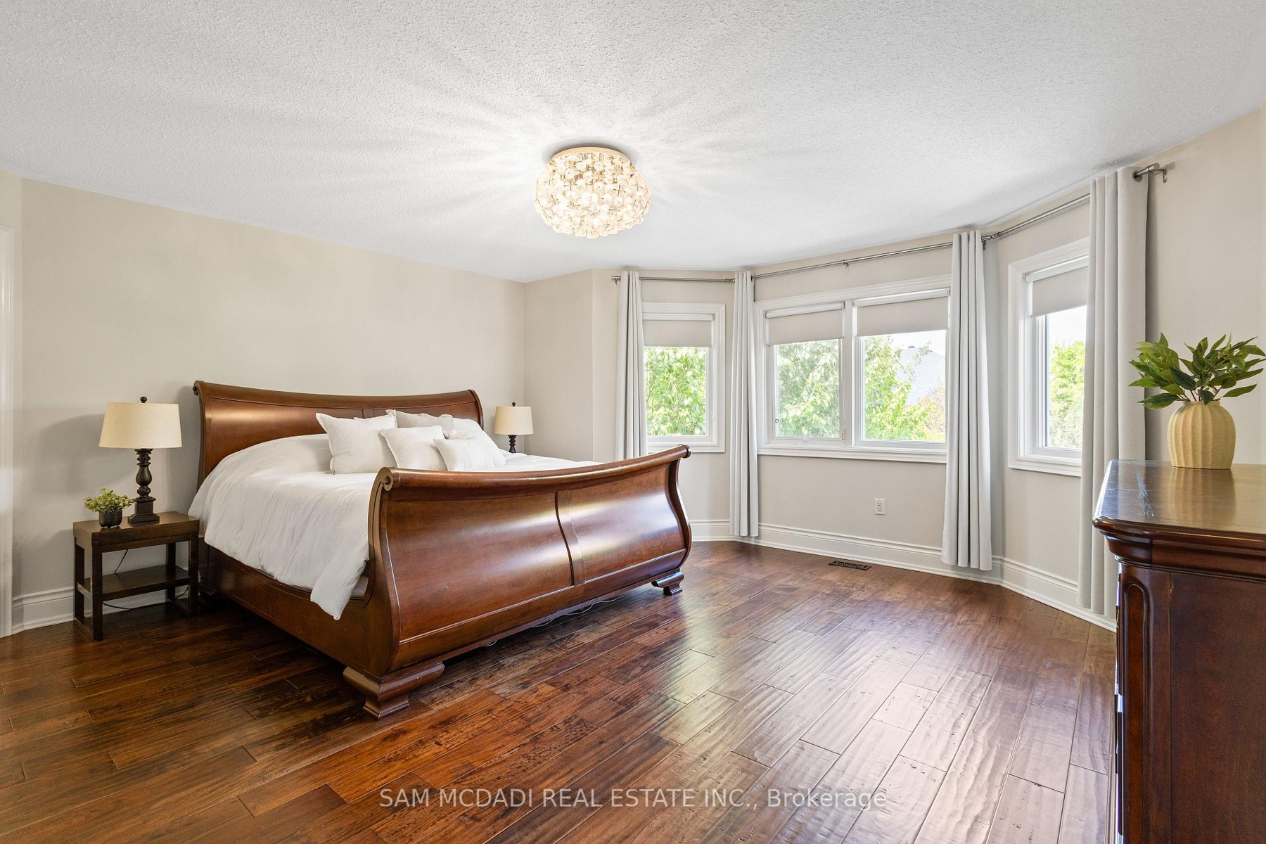 Nestled on a quiet crescent in Burlington's established Millcroft community, this beautifully updated 4+1 bedroom, 4-bathroom home offers over 3,800 sq ft of stylish, functional living space tailored for modern family life and effortless entertaining. From the moment you enter, thoughtful upgrades shine, LED pot lights, oversized windows, and walnut-engineered hardwood floors set a warm, sophisticated tone. The standout family room impresses with its vaulted ceiling, gas fireplace, and arched windows that flood the space with natural light. The open-concept kitchen and breakfast area walk out to the backyard deck, seamlessly blending indoor comfort with outdoor living. Designed with both beauty and performance in mind, the kitchen features Cambria quartz countertops, a $14,000+ Miele induction range, KitchenAid appliances, and a built-in microwave neatly integrated into the island. Upstairs, the serene primary suite invites relaxation with a spa-like ensuite featuring a freestanding slipper tub, frameless glass shower, dual vanities, and a heated towel rack. Three additional bedrooms and a full bathroom complete the upper level with ample space and comfort. The finished basement extends the home's versatility with a bright recreation room, fifth bedroom with walk-in closet, full bathroom, and generous storage. Step outside to your own private backyard resort. Redesigned in 2023, the outdoor space boasts a custom $160K upgraded inground pool, multi-level lounging areas, and a low-maintenance vinyl fencing for full privacy. Landscape lighting (2024) adds a touch of evening ambiance, while Wi-Fi-enabled irrigation and pool controls put smart convenience at your fingertips. Superb location just minutes to top-rated schools, Millcroft Golf Club, parks, shopping, dining, with easy access to Highways 407 & QEW and transit via Appleby GO Station.
