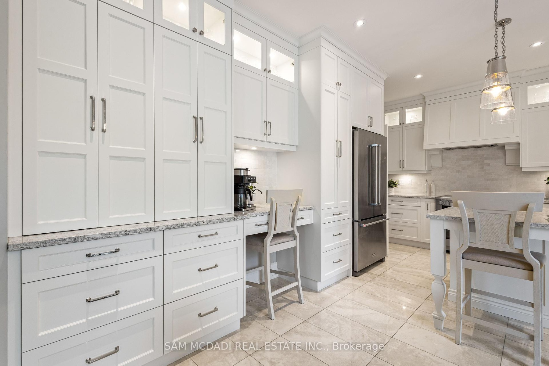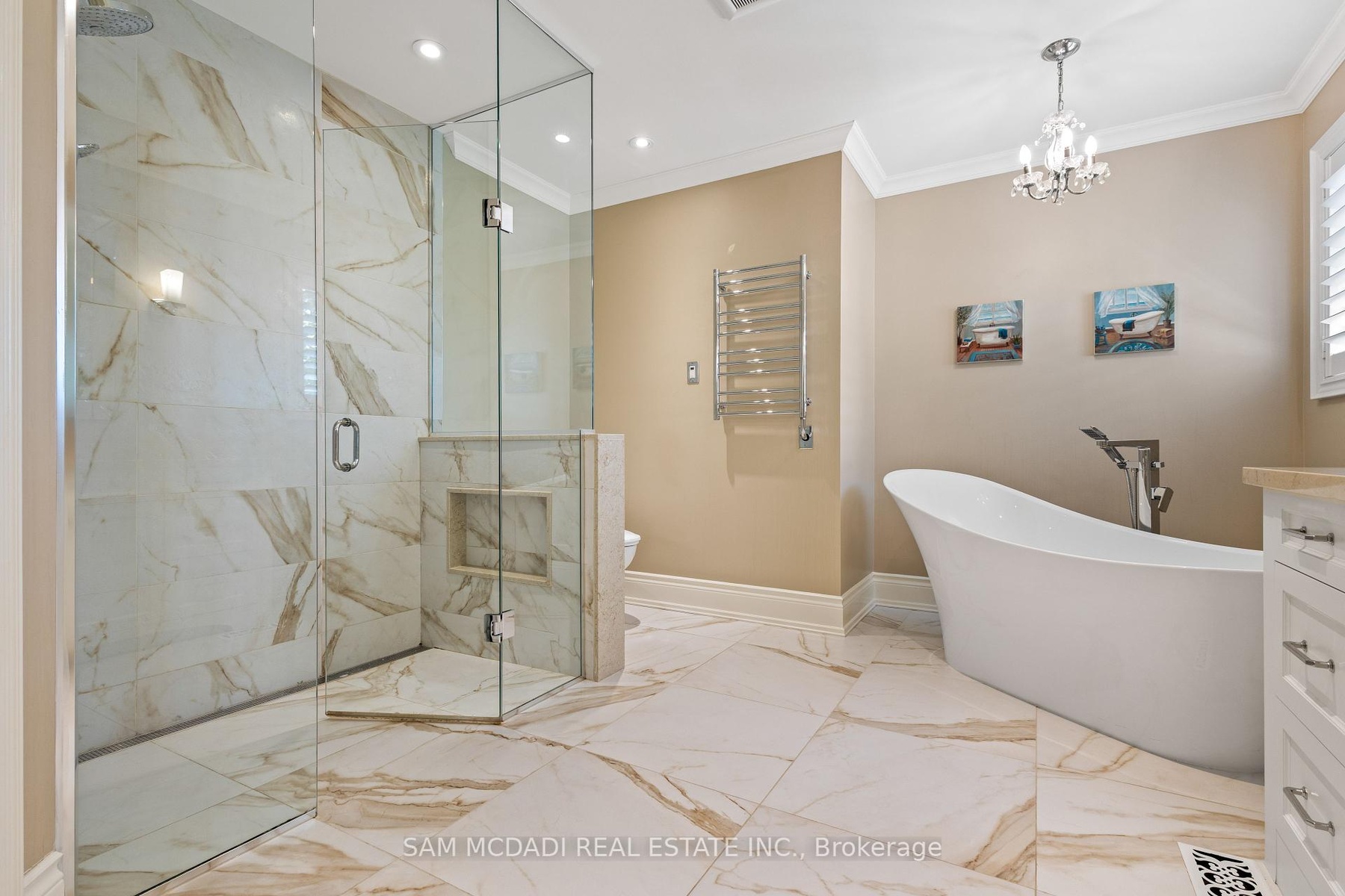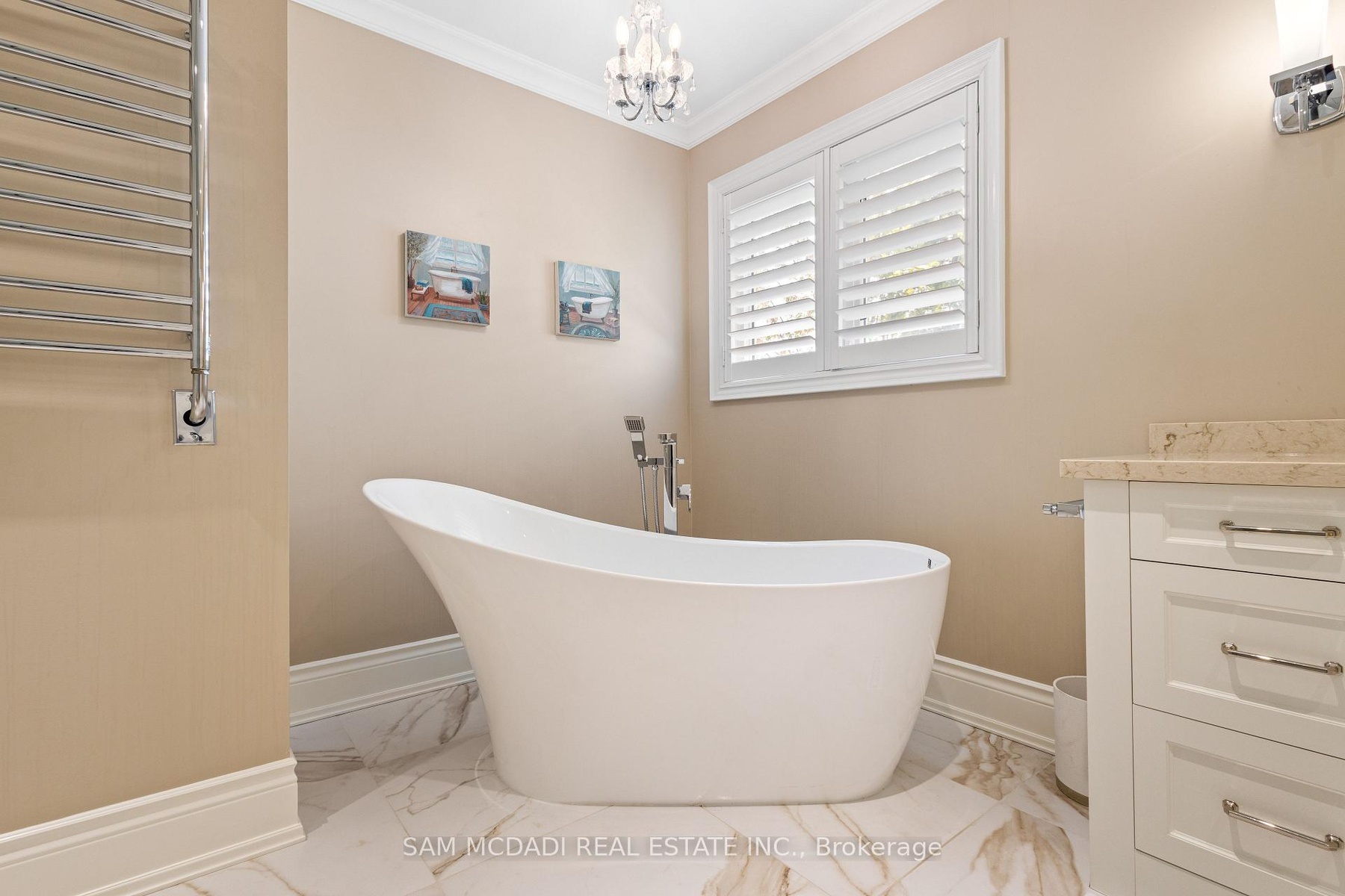 Nestled on a quiet crescent in Burlington's established Millcroft community, this beautifully updated 4+1 bedroom, 4-bathroom home offers over 3,800 sq ft of stylish, functional living space tailored for modern family life and effortless entertaining. From the moment you enter, thoughtful upgrades shine, LED pot lights, oversized windows, and walnut-engineered hardwood floors set a warm, sophisticated tone. The standout family room impresses with its vaulted ceiling, gas fireplace, and arched windows that flood the space with natural light. The open-concept kitchen and breakfast area walk out to the backyard deck, seamlessly blending indoor comfort with outdoor living. Designed with both beauty and performance in mind, the kitchen features Cambria quartz countertops, a $14,000+ Miele induction range, KitchenAid appliances, and a built-in microwave neatly integrated into the island. Upstairs, the serene primary suite invites relaxation with a spa-like ensuite featuring a freestanding slipper tub, frameless glass shower, dual vanities, and a heated towel rack. Three additional bedrooms and a full bathroom complete the upper level with ample space and comfort. The finished basement extends the home's versatility with a bright recreation room, fifth bedroom with walk-in closet, full bathroom, and generous storage. Step outside to your own private backyard resort. Redesigned in 2023, the outdoor space boasts a custom $160K upgraded inground pool, multi-level lounging areas, and a low-maintenance vinyl fencing for full privacy. Landscape lighting (2024) adds a touch of evening ambiance, while Wi-Fi-enabled irrigation and pool controls put smart convenience at your fingertips. Superb location just minutes to top-rated schools, Millcroft Golf Club, parks, shopping, dining, with easy access to Highways 407 & QEW and transit via Appleby GO Station.