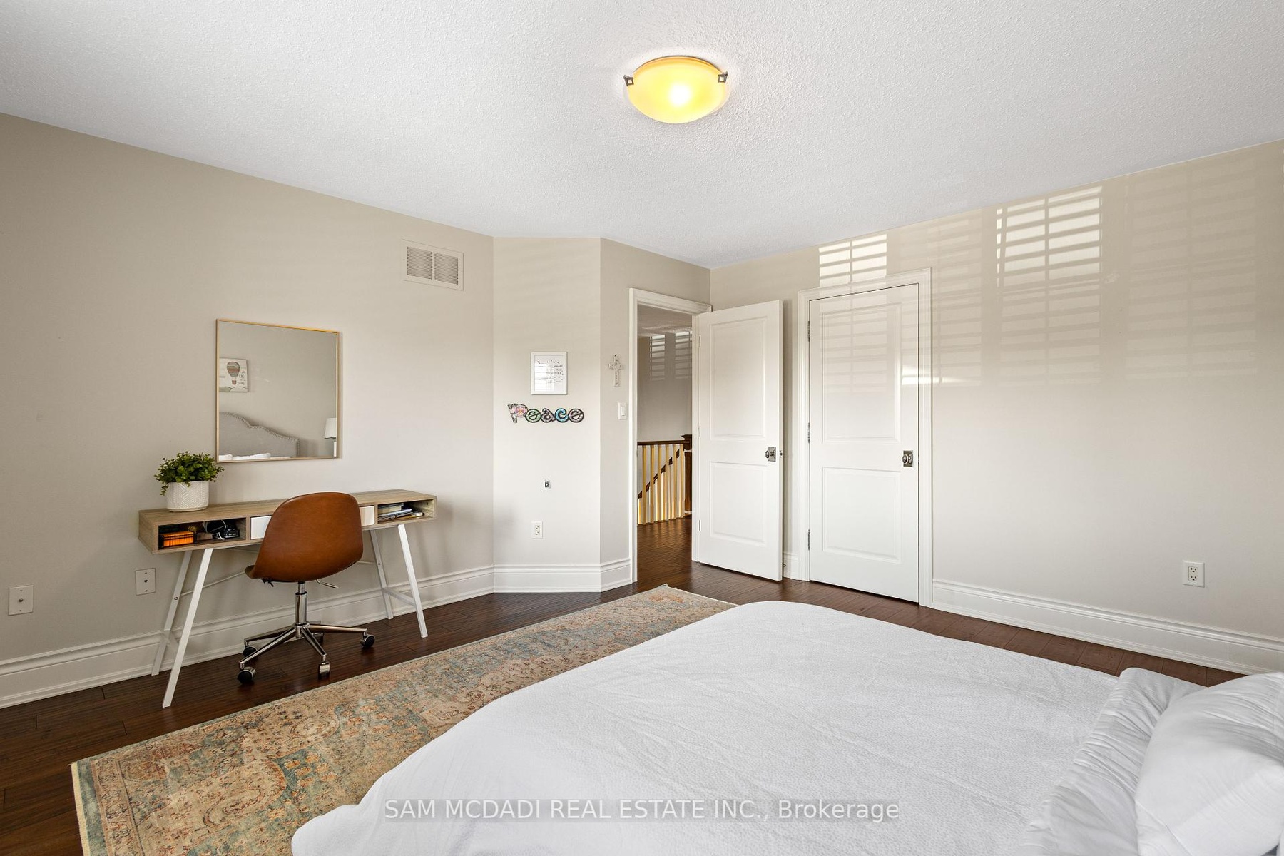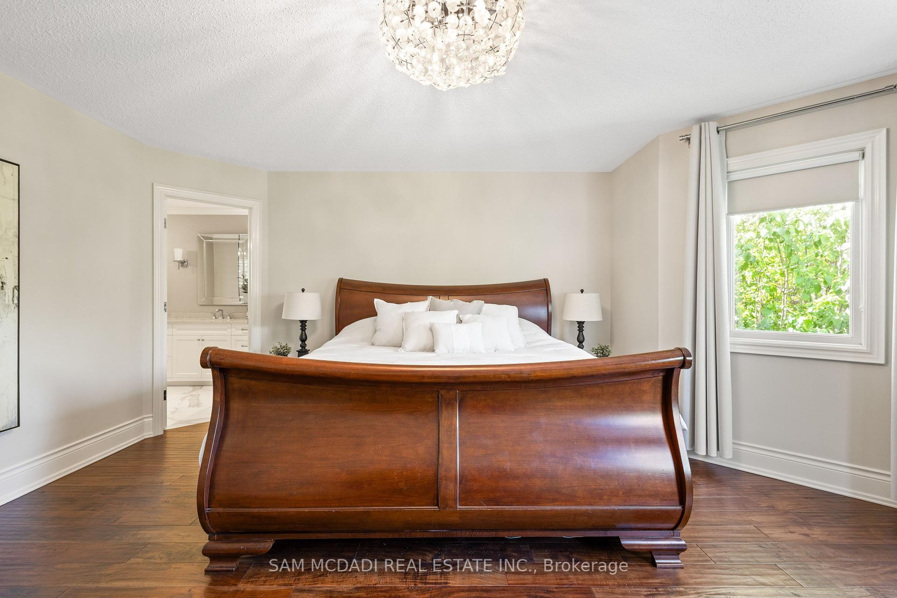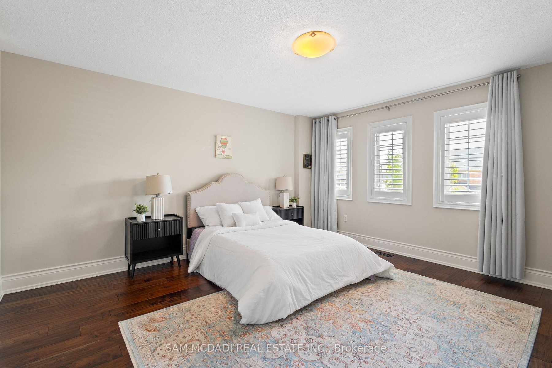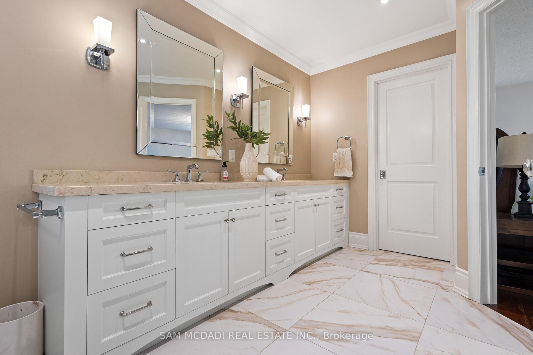 Nestled on a quiet crescent in Burlington's established Millcroft community, this beautifully updated 4+1 bedroom, 4-bathroom home offers over 3,800 sq ft of stylish, functional living space tailored for modern family life and effortless entertaining. From the moment you enter, thoughtful upgrades shine, LED pot lights, oversized windows, and walnut-engineered hardwood floors set a warm, sophisticated tone. The standout family room impresses with its vaulted ceiling, gas fireplace, and arched windows that flood the space with natural light. The open-concept kitchen and breakfast area walk out to the backyard deck, seamlessly blending indoor comfort with outdoor living. Designed with both beauty and performance in mind, the kitchen features Cambria quartz countertops, a $14,000+ Miele induction range, KitchenAid appliances, and a built-in microwave neatly integrated into the island. Upstairs, the serene primary suite invites relaxation with a spa-like ensuite featuring a freestanding slipper tub, frameless glass shower, dual vanities, and a heated towel rack. Three additional bedrooms and a full bathroom complete the upper level with ample space and comfort. The finished basement extends the home's versatility with a bright recreation room, fifth bedroom with walk-in closet, full bathroom, and generous storage. Step outside to your own private backyard resort. Redesigned in 2023, the outdoor space boasts a custom $160K upgraded inground pool, multi-level lounging areas, and a low-maintenance vinyl fencing for full privacy. Landscape lighting (2024) adds a touch of evening ambiance, while Wi-Fi-enabled irrigation and pool controls put smart convenience at your fingertips. Superb location just minutes to top-rated schools, Millcroft Golf Club, parks, shopping, dining, with easy access to Highways 407 & QEW and transit via Appleby GO Station.