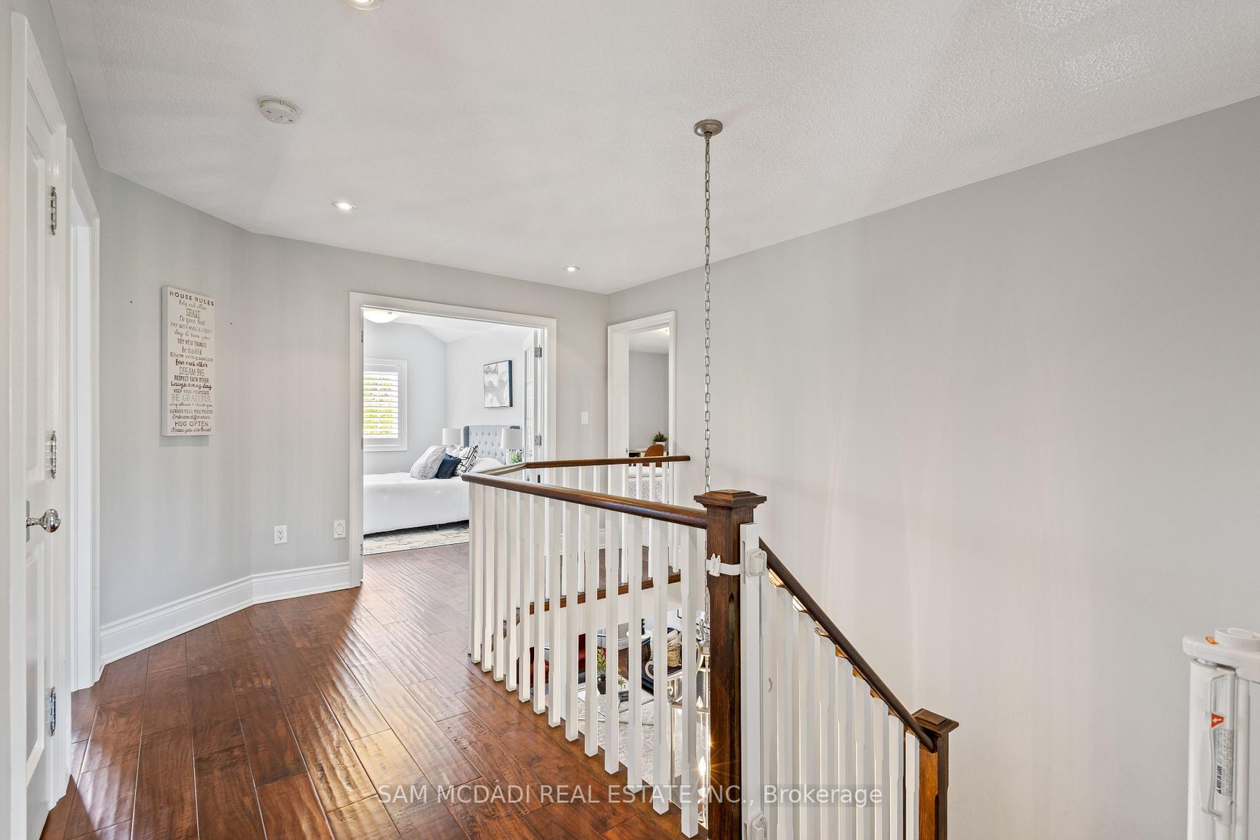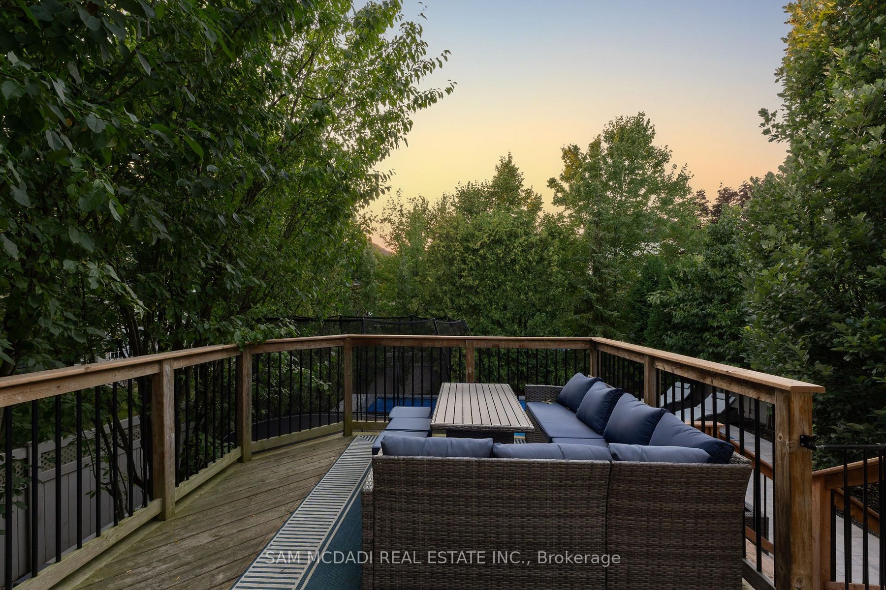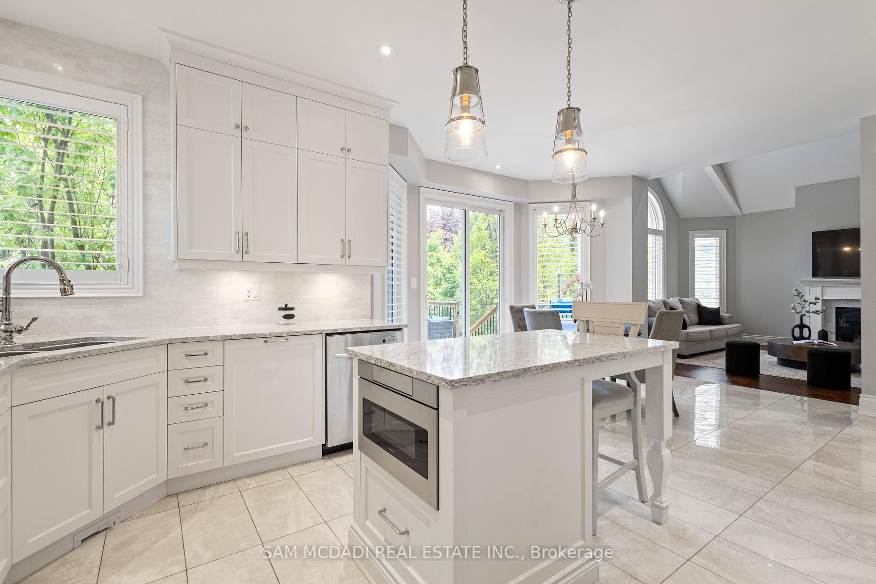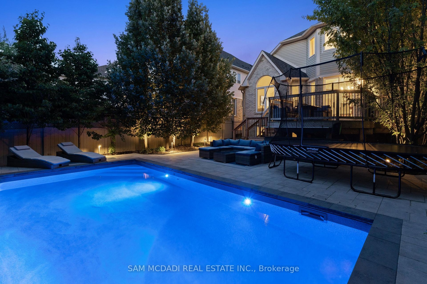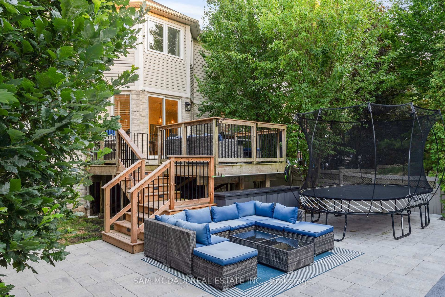 DescriptionNestled on a quiet crescent in Burlington's established Millcroft community, this beautifully updated 4+1 bedroom, 4-bathroom home offers over 3,800 sq ft of stylish, functional living space tailored for modern family life and effortless entertaining. From the moment you enter, thoughtful upgrades shine, LED pot lights, oversized windows, and walnut-engineered hardwood floors set a warm, sophisticated tone. The standout family room impresses with its vaulted ceiling, gas fireplace, and arched windows that flood the space with natural light. The open-concept kitchen and breakfast area walk out to the backyard deck, seamlessly blending indoor comfort with outdoor living. Designed with both beauty and performance in mind, the kitchen features Cambria quartz countertops, a $14,000+ Miele induction range, KitchenAid appliances, and a built-in microwave neatly integrated into the island. Upstairs, the serene primary suite invites relaxation with a spa-like ensuite featuring a freestanding slipper tub, frameless glass shower, dual vanities, and a heated towel rack. Three additional bedrooms and a full bathroom complete the upper level with ample space and comfort. The finished basement extends the home's versatility with a bright recreation room, fifth bedroom with walk-in closet, full bathroom, and generous storage. Step outside to your own private backyard resort. Redesigned in 2023, the outdoor space boasts a custom $160K upgraded inground pool, multi-level lounging areas, and a low-maintenance vinyl fencing for full privacy. Landscape lighting (2024) adds a touch of evening ambiance, while Wi-Fi-enabled irrigation and pool controls put smart convenience at your fingertips. Superb location just minutes to top-rated schools, Millcroft Golf Club, parks, shopping, dining, with easy access to Highways 407 & QEW and transit via Appleby GO Station.Amenities- Auto Garage Door Remote