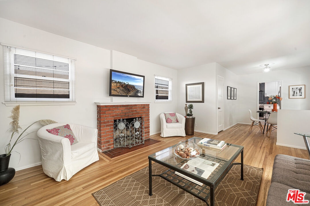 Relax in this beautifully renovated 3-bedroom 1-bath Venice home! The patio area fills with golden light during afternoons, perfect for dining alfresco with friends. Large windows in the living room let in lots of natural light; wood floors and a brick fireplace add to the warmth and charm of the space. The remodeled kitchen features updated cabinets, countertops, backsplash, tiled floor, and stainless steel appliances. There is a separate laundry room adjacent to the kitchen with a stackable washer/dryer, utility sink, and additional storage cabinets. Mini-splits and ceiling fans in each of the bedrooms provide excellent temperature control! The detached 1-car garage has an epoxy floor with an expansive storage loft. Enclosed backyard with storage space and a very hearty lemon tree. The home is centrally located, and California's best restaurants, cafes, and beaches are all just a short distance away.