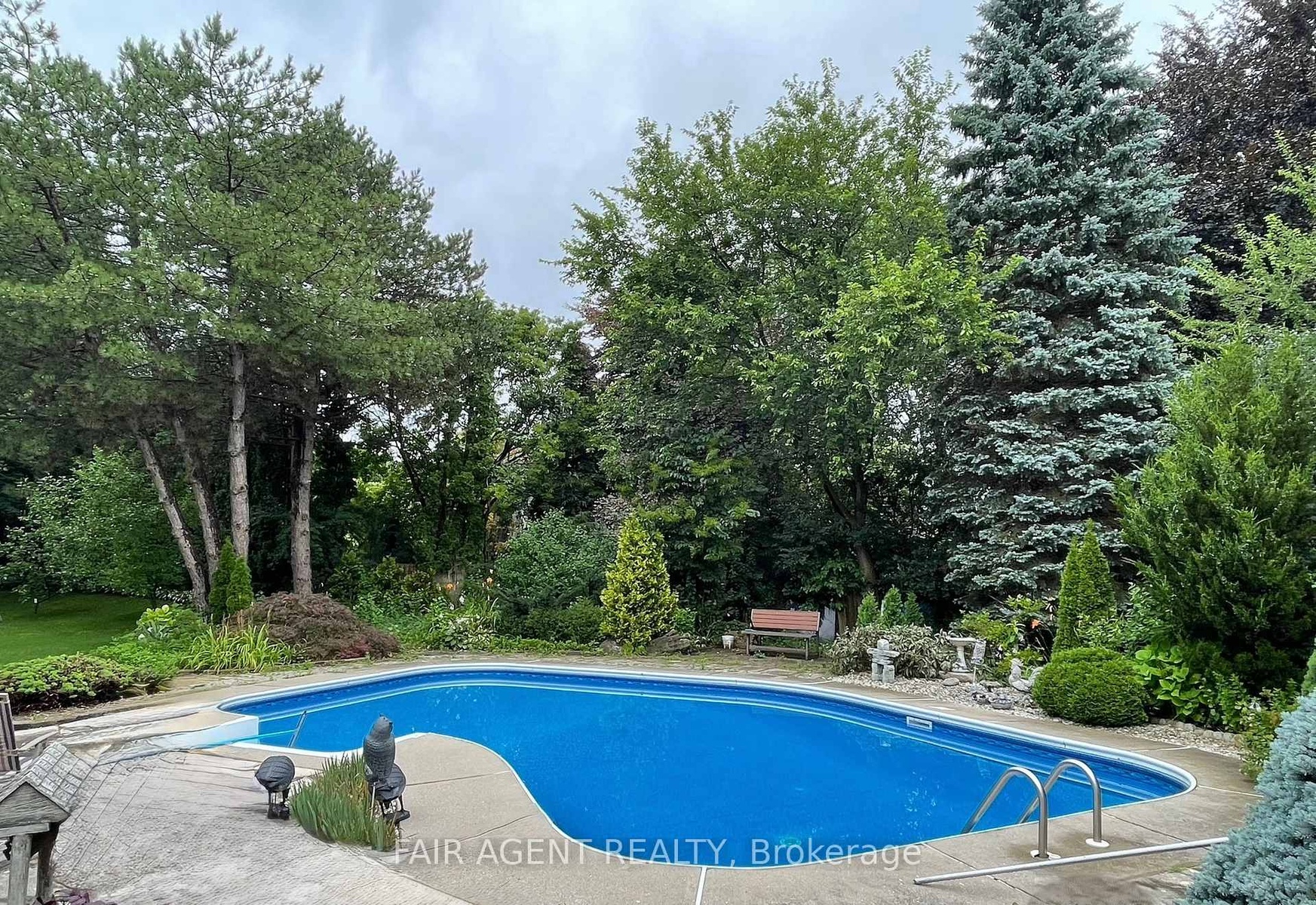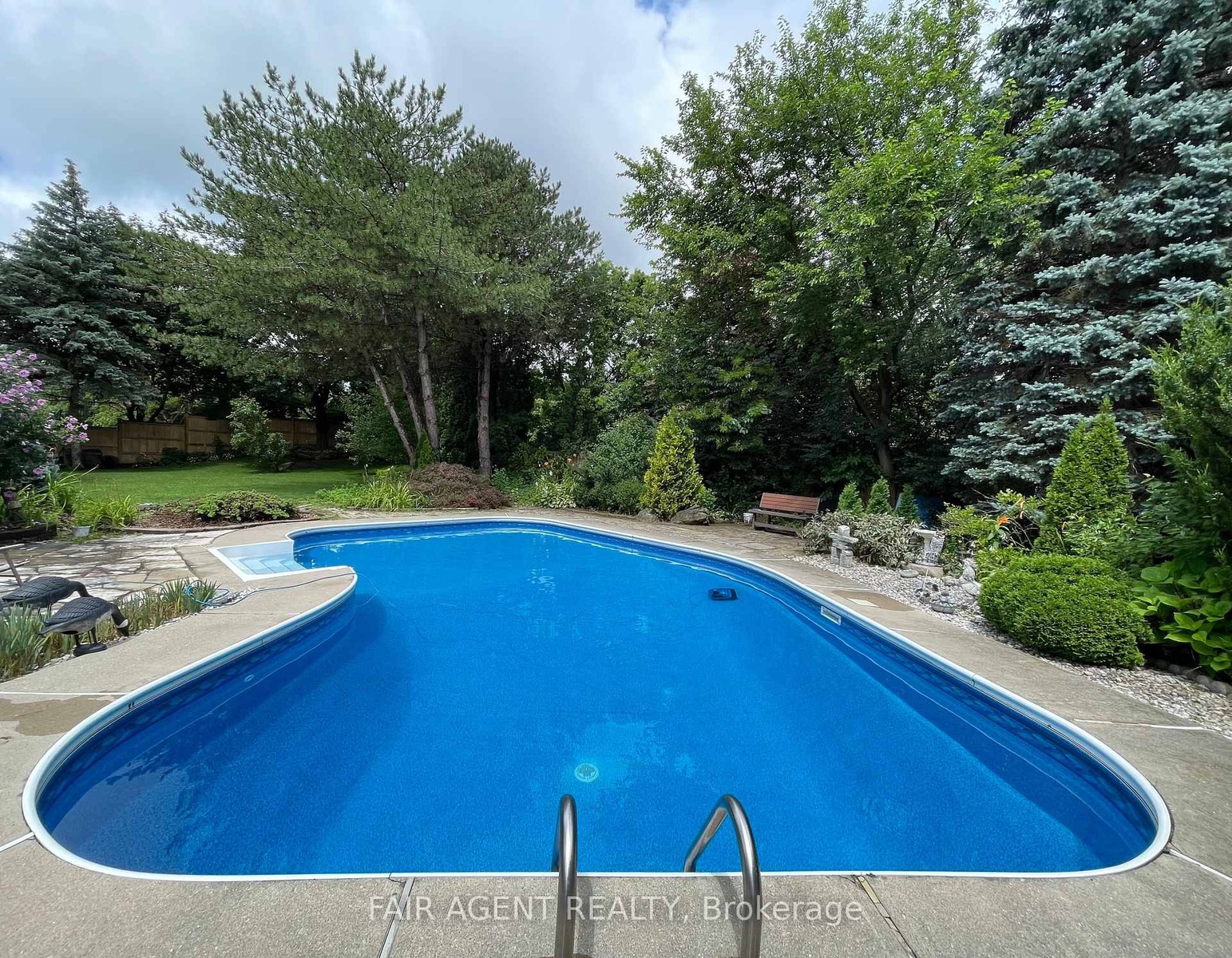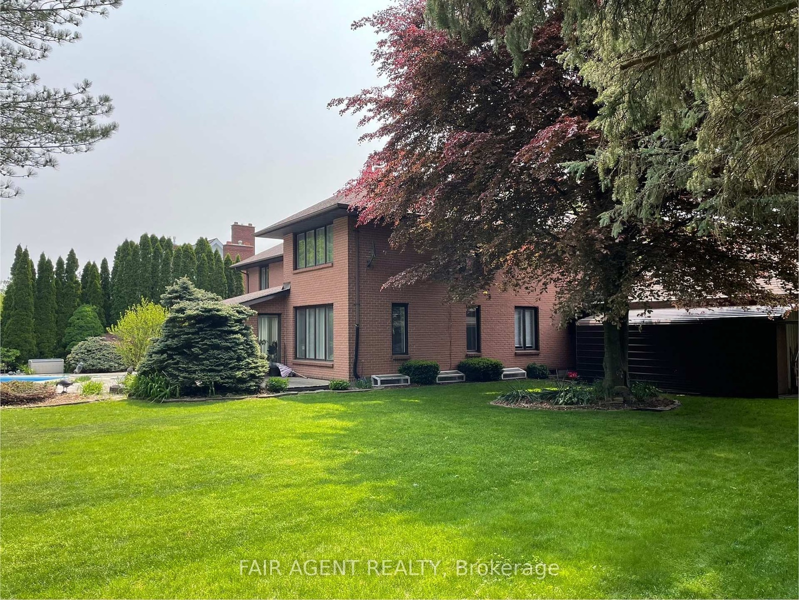 Tucked away on a quiet cul-de-sac in one of London's most established and prestigious neighbourhoods, 18 Tobin Court offers a rare combination of space, privacy, and timeless design. This all-brick, two-storey home sits on an expansive 118 x 154-foot lot framed by mature trees, creating a serene backdrop for everyday living. With over 4,000 sq. ft. above grade and an additional 1,700 sq. ft. of finished lower-level space, the layout is ideal for both family life and entertaining, ready and waiting for your personal taste updates. Inside, you'll find generous open concept rooms, including a sunlit living room, a formal dining area, a main-floor office, and a welcoming family room with a fireplace. The large eat-in kitchen is the hub of the home, offering direct access to the backyard and pool area, perfect for summer gatherings. Upstairs, four spacious bedrooms include a luxurious primary suite with a 6-piece ensuite and plenty of room to unwind. The lower level adds a rec room and additional bathroom, with space for future customization. With a triple-car garage, a total of nine parking spaces, and a beautifully maintained inground pool, this home delivers comfort and practicality in equal measure. Located in the heart of Westmount Hills, just minutes from Springbank Park, excellent schools, and convenient amenities, 18 Tobin Court is a rare offering in a location known for its quiet elegance and natural beauty.