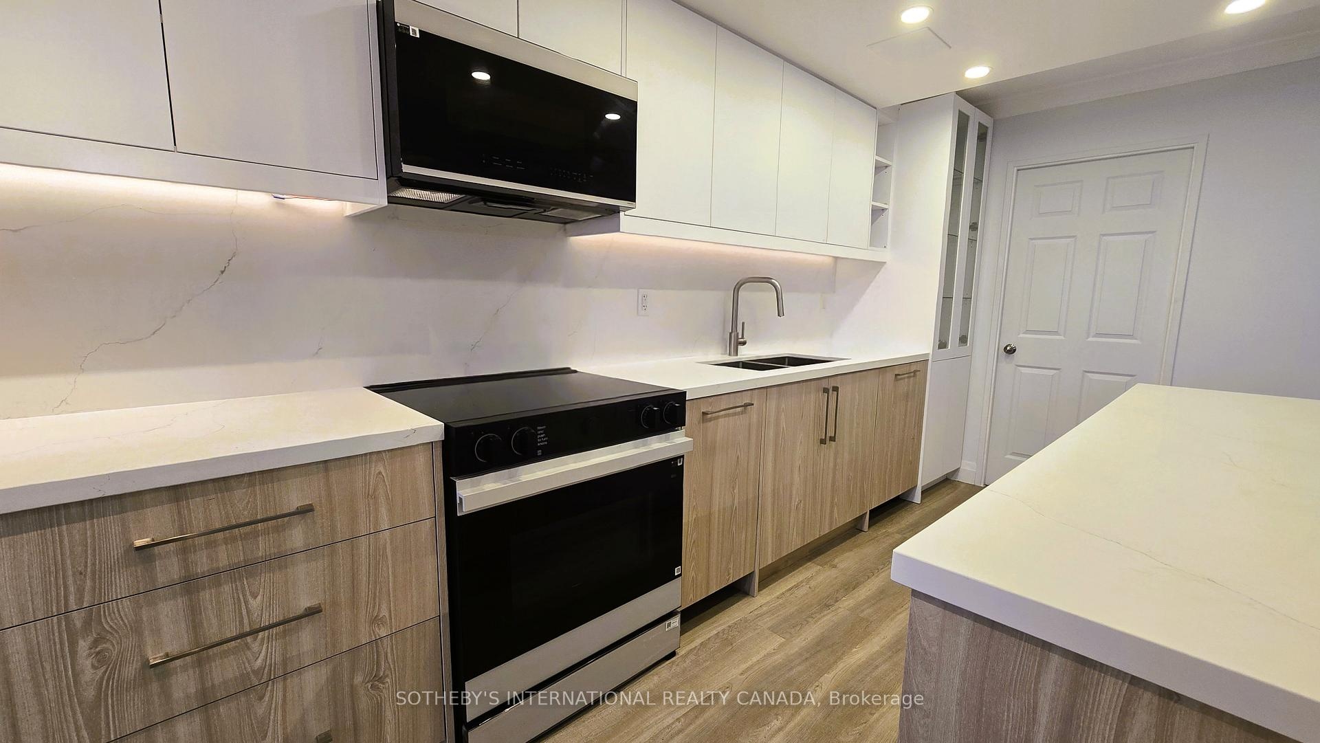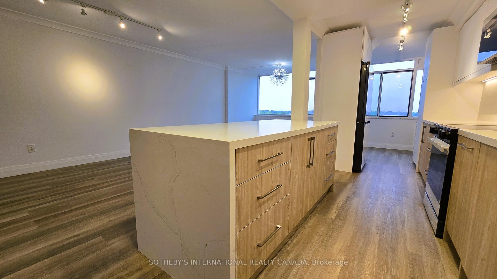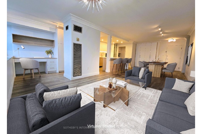 DescriptionProfessionally and Newly Renovated 2 Bedroom and Den, 2 Bath Condo with Premium Finishes. Welcome to suite 706, this beautifully renovated condo offers 2 large bedrooms and 2 bathrooms, featuring a thoughtfully designed open-concept layout ideal for both everyday living and entertaining. The custom-built kitchen boasts high-end stainless steel appliances, two built-in panelled Bosch dishwashers, a double sink, quartz countertops, and a striking waterfall island with breakfast bar seating. Modern upgrades are found throughout, including smooth ceilings, crown moulding, recessed lighting, and a new electrical panel. Expansive wall-to-wall windows bathe the space in natural light and offer serene treetop views facing east. A dedicated office nook just off the kitchen creates a perfect work-from-home or study space. Both bedrooms easily fit a king-size bed the primary bedroom features a spacious walk-in closet and a renovated 3-piece ensuite. Perfect to suit downsizers or professionals, this unit combines luxurious comfort with everyday practicality. Additional highlights include a separate laundry room with built-in storage, one parking space. Building amenities include a 24-hour concierge, gym, sauna, and ample visitor parking. Building enhancements include new windows (2024), a refreshed exterior, and updated lobby and corridors (currently occurring) Unbeatable location with a Walk Score of 92. Steps away from TTC, Lawrence Plaza, shopping, Metro and groceries, Yorkdale Mall, and easy access to major highways.Amenities- Carpet Free