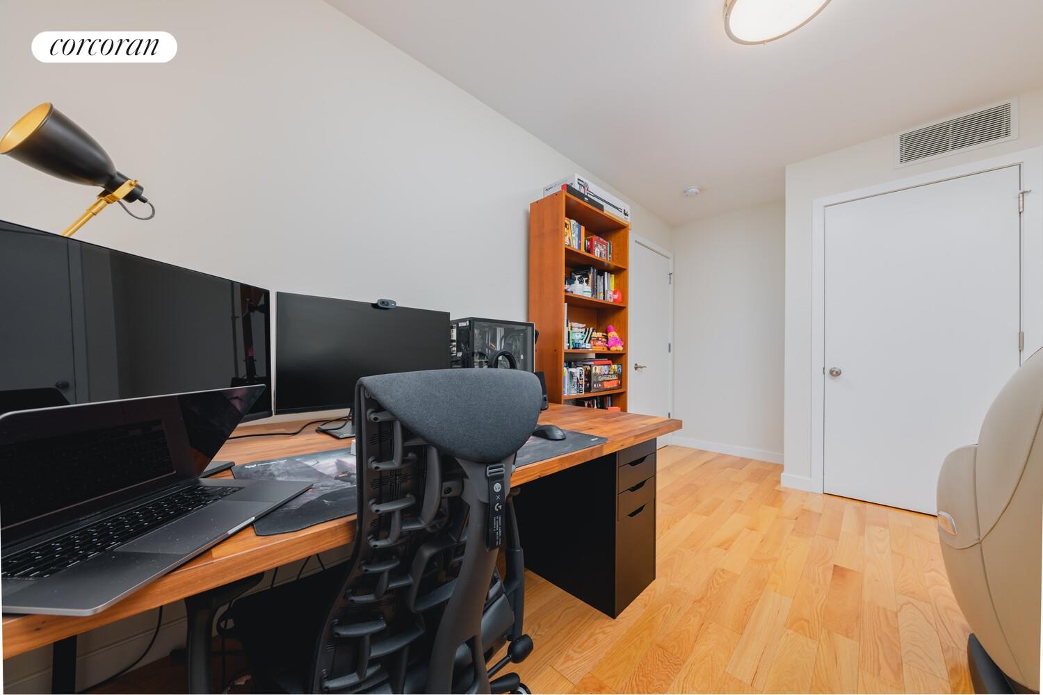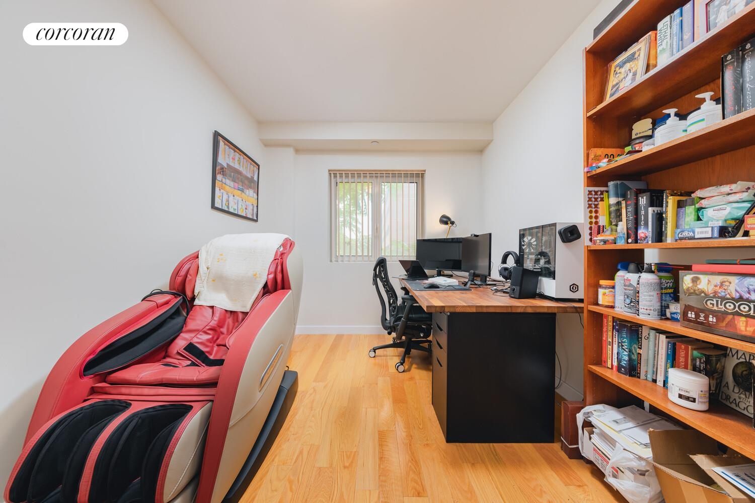 Welcome to Unit 205N at The Union Turnpike Mansion - a sleek, sun-filled 2-bedroom, 2-bathroom condo with a smart layout and flexible home office space. Built in 2017, this well-maintained residence offers nearly 850 sq ft of modern living, featuring hardwood floors, stainless steel appliances, central A/C, and a spacious open-concept living/dining area.