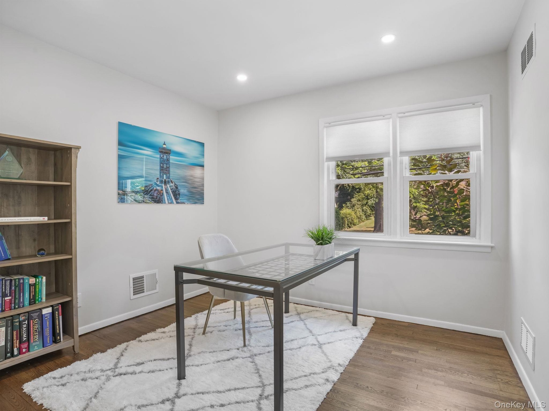 - Bedroom with hardwood / wood-style floors and recessed lighting