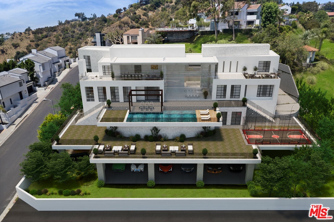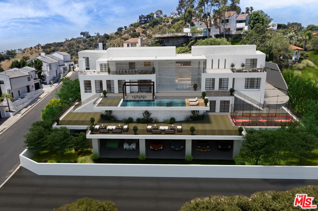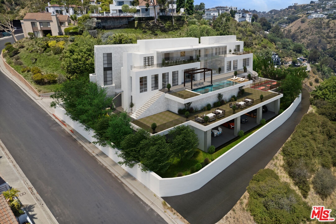 A Rare Opportunity to Develop a Landmark Estate with Iconic Views in the Hollywood Hills Set atop one of the most desirable private promontories in all of Los Angeles, this extraordinary 1.2-acre offering-comprised of three oversized contiguous lots-is a once-in-a-lifetime chance to craft an unparalleled estate in the Hollywood Hills. With over 233 feet of street frontage and unobstructed, jetliner views spanning from downtown Los Angeles to Catalina Island and the Pacific Ocean, this unique property represents limitless potential for transformative development or luxurious renovation. Currently, the property is home to an expansive, single-story mid-century residence that sits perched above the city below. The existing structure offers over 4,300 square feet of living space, featuring spacious interiors, walls of glass that capture breathtaking views from nearly every room, a large motor court, and a resort-style pool and spa. While the home is livable as-is and offers strong architectural bones, it also serves as a remarkable starting point for those looking to renovate or expand into a show-stopping compound. This is a developer's dream, with the potential for new construction exceeding 15,000 square feet. The lot's vast footprint, gentle slope, and flat pad allow for a range of configurations-from a sprawling modern compound to a multi-structure retreat with a main residence, guesthouses, entertainment pavilion, and more. The wide, well-paved street is lined with sidewalks and features rare underground power lines-ensuring your panoramic views remain unobstructed forever. Only 25 ultra-exclusive homes in the 90069 zip code sit on lots of this magnitude, and none offer this rare combination of privacy, scale, street width, infrastructure, and skyline exposure. Nearly all neighboring homes have undergone major renovations or full-scale rebuilds, securing long-term value and positioning this property as the crown jewel of the block. Located just minutes above the legendary Sunset Strip, yet offering complete seclusion and tranquility, this is more than just land or a home-it's a blank canvas for your architectural legacy. Whether you choose to preserve the mid-century charm with a modern makeover or start fresh with bold new construction, the possibilities are as endless as the views.