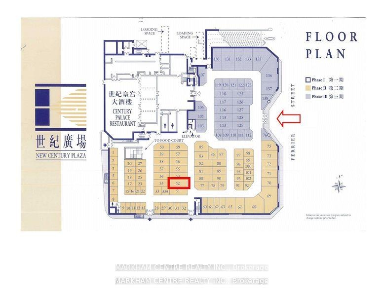 Popular New Century Plaza Indoor Mall Conveniently Located at Warden Steeles Commercial Retail Unit well located near entrance facing parking lot Gross floor area 460 sf Net area 309 sf ...