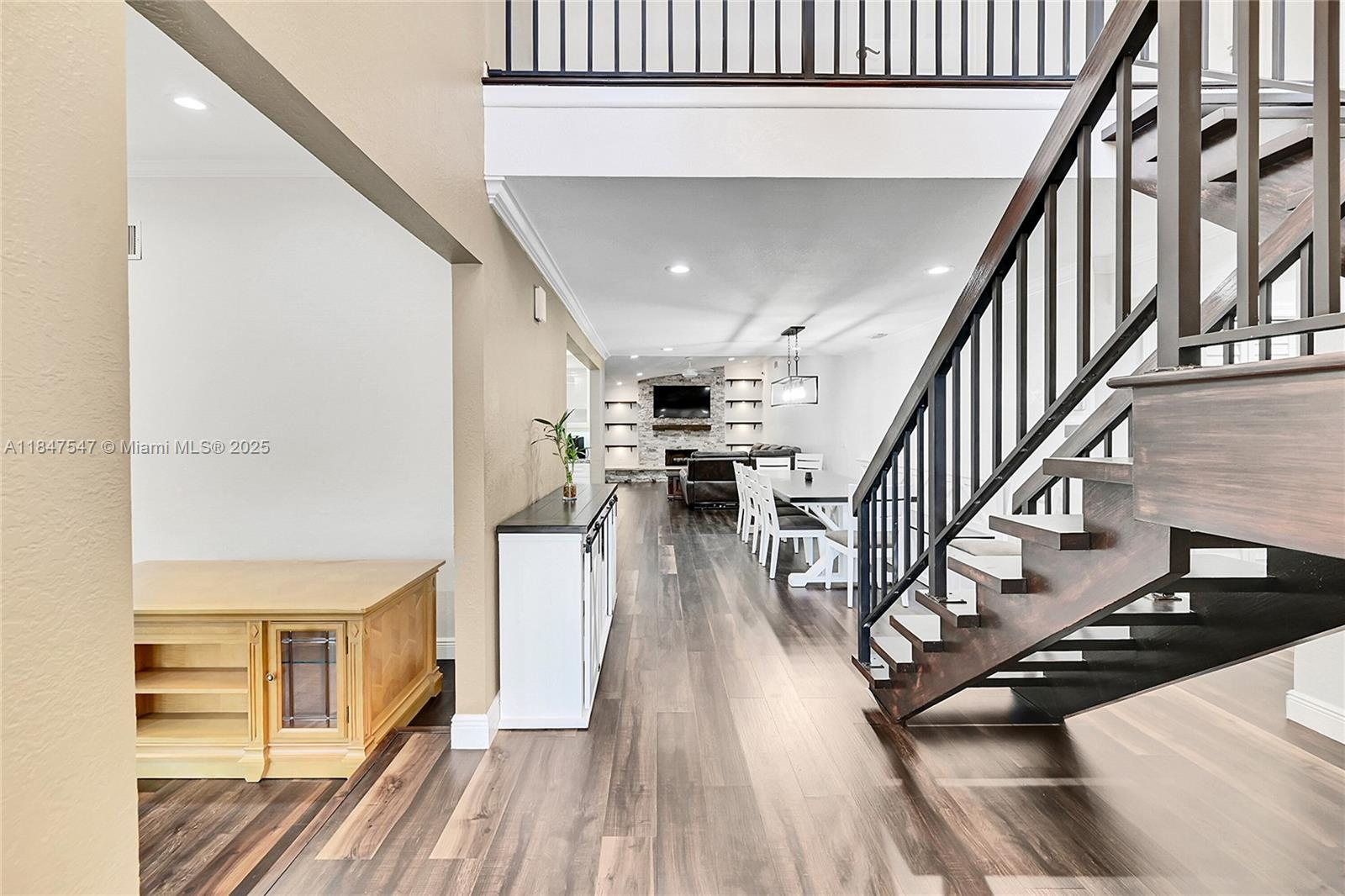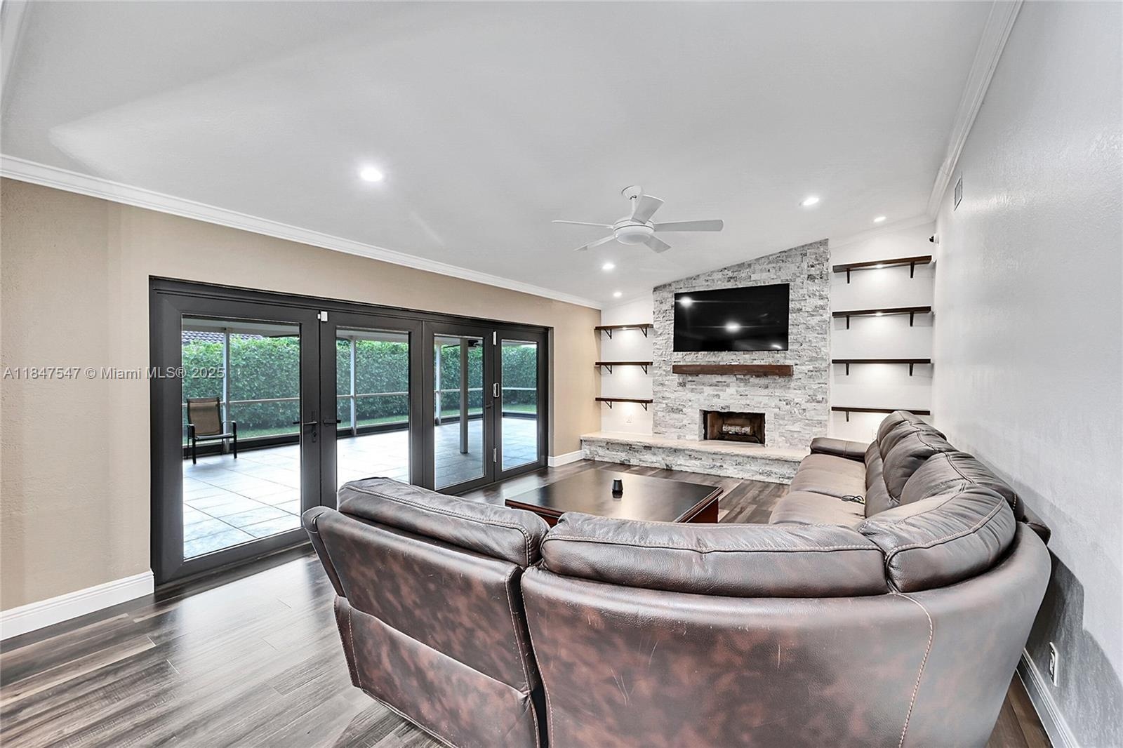 Welcome home! Over 3500 sq. ft. of living area. 5 bedroom & 4 bathroom two story home. Located in the heart of Coral Springs. In-law and guest apartment. Real fireplace. This home is substantially remodeled. Top of the line hurricane impact windows and doors. Newer water heater and new cabinetry in the garage with an incredible amount of storage. Many upgrades throughout such as a water filter system, hard wired alarm system, bathrooms, floors. Primary suite is on the second floor and has it's own balcony. Gorgeous newly paved driveway that parks up to 6 vehicles. This home is move in ready. NO HOA. Rare find & a must see!