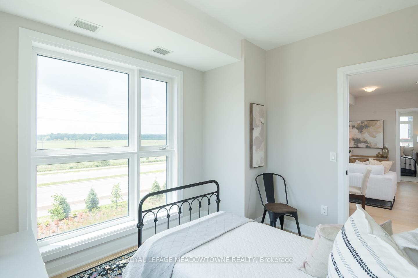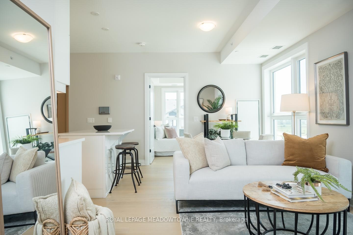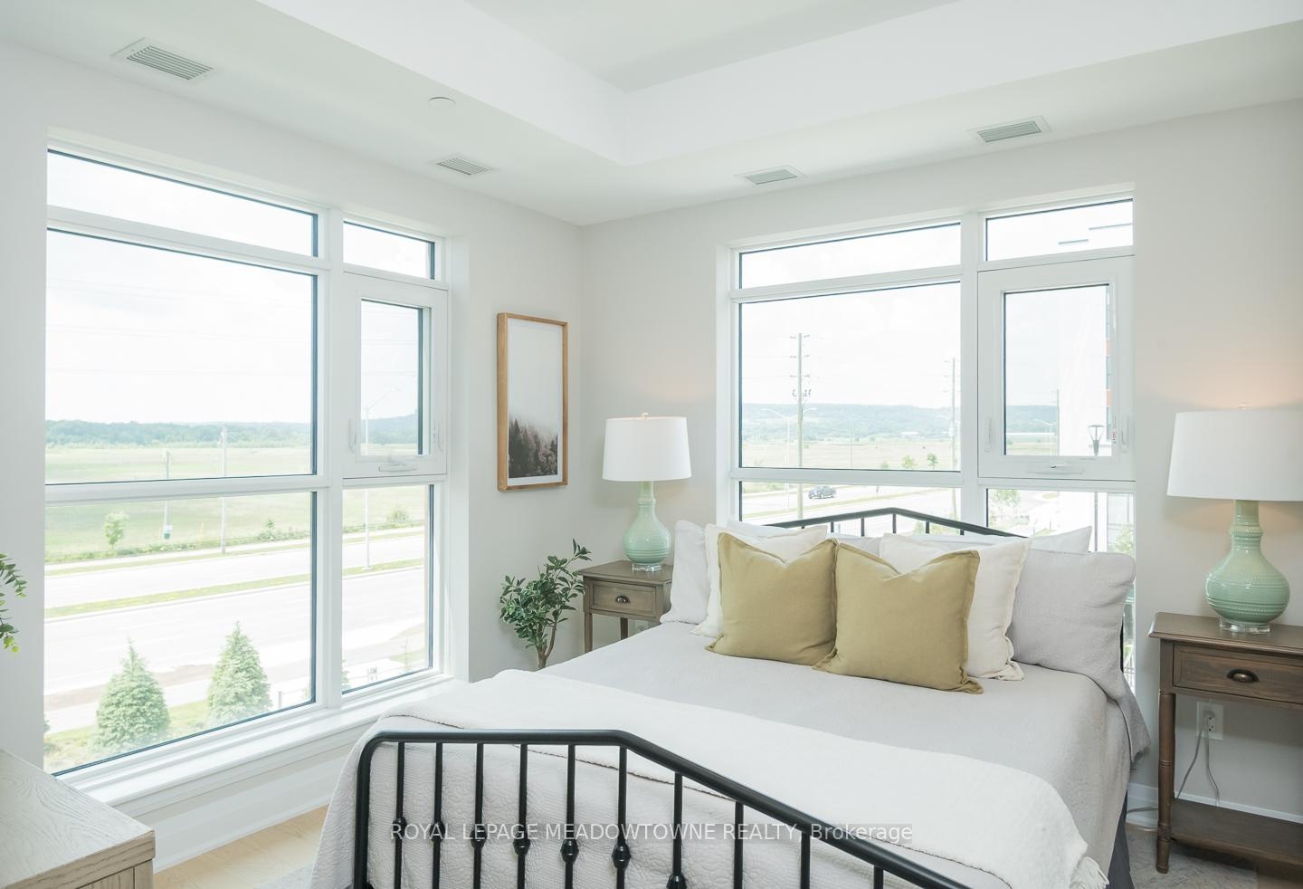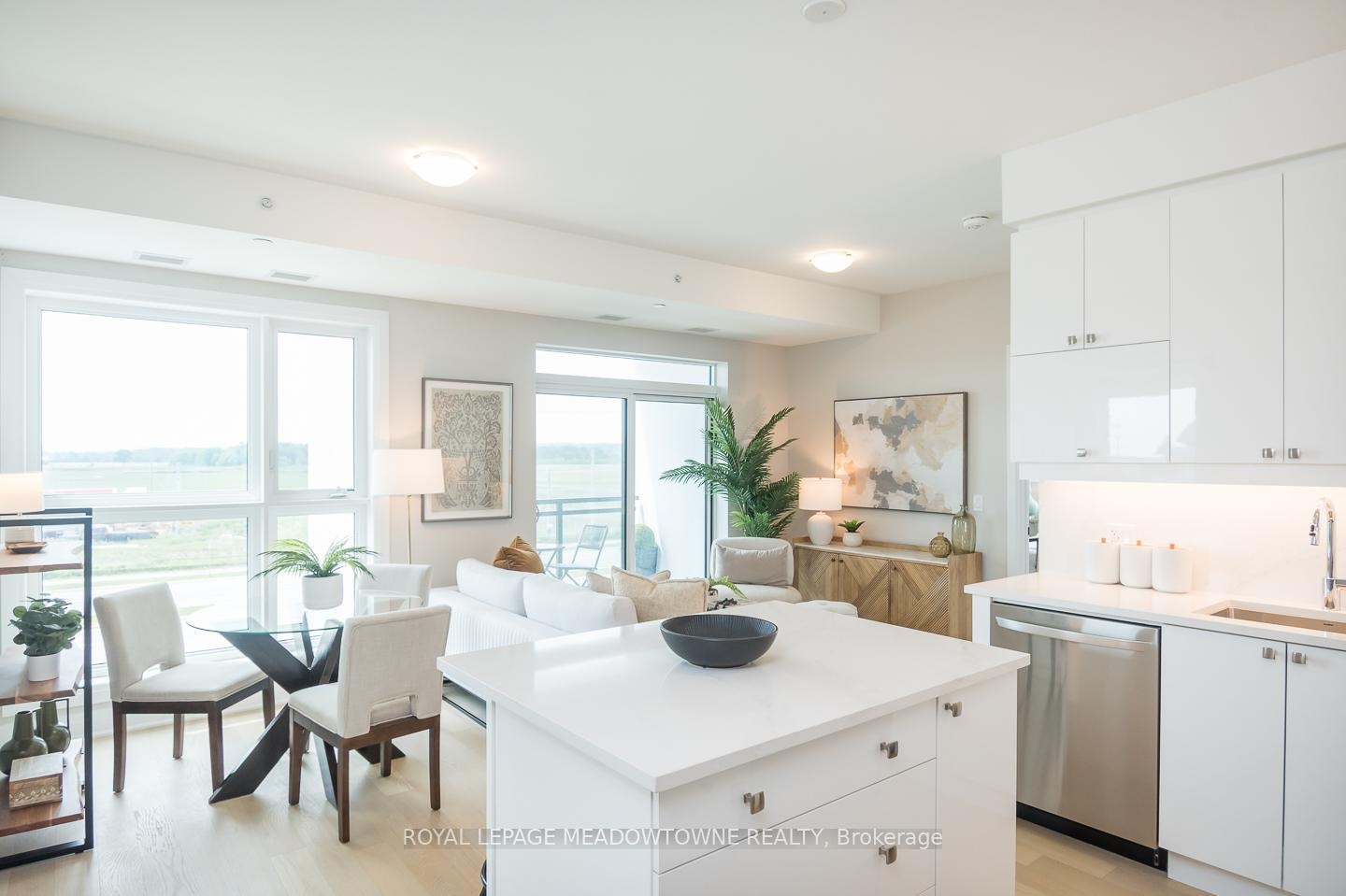 Welcome to this premium, gorgeous, brand new, double corner condo unit offering modern luxury and unbeatable convenience in one of Miltons most sought-after up coming locations. Bonus: 2 parking spots! (1 EV) Enjoy breathtaking panoramic views of the escarpment through floor-to-ceiling windows and soaring high ceilings that fill the space with natural light. This 2-bedroom + den suite features an open-concept living and dining area and a neutral colour palette, and direct access to a private balcony. The sleek high-gloss white kitchen is a chefs dream, boasting quartz countertops, matching backsplash, stainless steel appliances, under-cabinet lighting, and a large island with seating. Both bathrooms are elegantly designed, with the primary offering a 3-piece ensuite and walk-in closet. With two parking spots, in-suite laundry, laminate flooring throughout, and premium building amenitiesincluding concierge service, security cameras, rooftop terrace, party room, and co-working spacethis home has it all including 60K worth of structural and design centre upgrades, Over $50,000 in builder upgrades (flooring, countertops, cabinetry, lighting, appliances, finishes) and $10,000 premium for unit placement (view/floor/unit location). Ideally located near Kelso, Rattlesnake Point, Spring Ridge Farm, the Velodrome, and the future Milton Education Village, with excellent commuter access via the upcoming Tremaine 401 ramp.