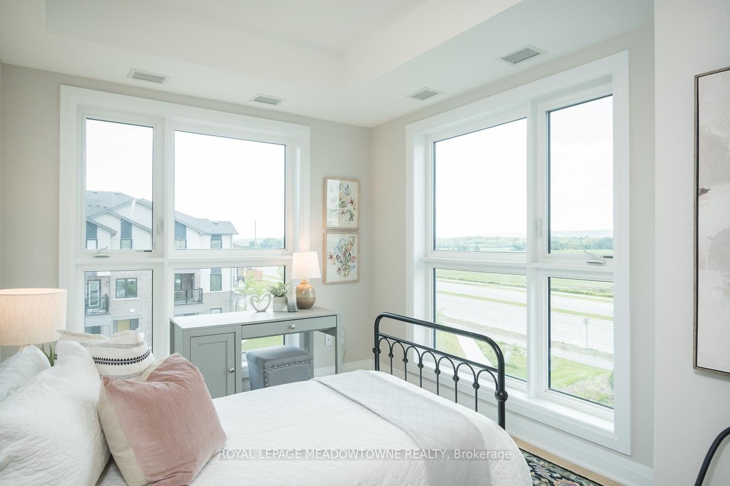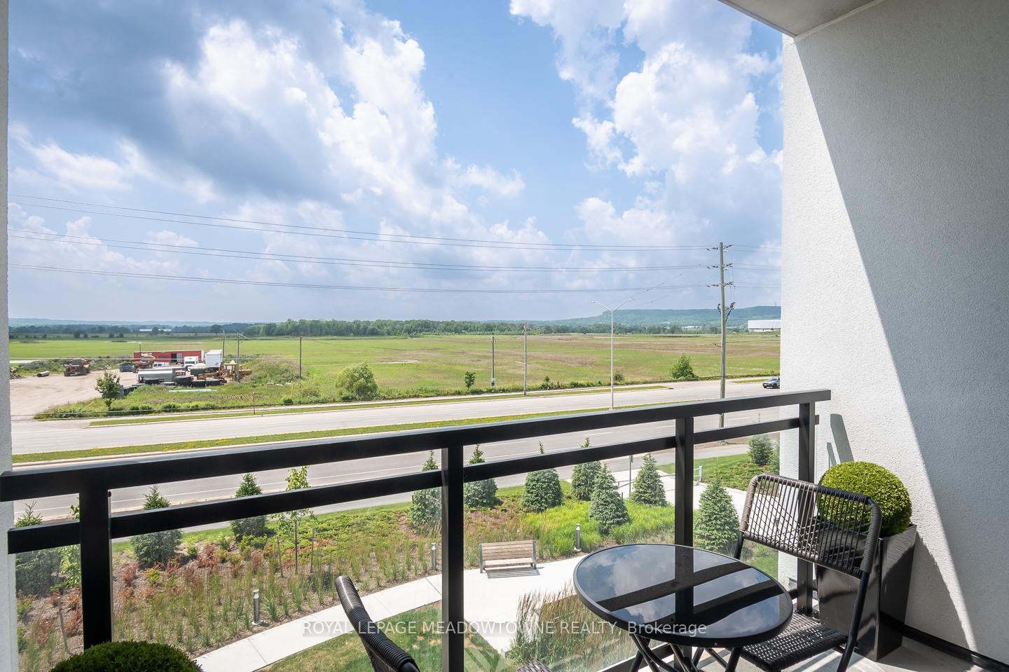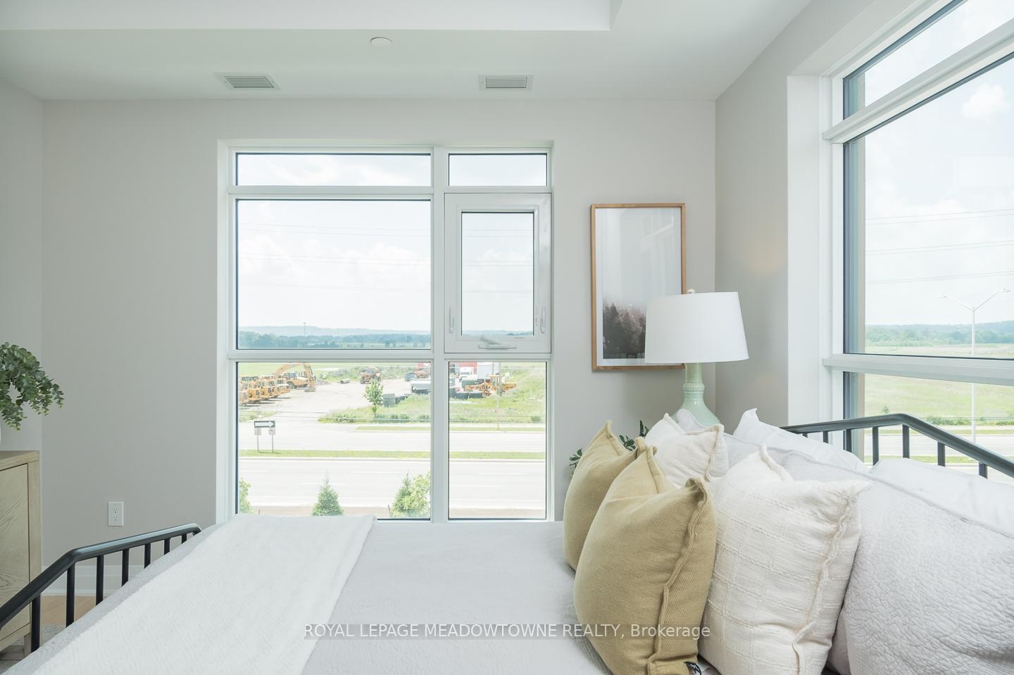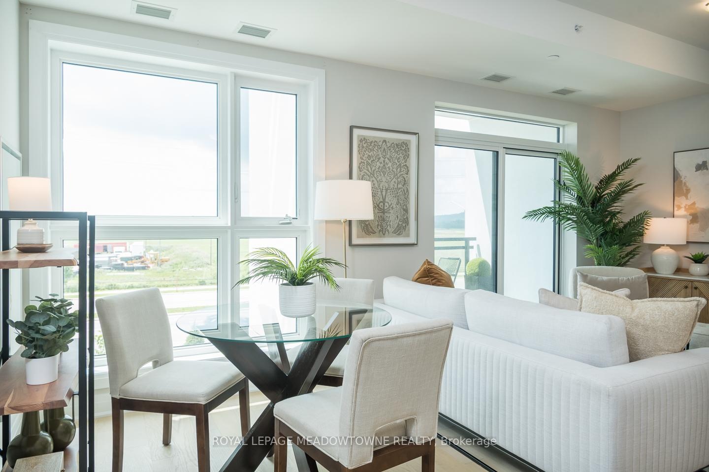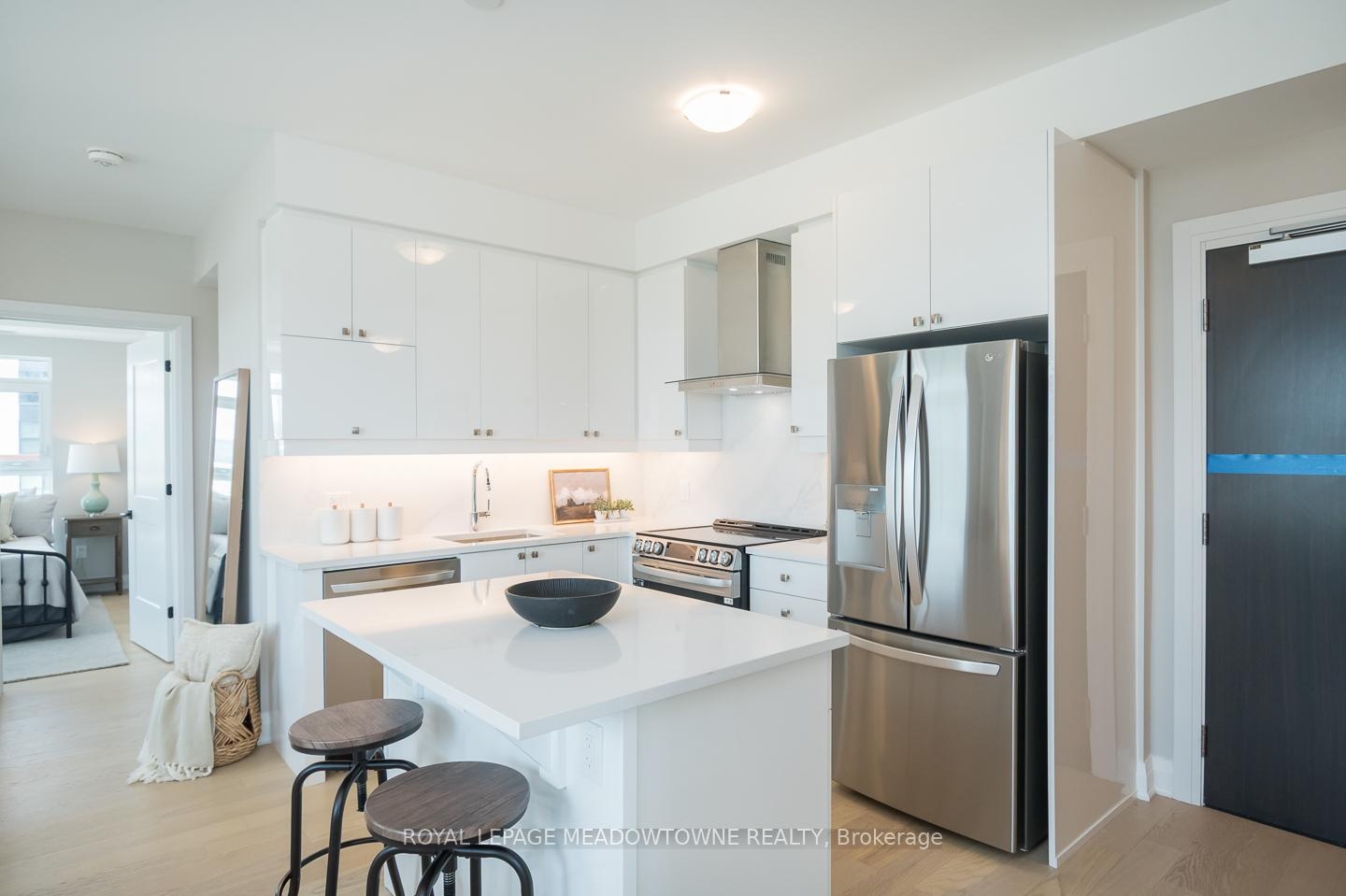 Welcome to this premium, gorgeous, brand new, double corner condo unit offering modern luxury and unbeatable convenience in one of Miltons most sought-after up coming locations. Bonus: 2 parking spots! (1 EV) Enjoy breathtaking panoramic views of the escarpment through floor-to-ceiling windows and soaring high ceilings that fill the space with natural light. This 2-bedroom + den suite features an open-concept living and dining area and a neutral colour palette, and direct access to a private balcony. The sleek high-gloss white kitchen is a chefs dream, boasting quartz countertops, matching backsplash, stainless steel appliances, under-cabinet lighting, and a large island with seating. Both bathrooms are elegantly designed, with the primary offering a 3-piece ensuite and walk-in closet. With two parking spots, in-suite laundry, laminate flooring throughout, and premium building amenitiesincluding concierge service, security cameras, rooftop terrace, party room, and co-working spacethis home has it all including 60K worth of structural and design centre upgrades, Over $50,000 in builder upgrades (flooring, countertops, cabinetry, lighting, appliances, finishes) and $10,000 premium for unit placement (view/floor/unit location). Ideally located near Kelso, Rattlesnake Point, Spring Ridge Farm, the Velodrome, and the future Milton Education Village, with excellent commuter access via the upcoming Tremaine 401 ramp.