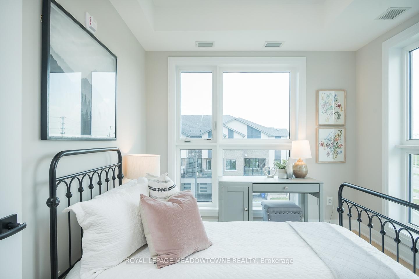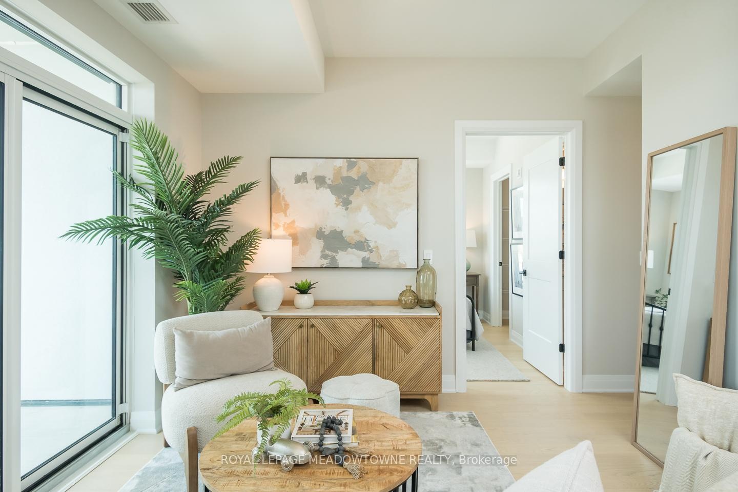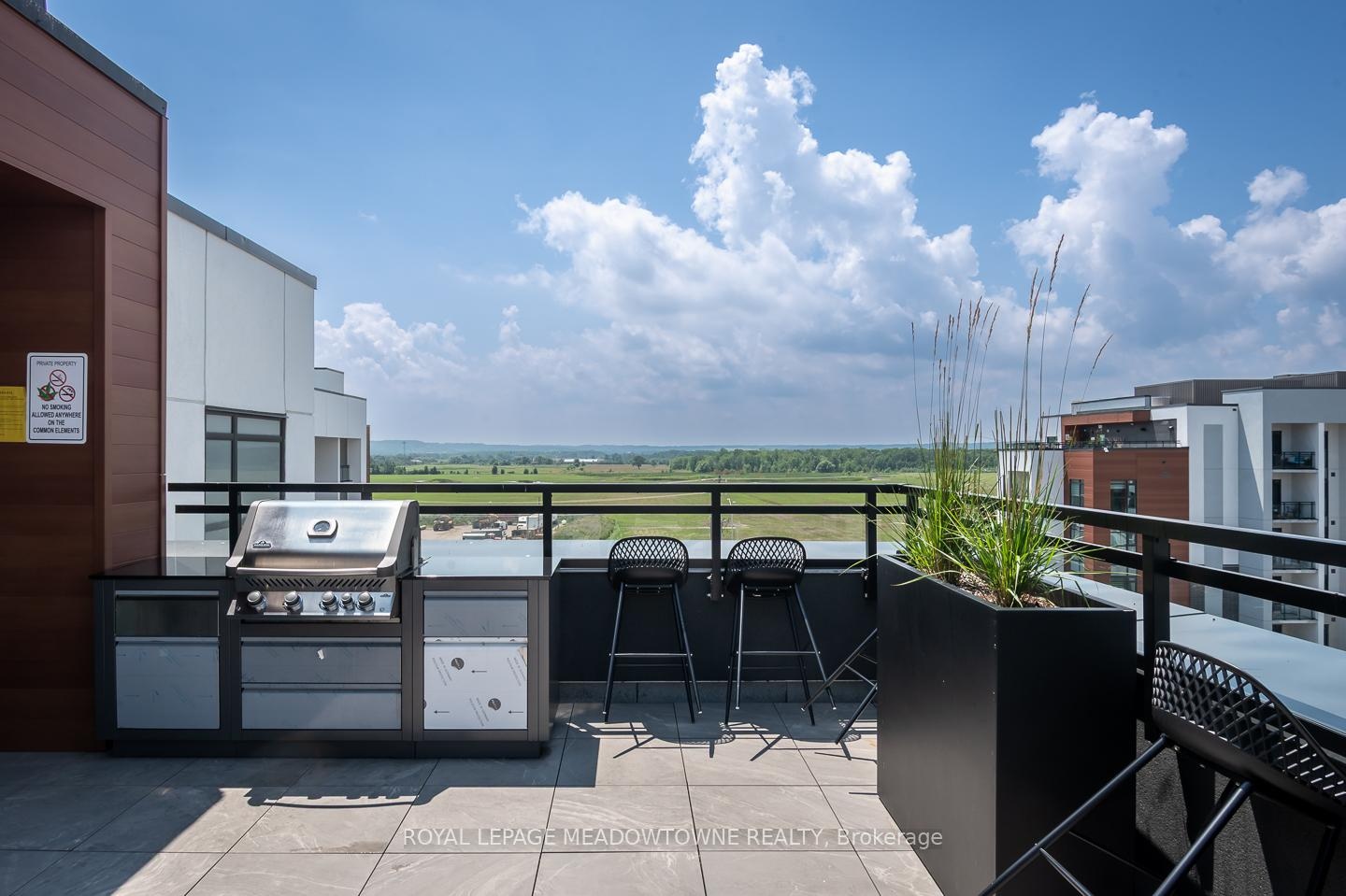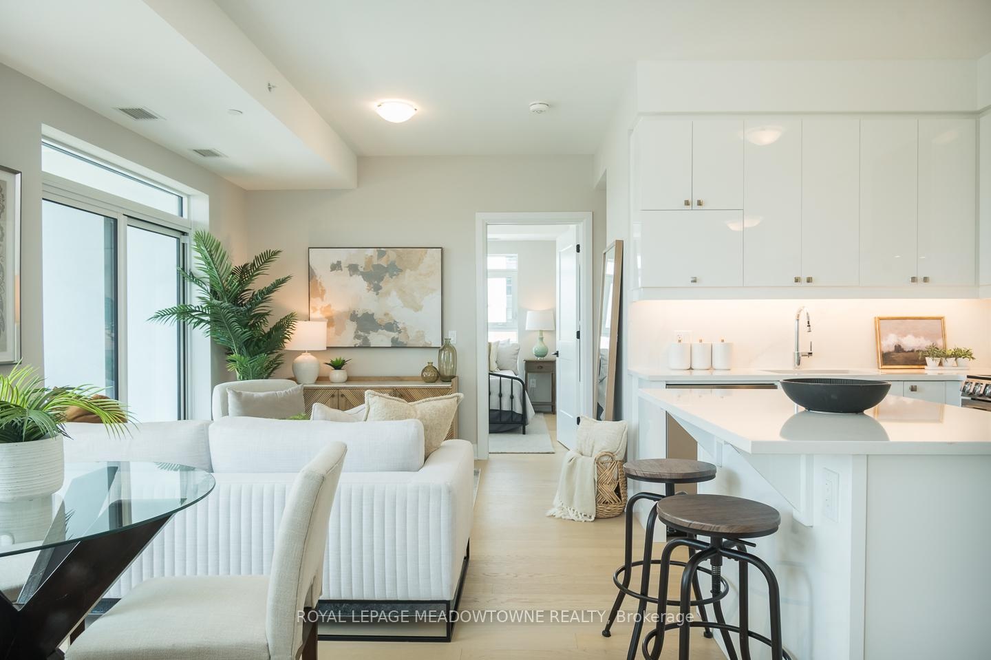 Welcome to this premium, gorgeous, brand new, double corner condo unit offering modern luxury and unbeatable convenience in one of Miltons most sought-after up coming locations. Bonus: 2 parking spots! (1 EV) Enjoy breathtaking panoramic views of the escarpment through floor-to-ceiling windows and soaring high ceilings that fill the space with natural light. This 2-bedroom + den suite features an open-concept living and dining area and a neutral colour palette, and direct access to a private balcony. The sleek high-gloss white kitchen is a chefs dream, boasting quartz countertops, matching backsplash, stainless steel appliances, under-cabinet lighting, and a large island with seating. Both bathrooms are elegantly designed, with the primary offering a 3-piece ensuite and walk-in closet. With two parking spots, in-suite laundry, laminate flooring throughout, and premium building amenitiesincluding concierge service, security cameras, rooftop terrace, party room, and co-working spacethis home has it all including 60K worth of structural and design centre upgrades, Over $50,000 in builder upgrades (flooring, countertops, cabinetry, lighting, appliances, finishes) and $10,000 premium for unit placement (view/floor/unit location). Ideally located near Kelso, Rattlesnake Point, Spring Ridge Farm, the Velodrome, and the future Milton Education Village, with excellent commuter access via the upcoming Tremaine 401 ramp.