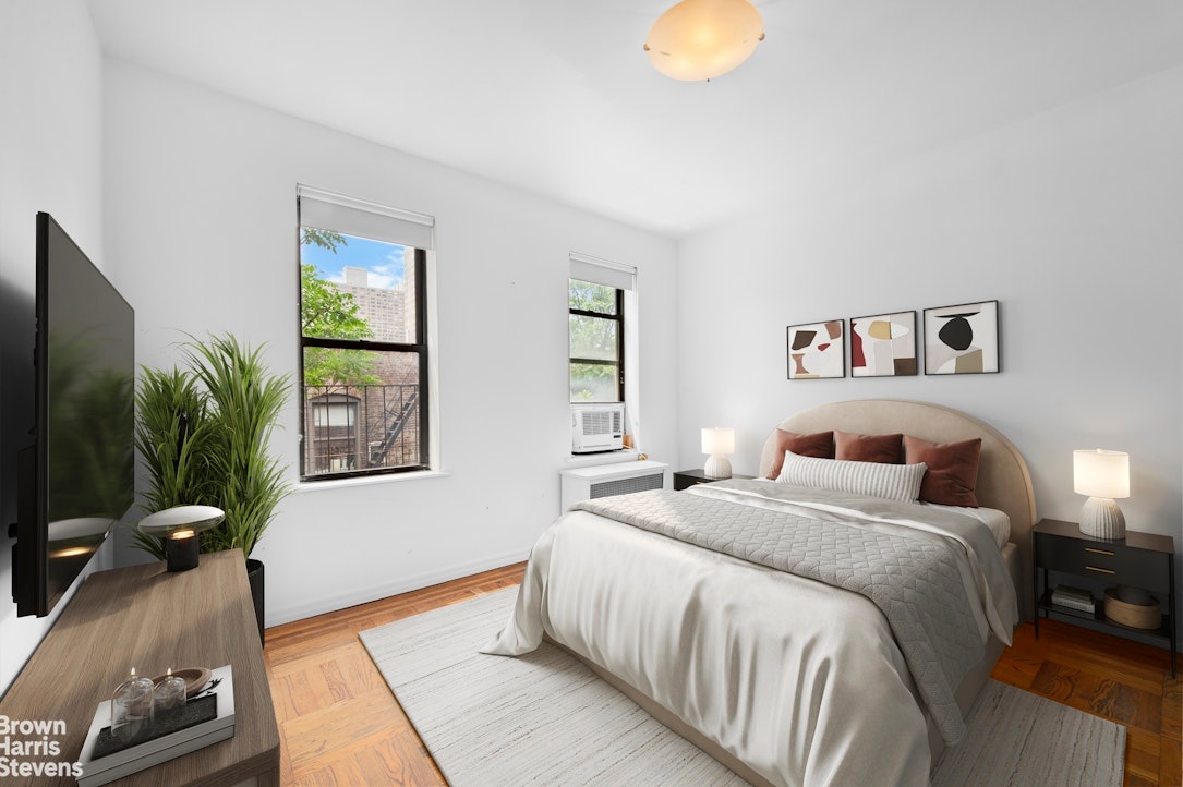 Located on a beautiful and charming block on the Upper East Side, this renovated 2-BR/1-BA pre-war co-op at The Benenson is available for purchase! Situated on the 5th floor of an elevator building, this peaceful, spacious, and bright unit boasts three exposures-South, North, and East. The large kitchen includes a rare and coveted window, and it's equipped with stainless steel appliances, including a brand new fridge. Both bedrooms are sizeable with amazing light and custom built closets, and they face the serene gardens. The substantial living/dining space is large and bright. The windowed bathroom boasts upgrades as well, including a new vanity. With new AC units, beautiful hardwood floors, and high ceilings, this apartment is a gem.