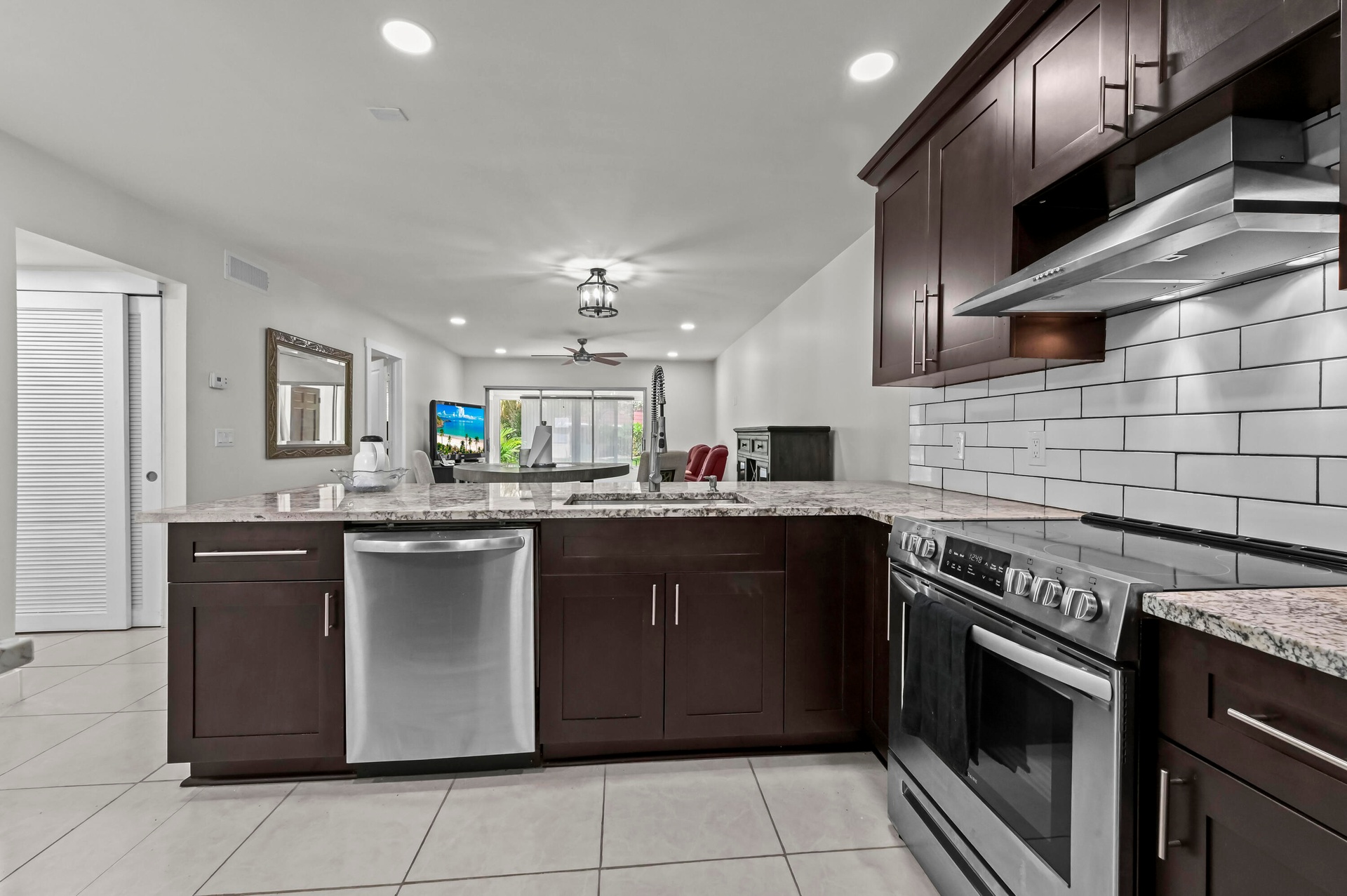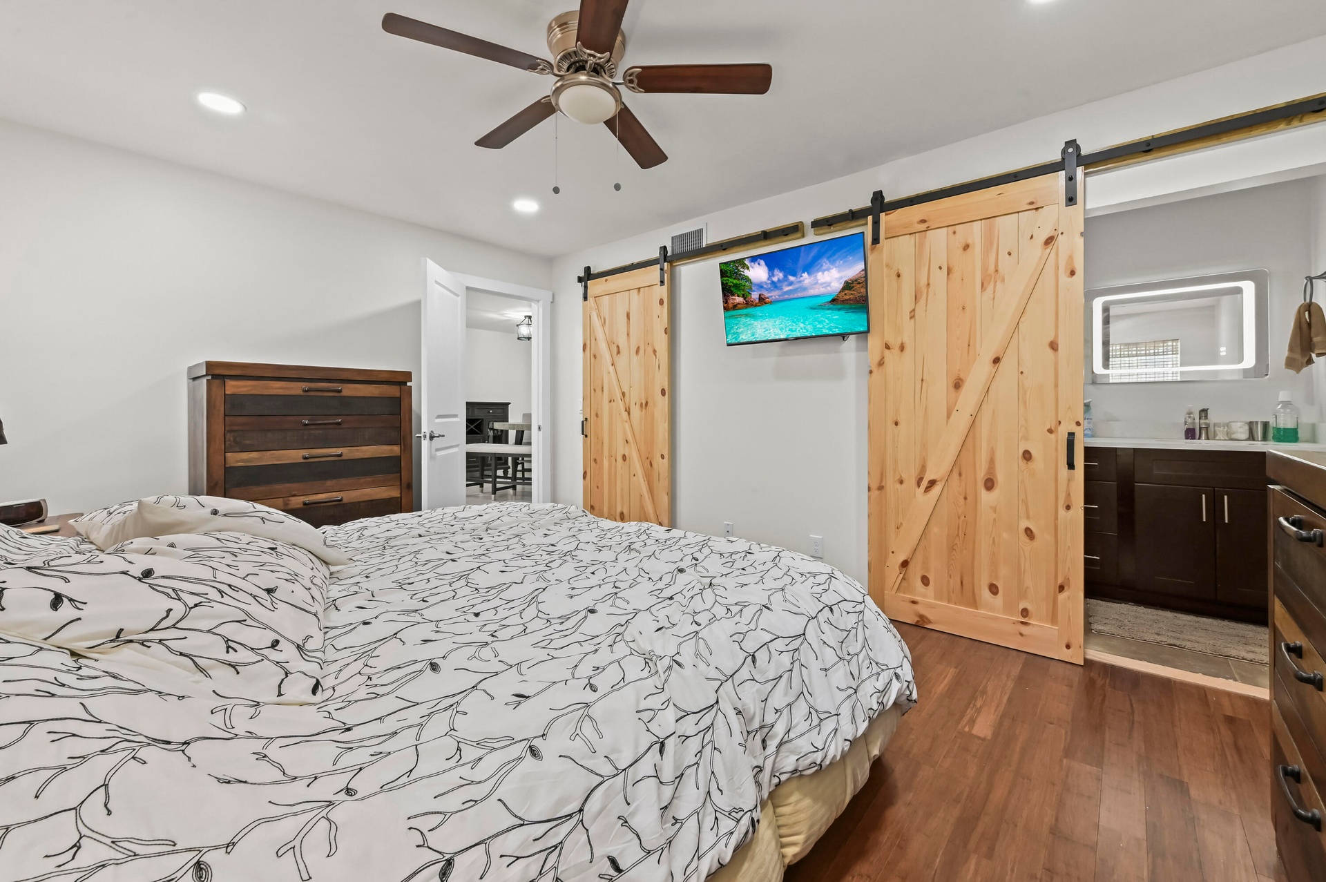 Step into this beautifully appointed villa, a stunning 2-bedroom, 2-bathroom residence that perfectly blends comfort with modern style. The open living areas are designed for seamless flow, creating a bright and inviting atmosphere. The kitchen is a true highlight, featuring sleek granite countertops, a stylish tiled backsplash, and recessed lighting that enhances both form and function. The main bedroom offers a private sanctuary, complete with a luxurious ensuite bathroom and a walk-in closet with an elegant barn door, adding a touch of rustic charm to this contemporary space.