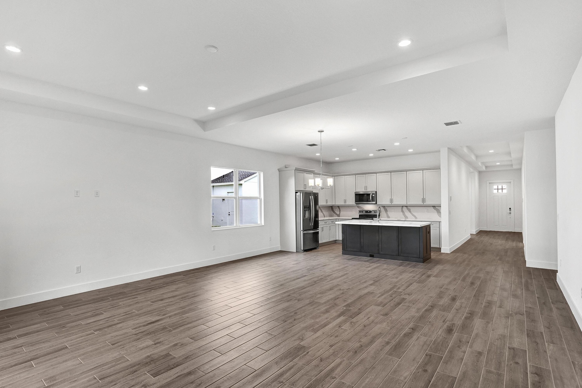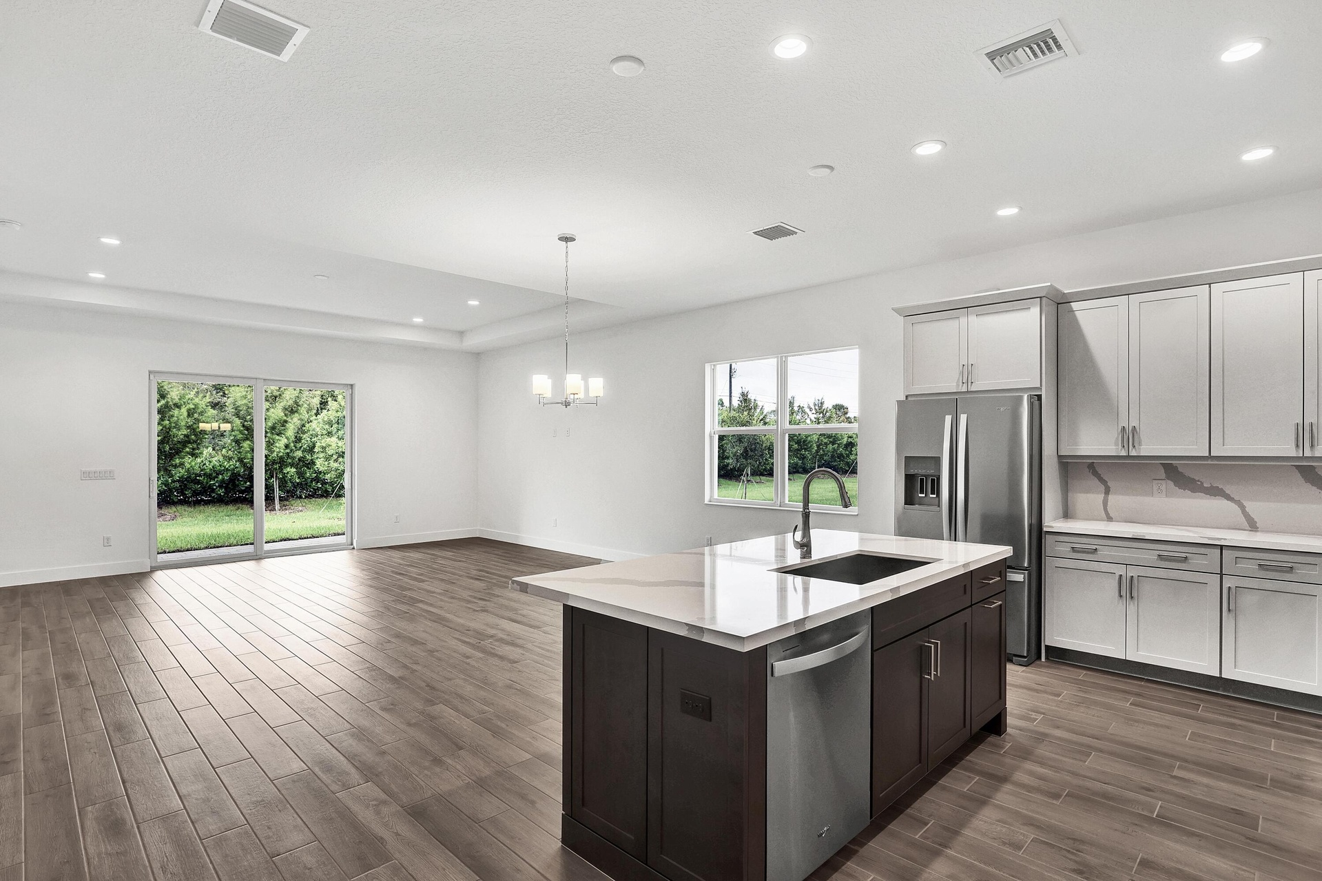 This stunning open-concept home offers the perfect balance of style, comfort, and functionality, seamlessly blending indoor and outdoor living for both everyday relaxation and effortless entertaining. Designed to capture natural light, the modern layout features three spacious bedrooms and two and a half elegant baths. The oversized primary suite is a private retreat, complete with a spa-inspired bathroom and a generous walk-in closet.At the heart of the home, the chef's kitchen boasts an oversized center island with breakfast bar, wraparound counter and cabinet space, and a roomy pantry, all overlooking the inviting casual dining area.