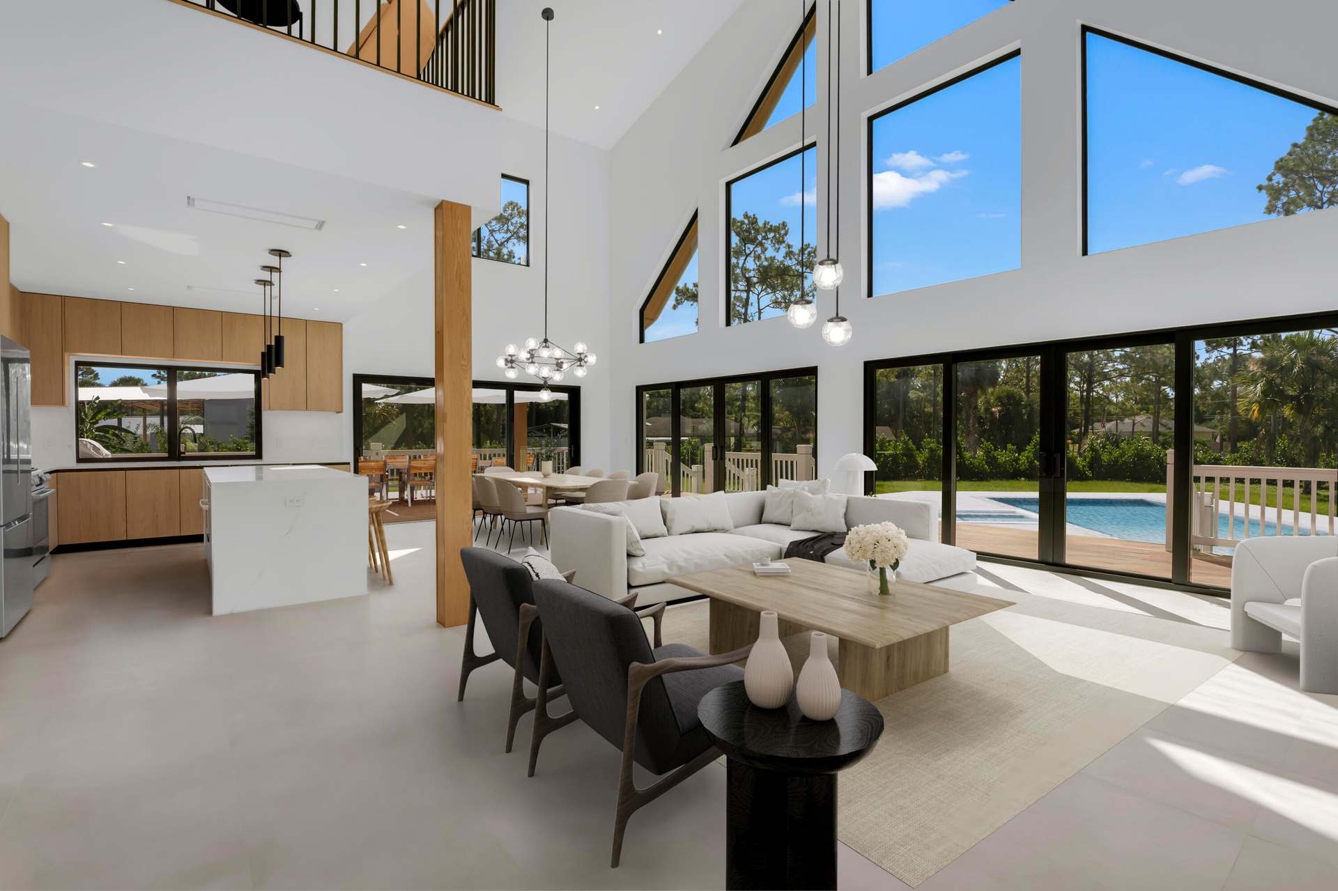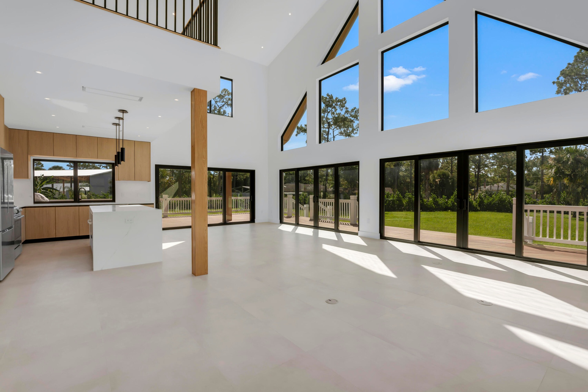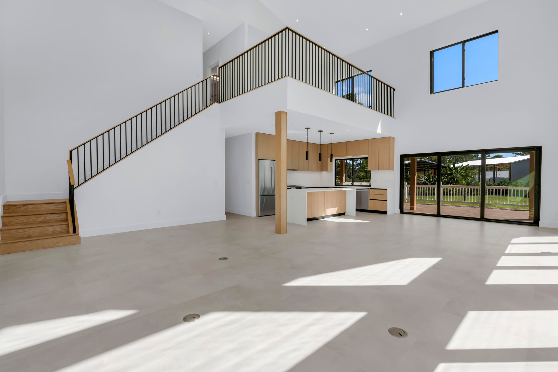 Welcome to a stunning fusion of modern luxury and farmhouse charm, nestled in the heart of Jupiter Farms. Designed by award-winning Wandrian Studios, this brand-new, two-story concrete block estate redefines Florida living with elevated design, high-end finishes, and a seamless indoor-outdoor lifestyle--all set on a fully irrigated 1.31-acre lot with no HOA.Step inside 3,600+ square feet of thoughtfully crafted space featuring five spacious bedrooms, four full bathrooms, and a versatile loft. Monolithic Bellevue porcelain tile flows throughout the home, creating a sleek, cohesive backdrop to the Italian-inspired chef's kitchen with premium Bosch appliances. The centerpiece living room is anchored by a breathtaking two-story A-frame window, flooding the interior with natural light