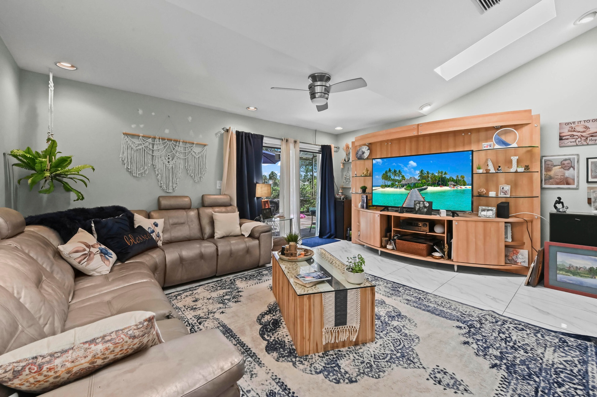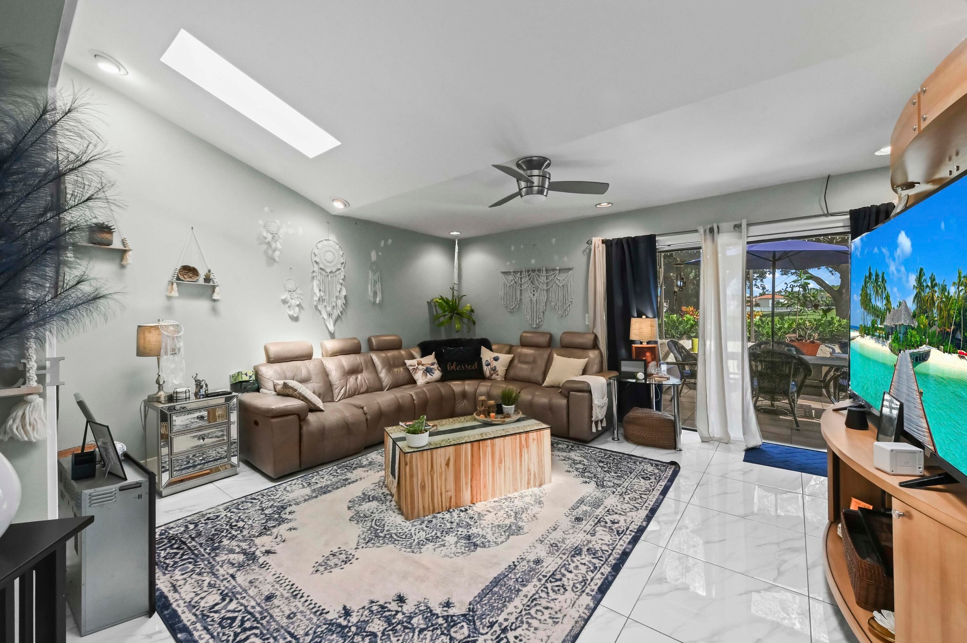 Experience Florida lifestyle in this beautifully maintained 2-bedroom, 2-bath villa, perfectly situated in the sought-after community of Villas on The Green within Deer Creek. Designed for seamless indoor-outdoor living, this home offers serene golf course and garden views that create a tranquil backdrop for your daily life. Inside, soaring vaulted ceilings and strategically placed skylights fill the space with an abundance of natural light, while elegant tile flooring flows continuously through the living, dining, and kitchen areas, creating a bright and inviting atmosphere.